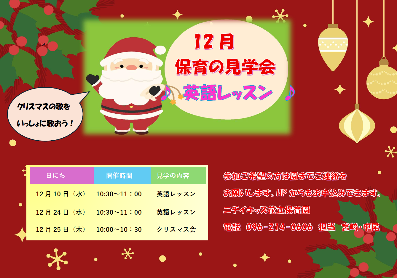 12月の子育て広場は保育の見学会(英語レッスンとクリスマス会)
