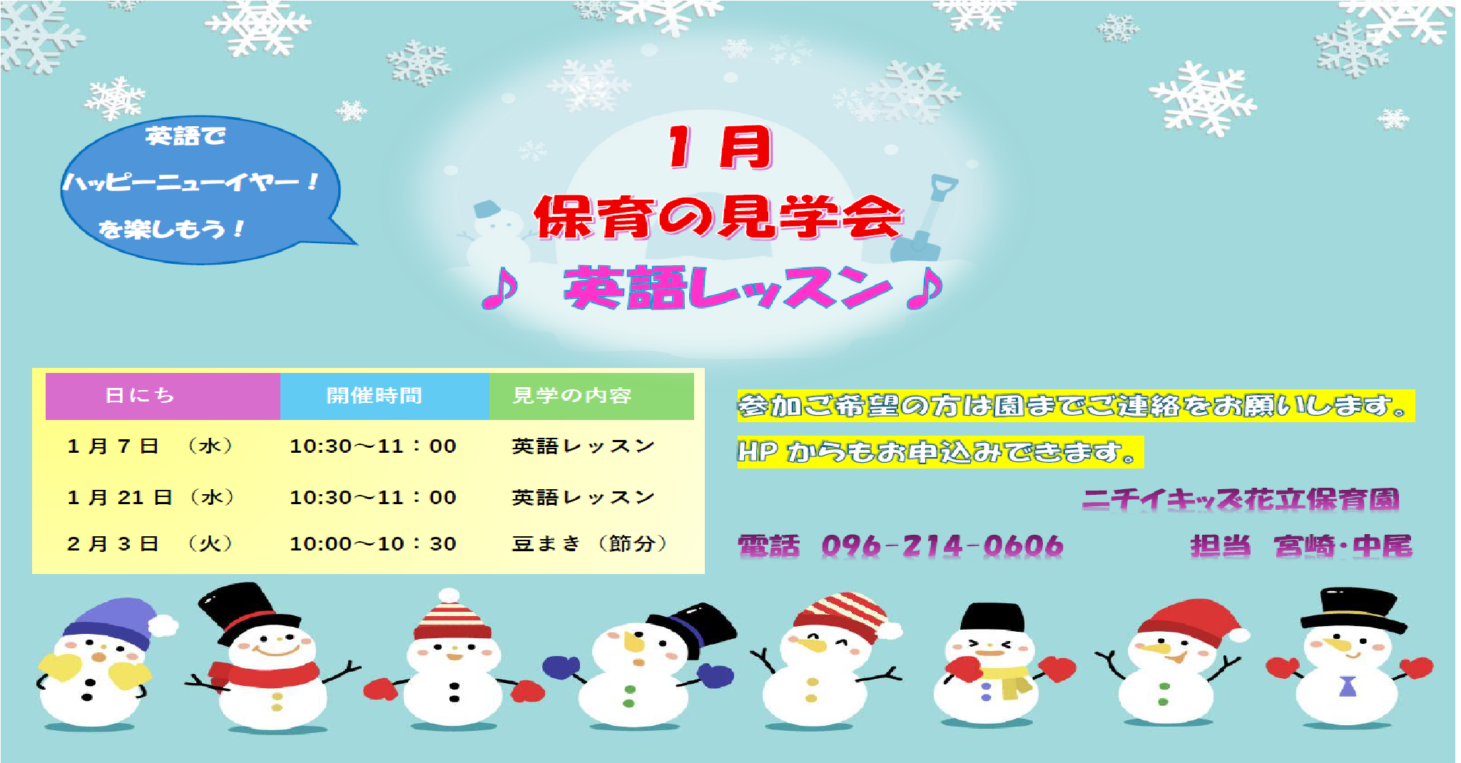 1月・2月の子育て広場は保育の見学会(英語レッスンと豆まき)