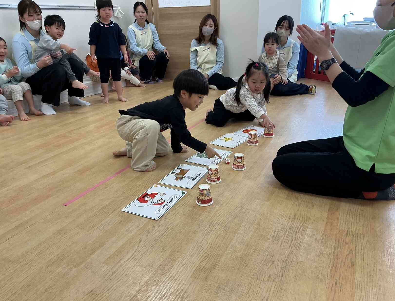 大好きなサンタさんのゲームに参加し答えたり、先生の発音を真似して楽しむ姿が見られましたよ。