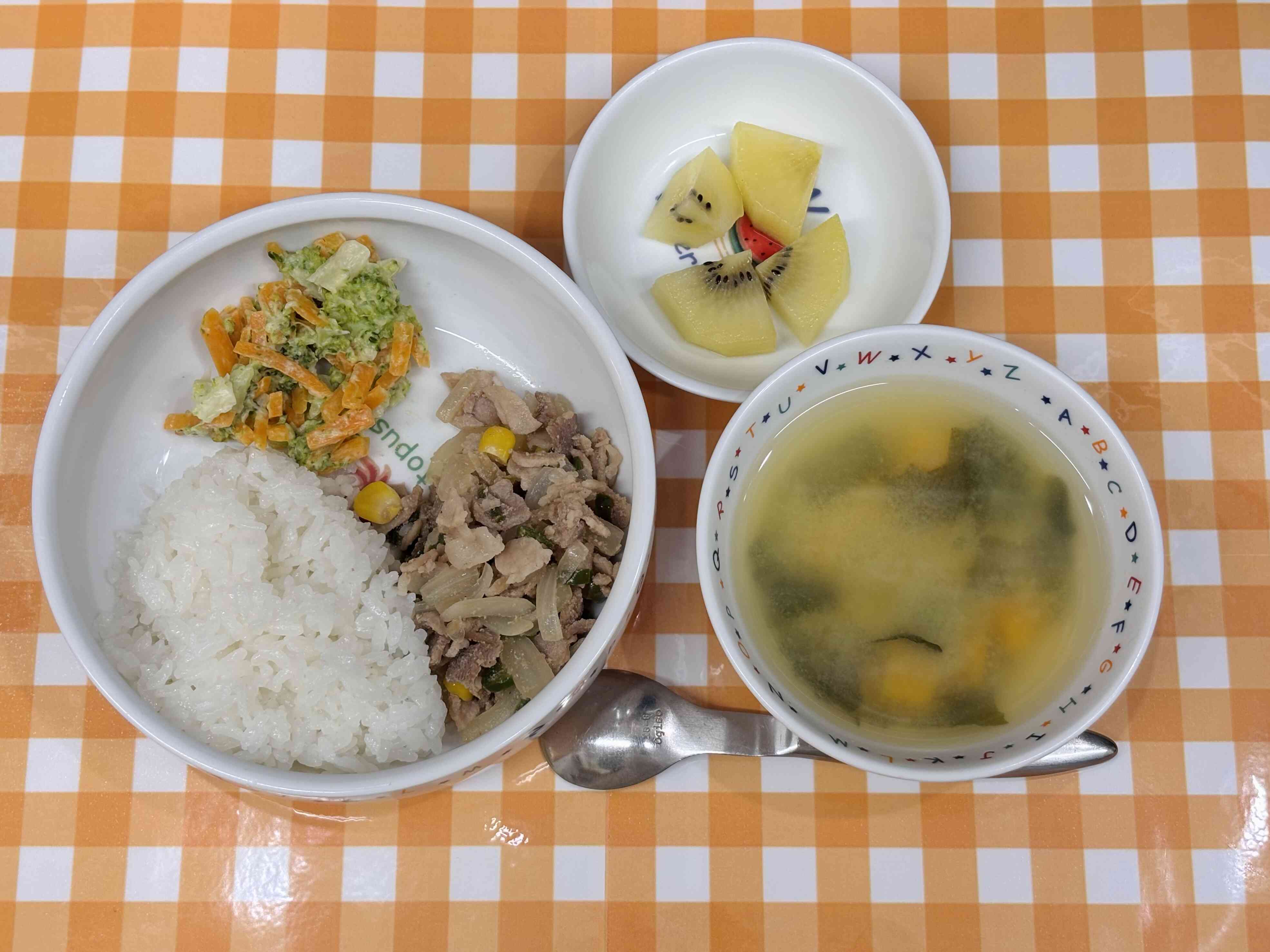 ・ご飯 ・ほうれんそうのすまし汁 ・さけのちゃんちゃん焼き ・じゃがいもの磯和え ・オレンジ