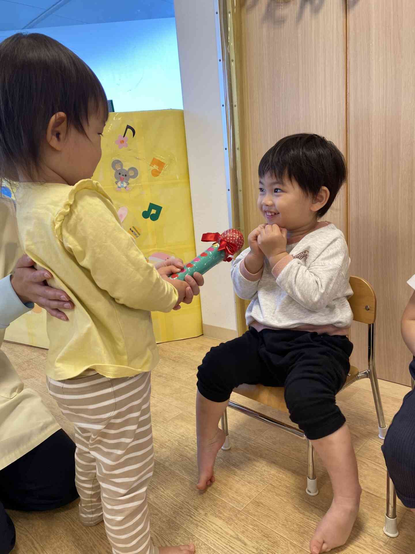 先生と一緒にお誕生日カードを渡したり、