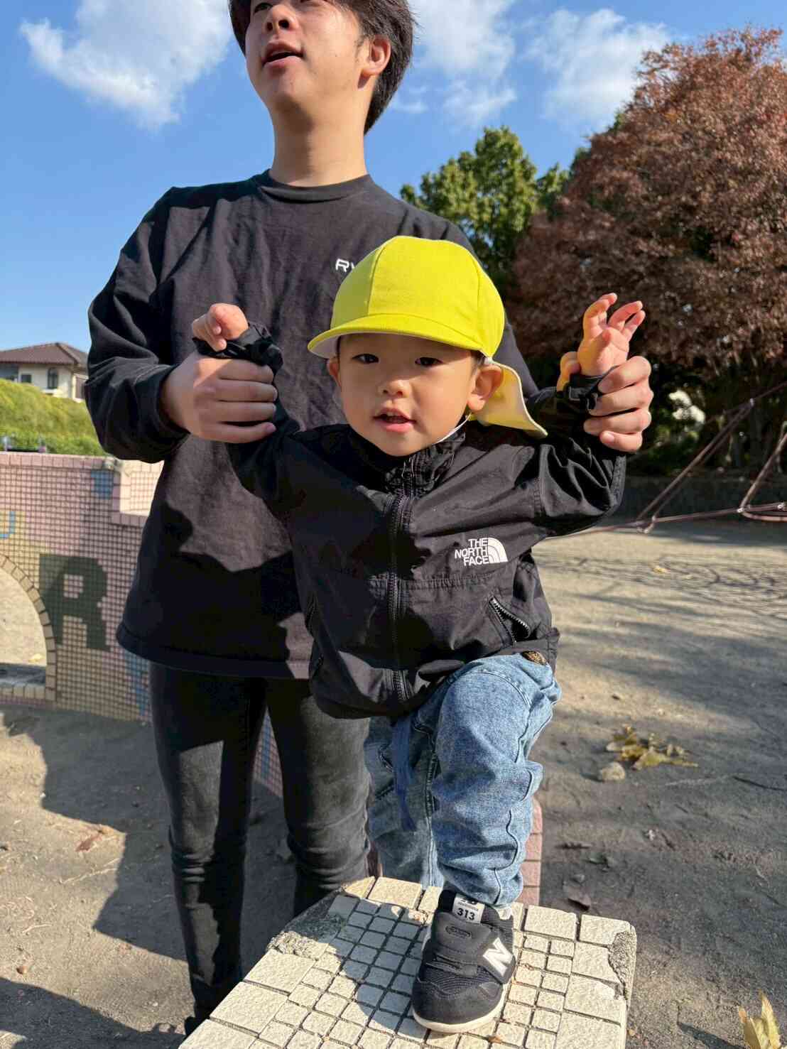 広場にある遊具に登ったり、