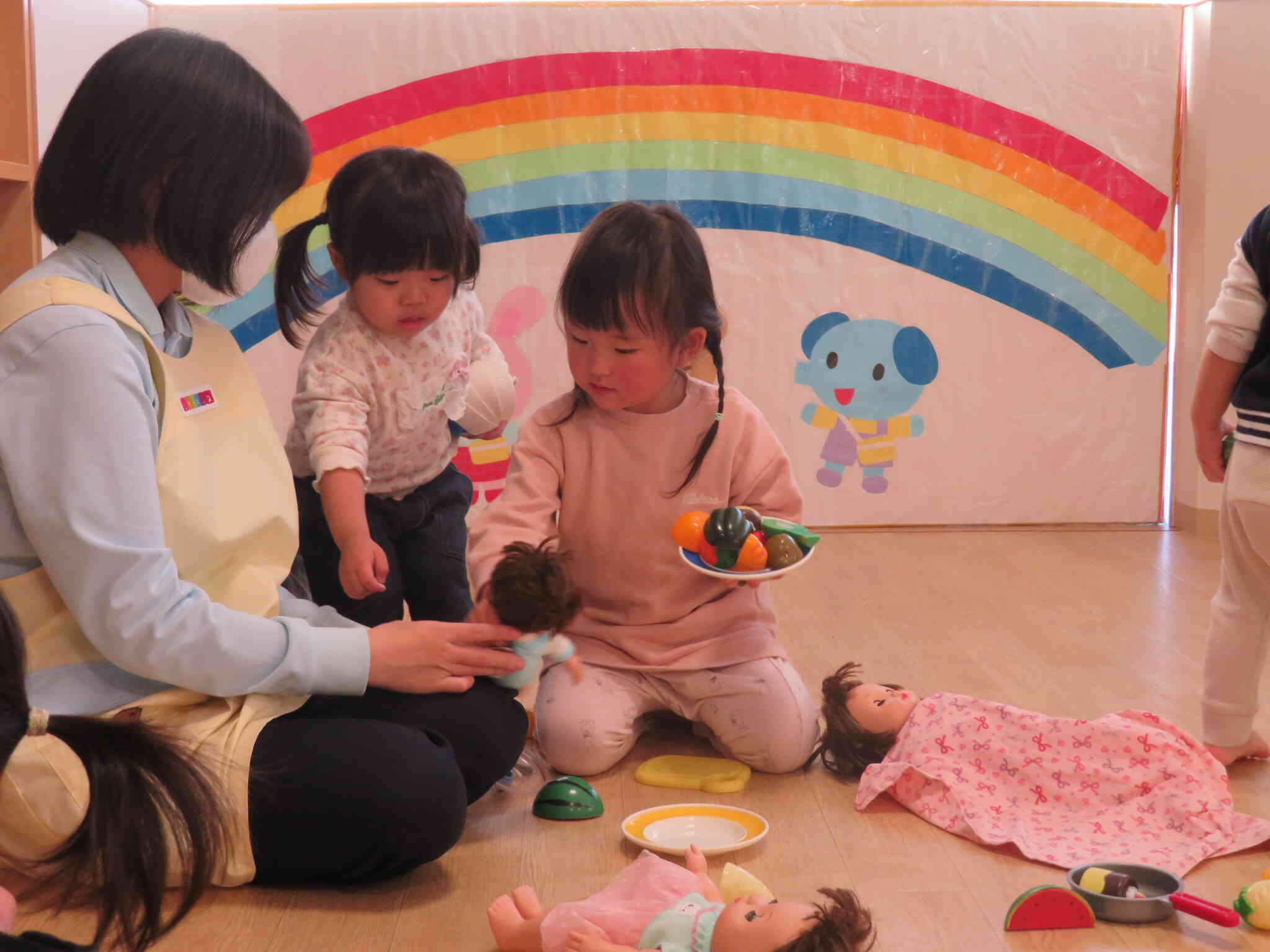 一緒に絵本を読んで楽しそうにお話をしています♪