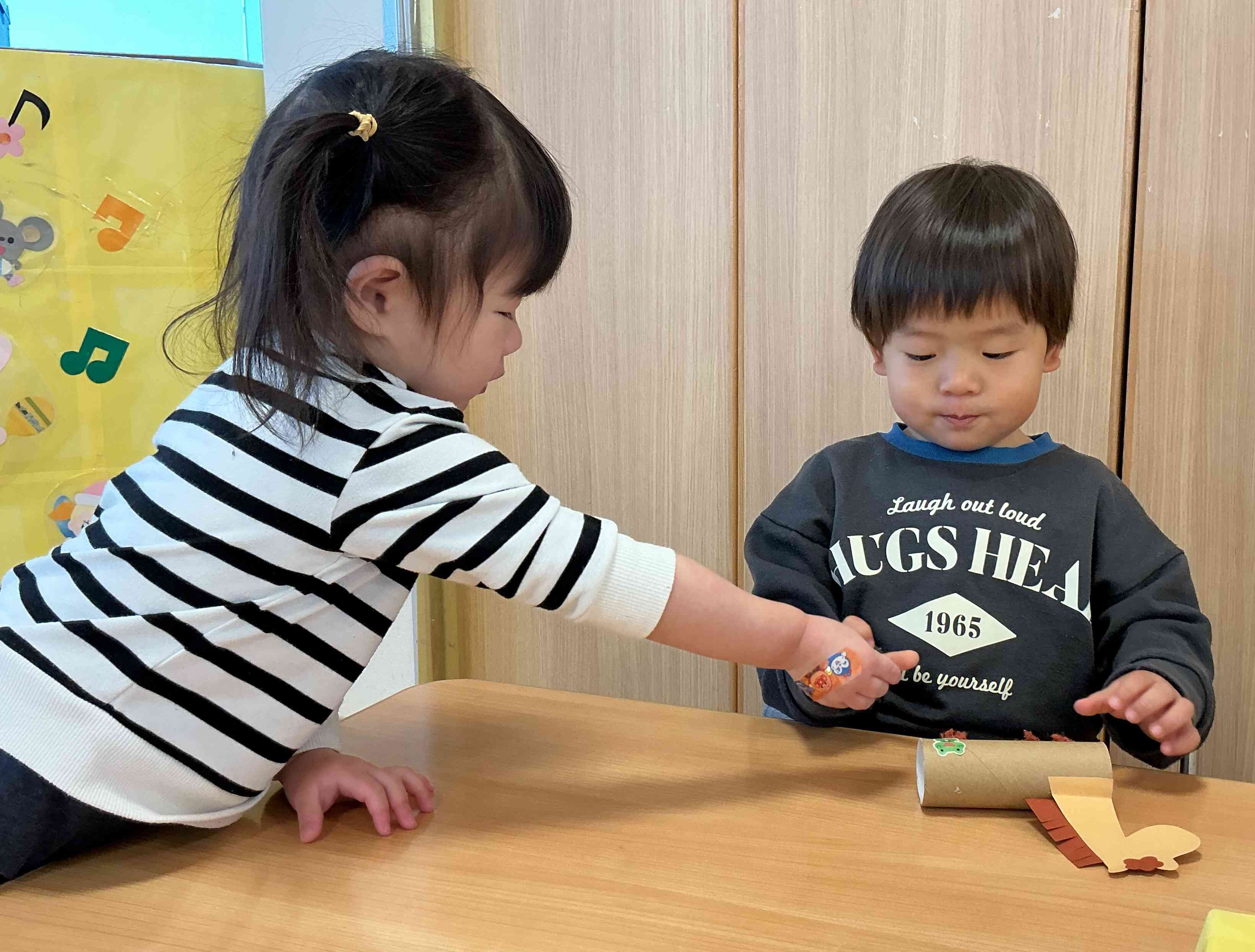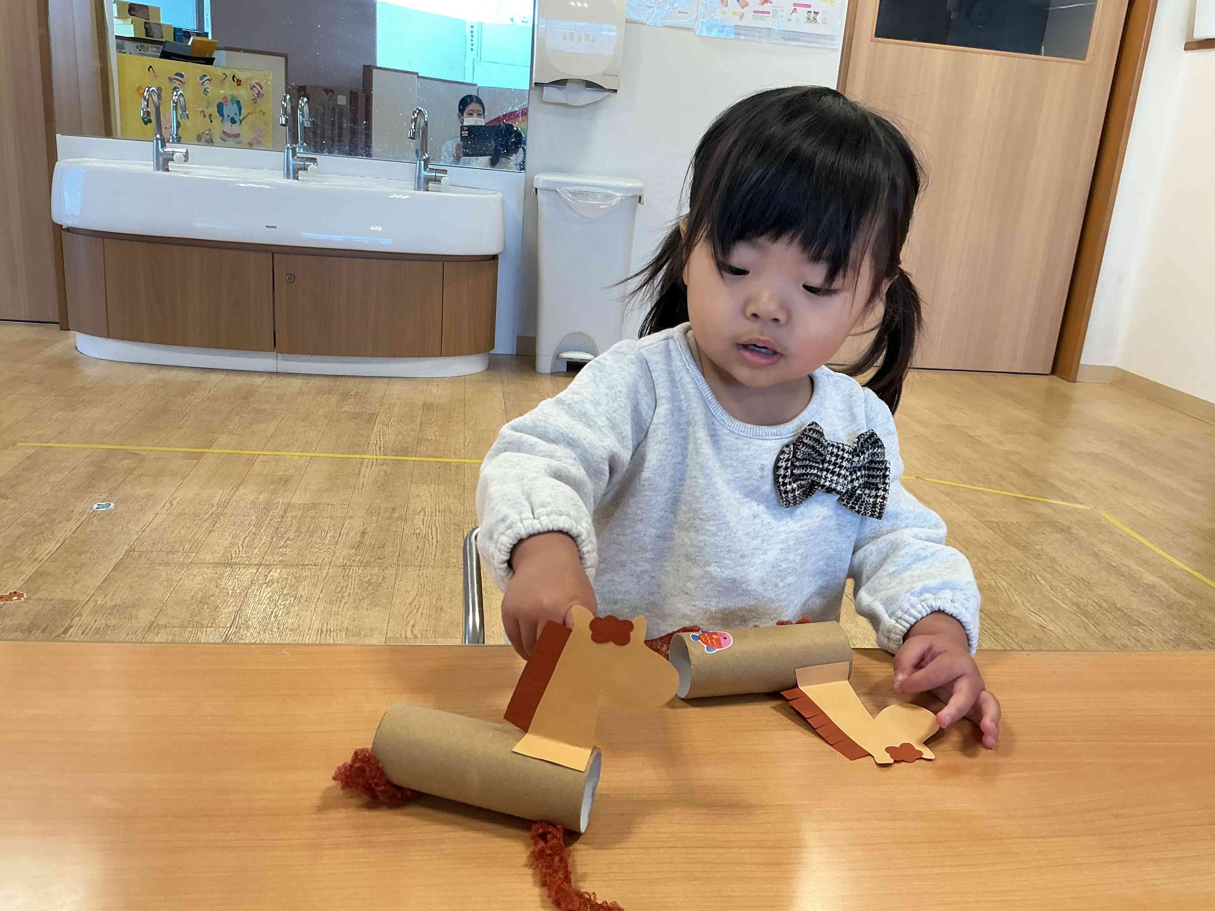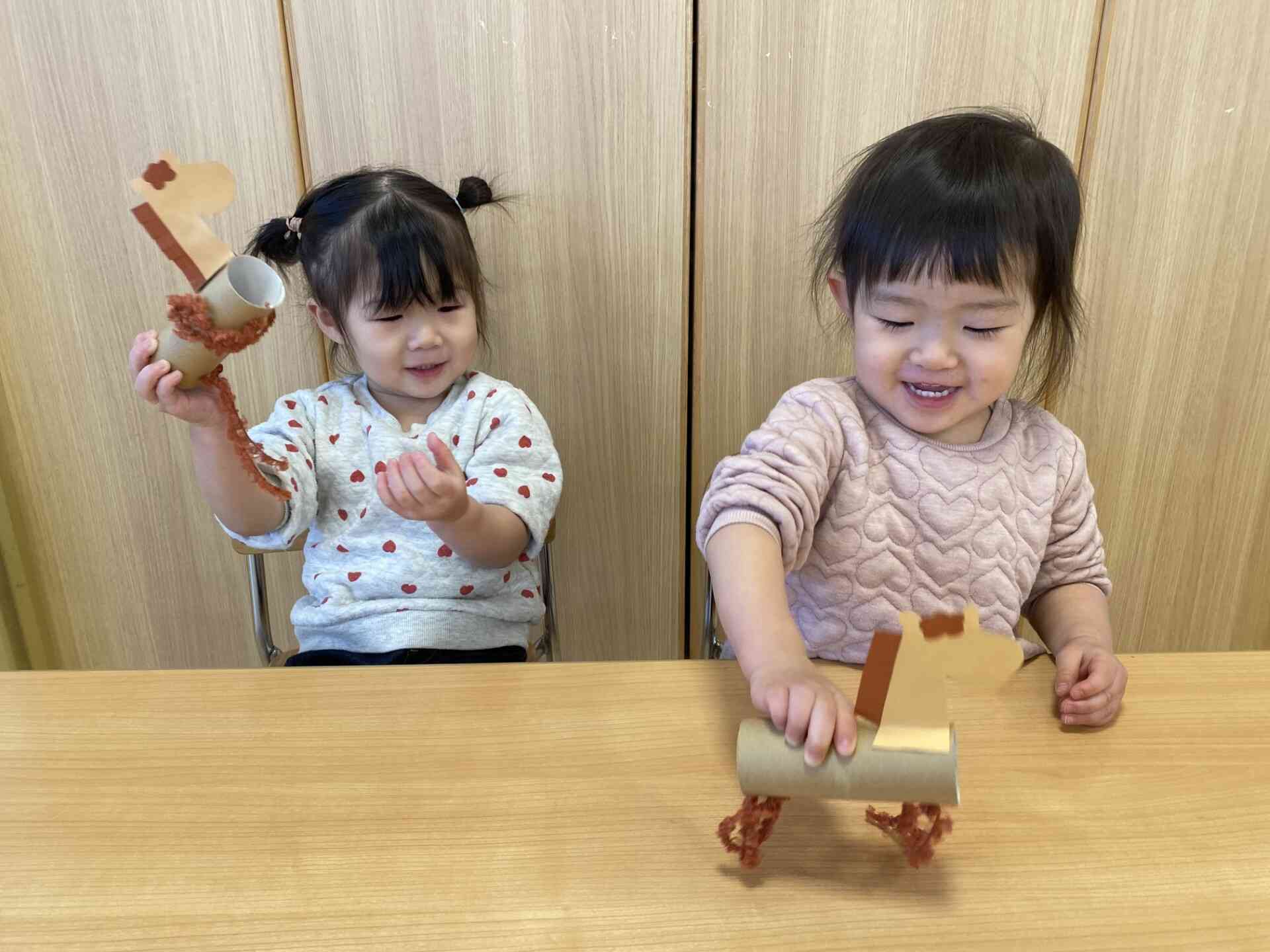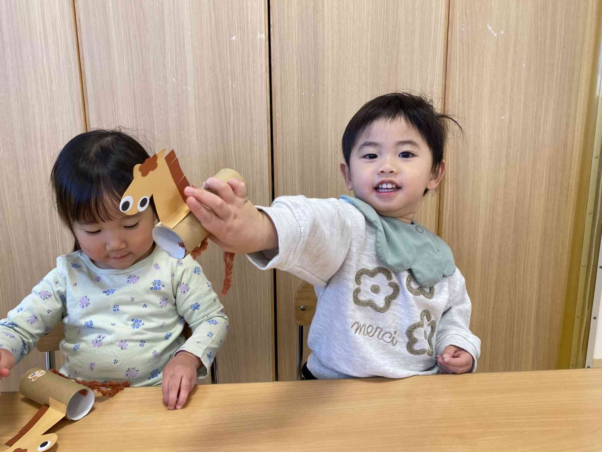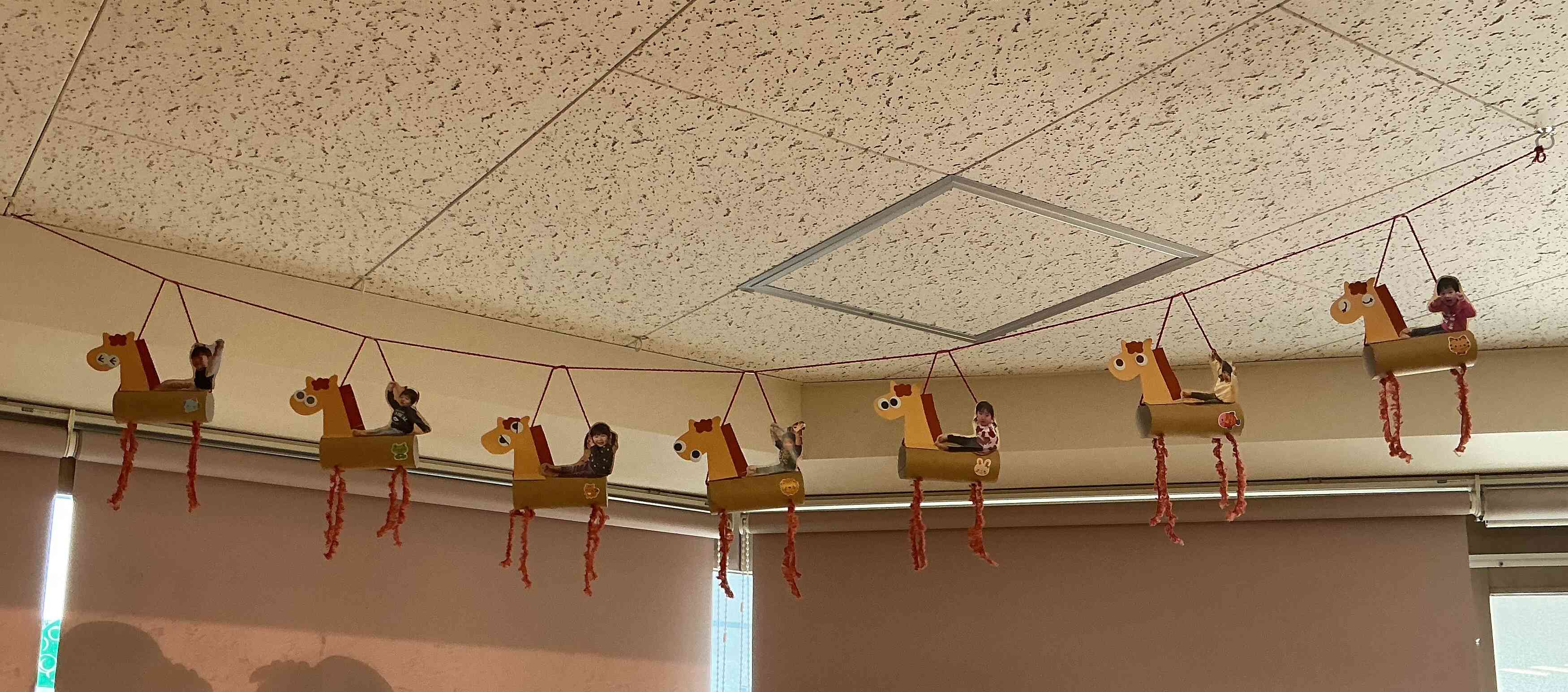 完成したお馬さんを保育室に飾ると・・