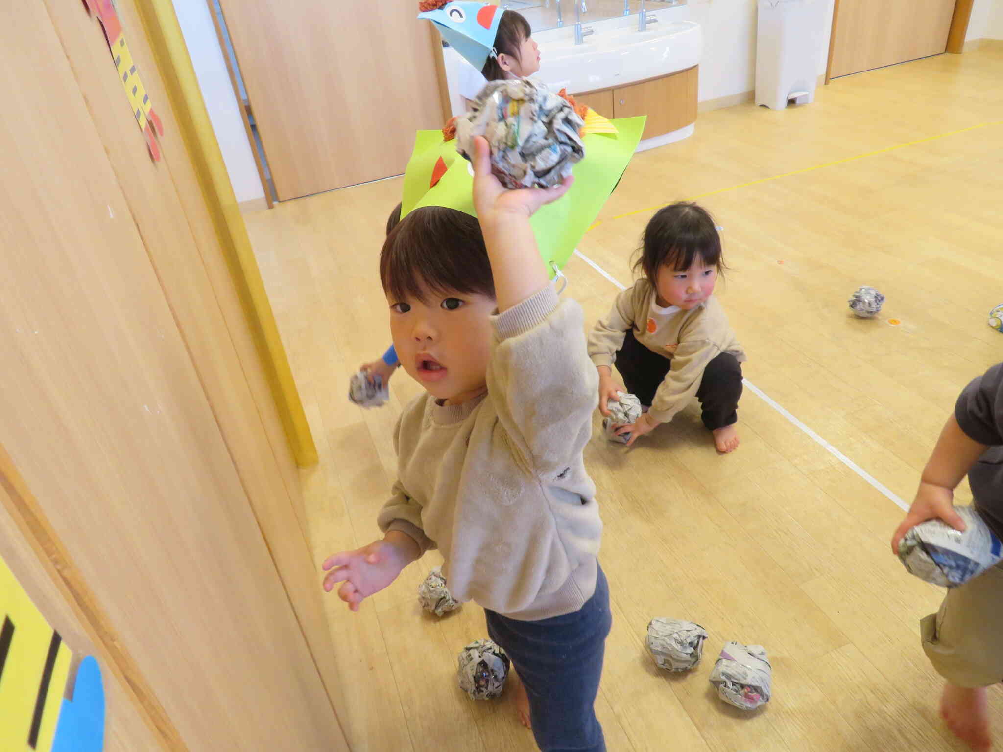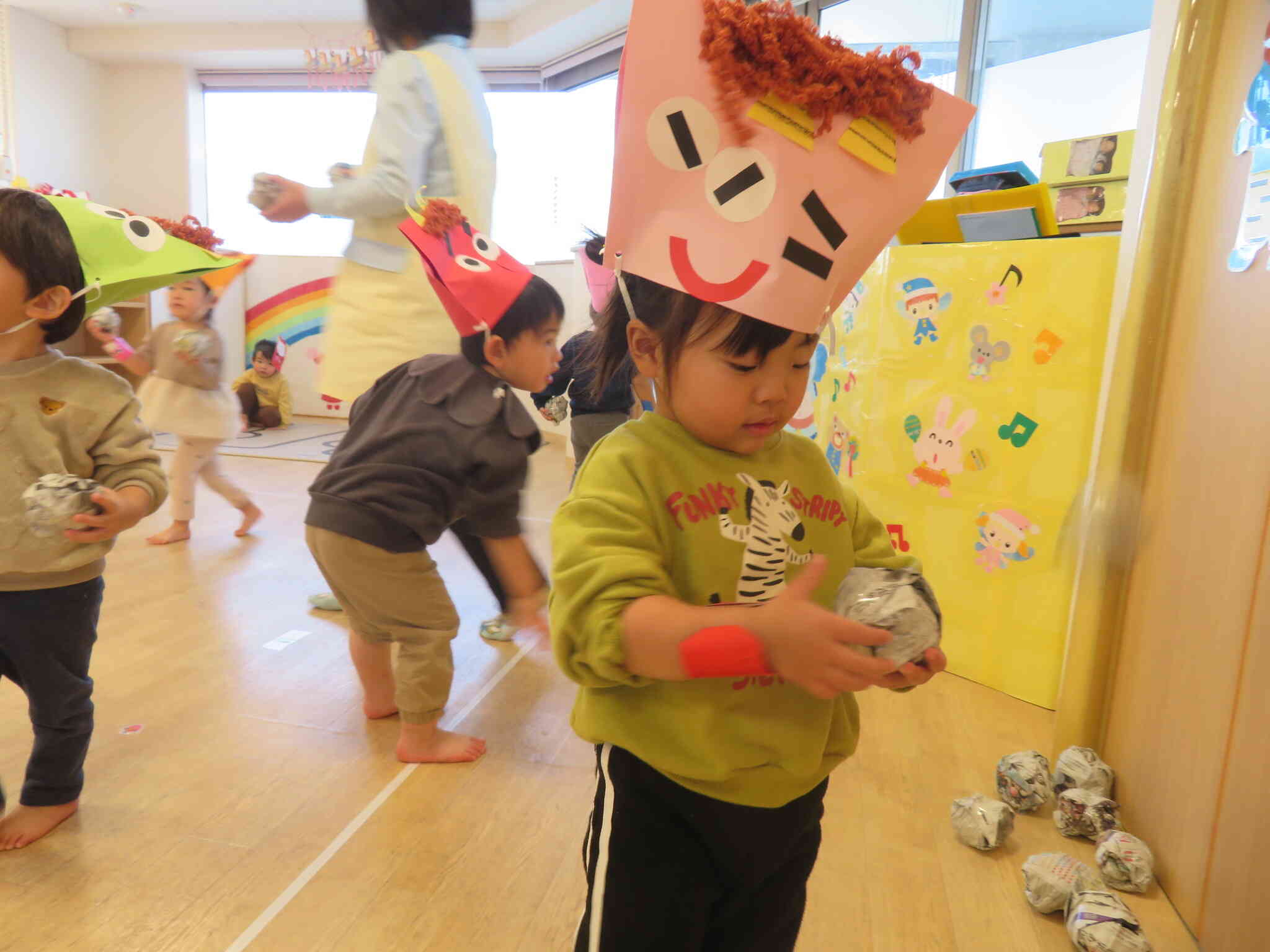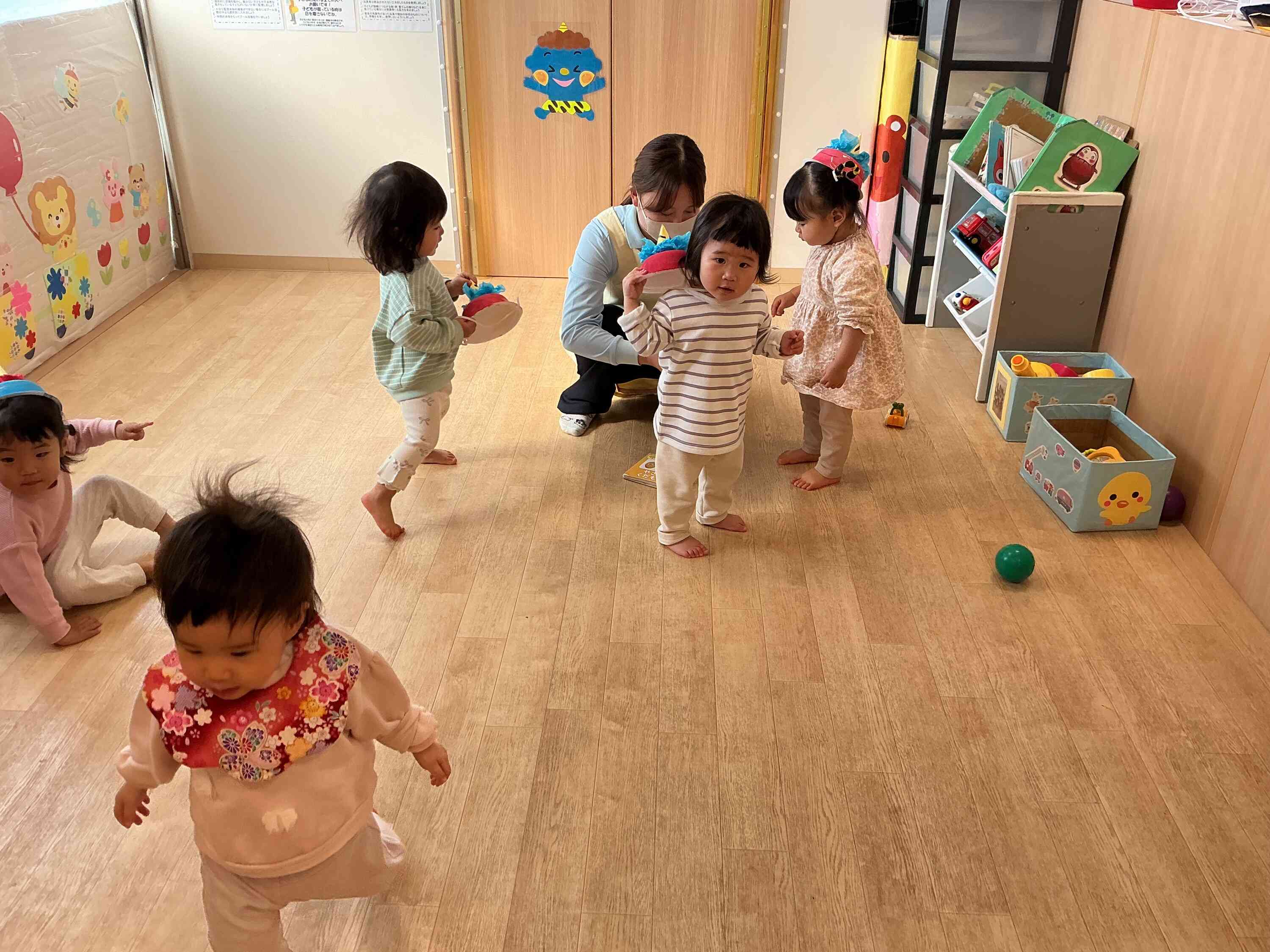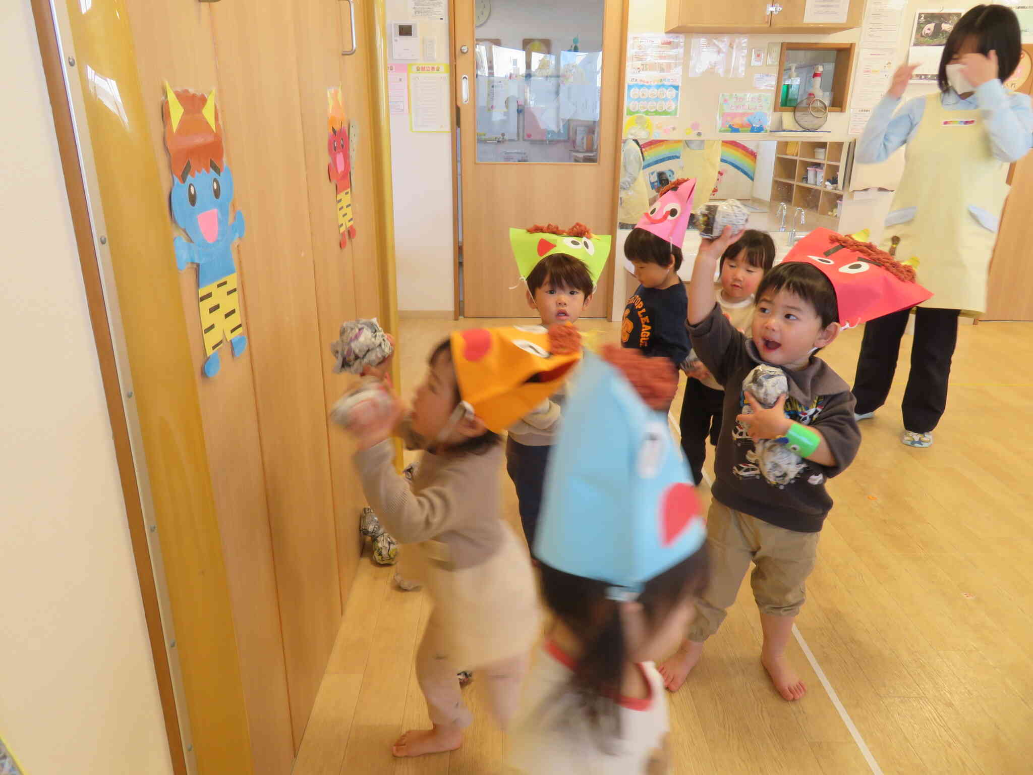 保育者に続けて「鬼は外!福は内!」と
