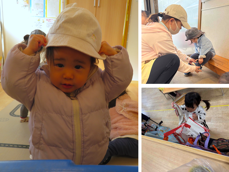 手を洗う、靴下や上着を着る、タオルや服を自分のカゴに片付けるなど、