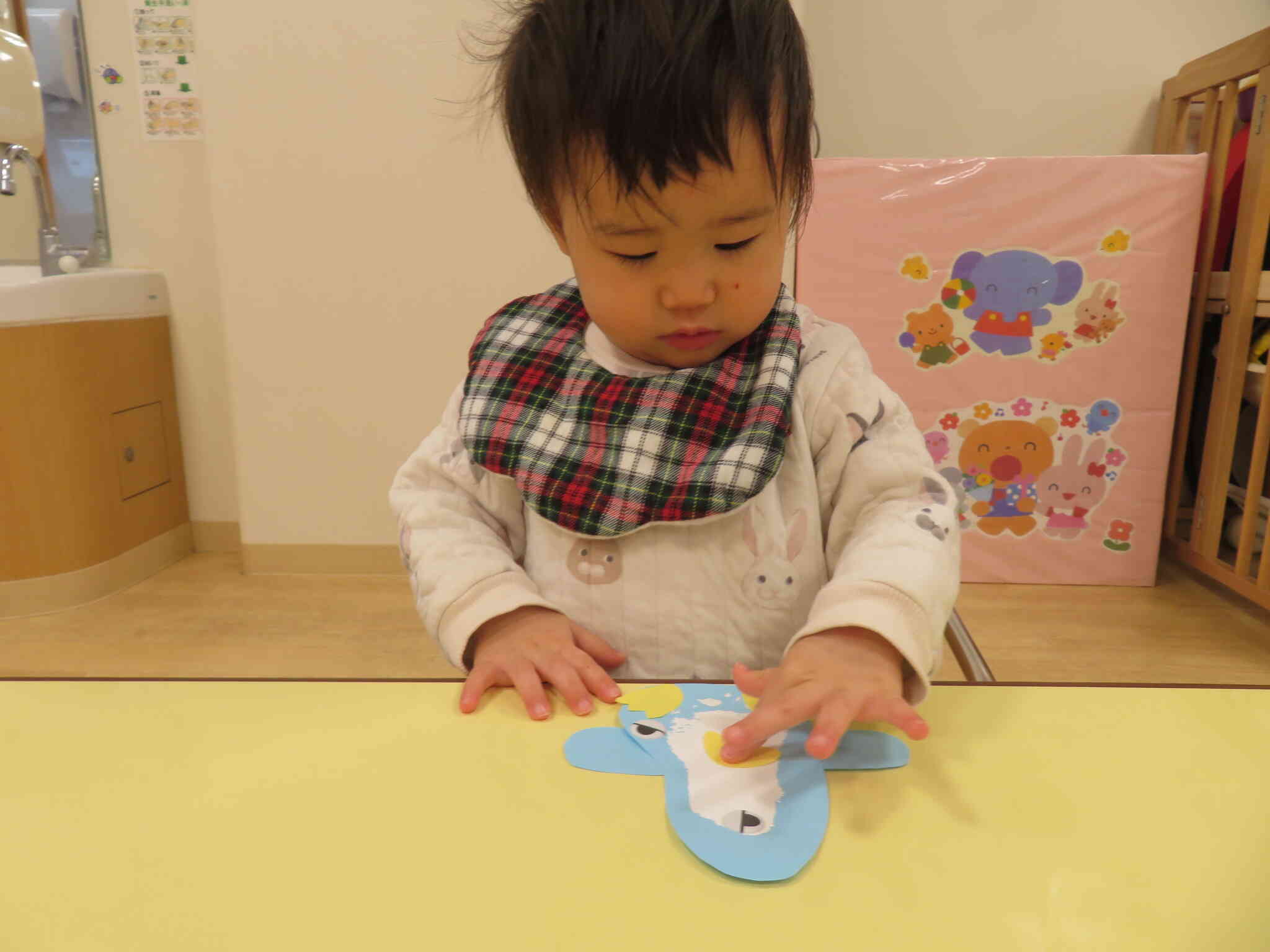 次はお顔をぺたぺた