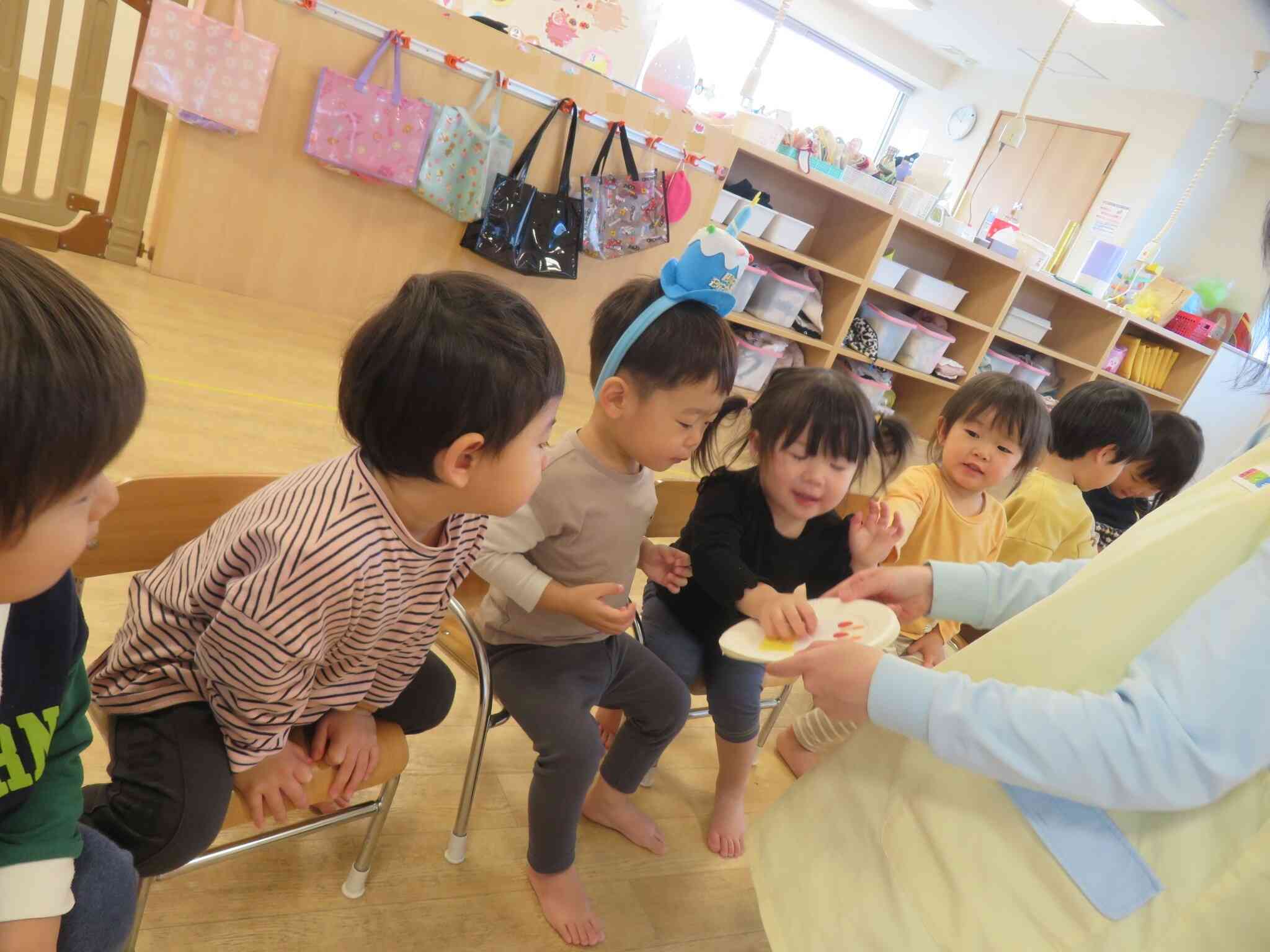 紙皿の絵が回転と共に変化する紙皿シアターでは、
