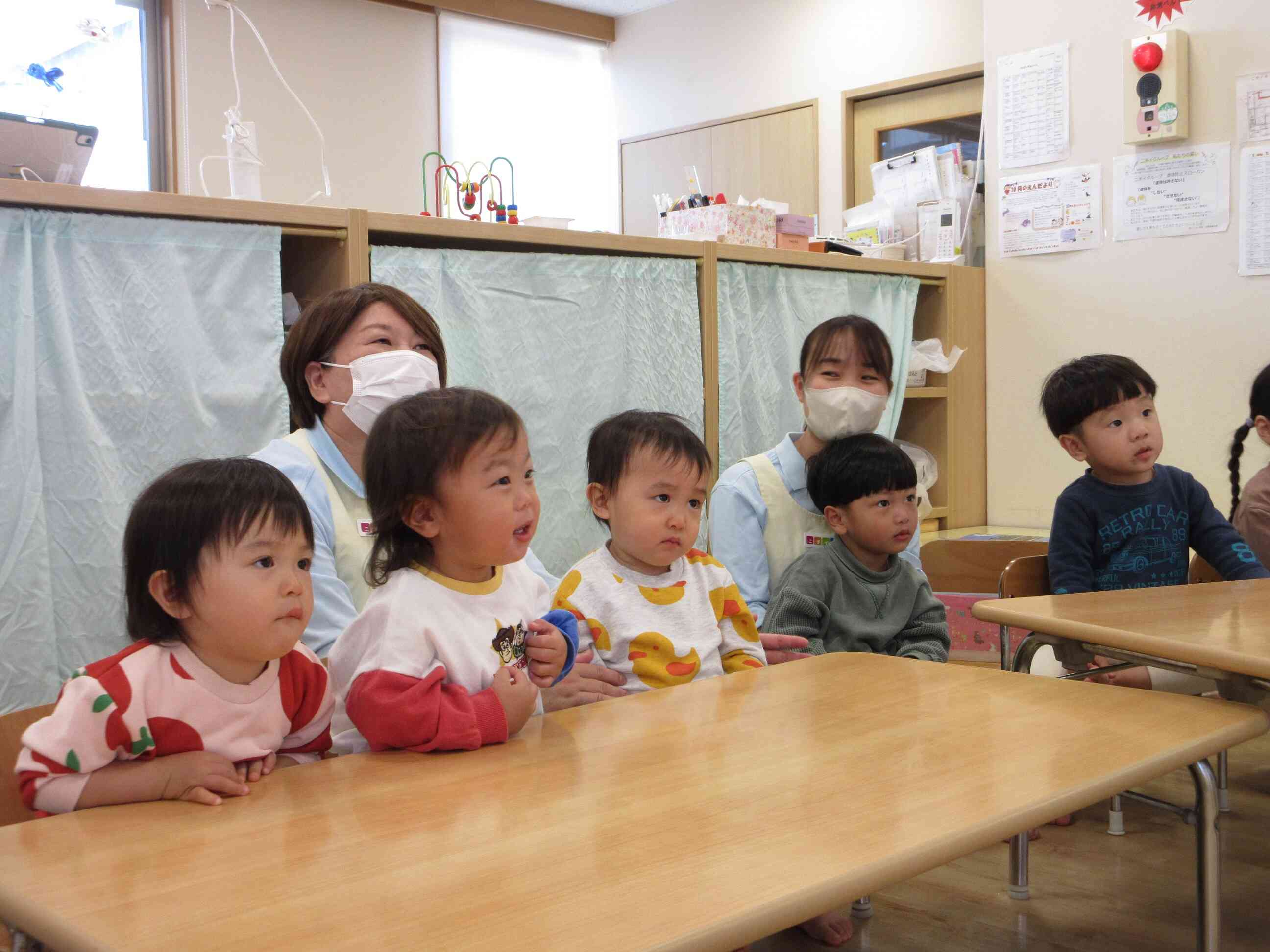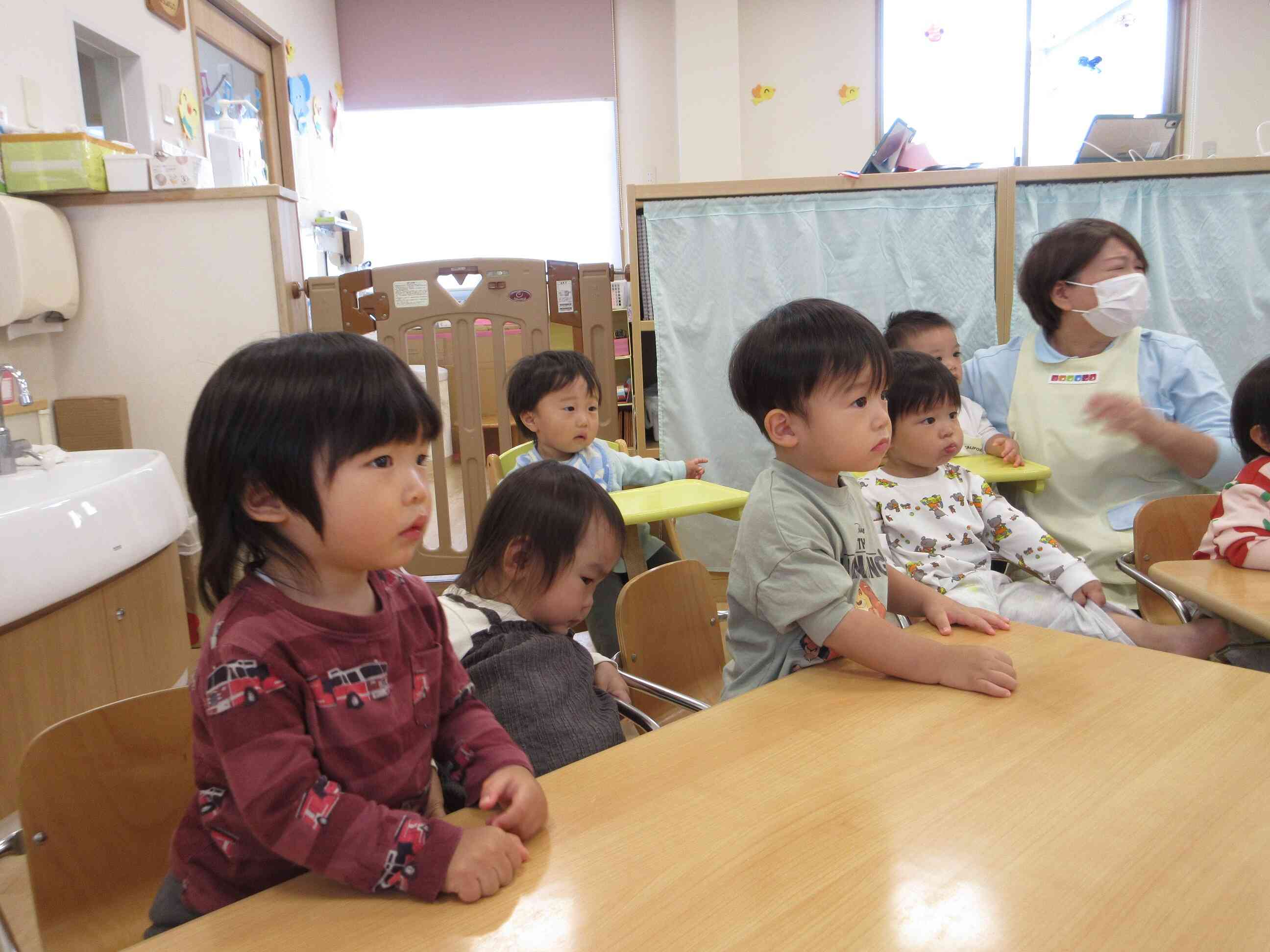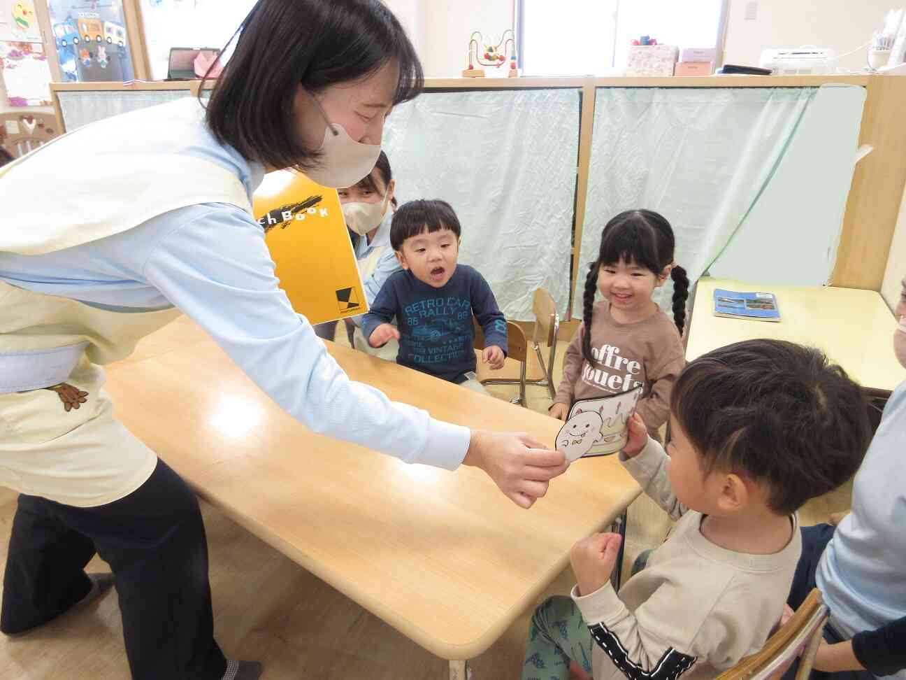 お誕生日のお友だちへ歌のプレゼントやお祝いの言葉のプレゼントが終わると、先生からのお楽しみのプレゼントが始まりました。