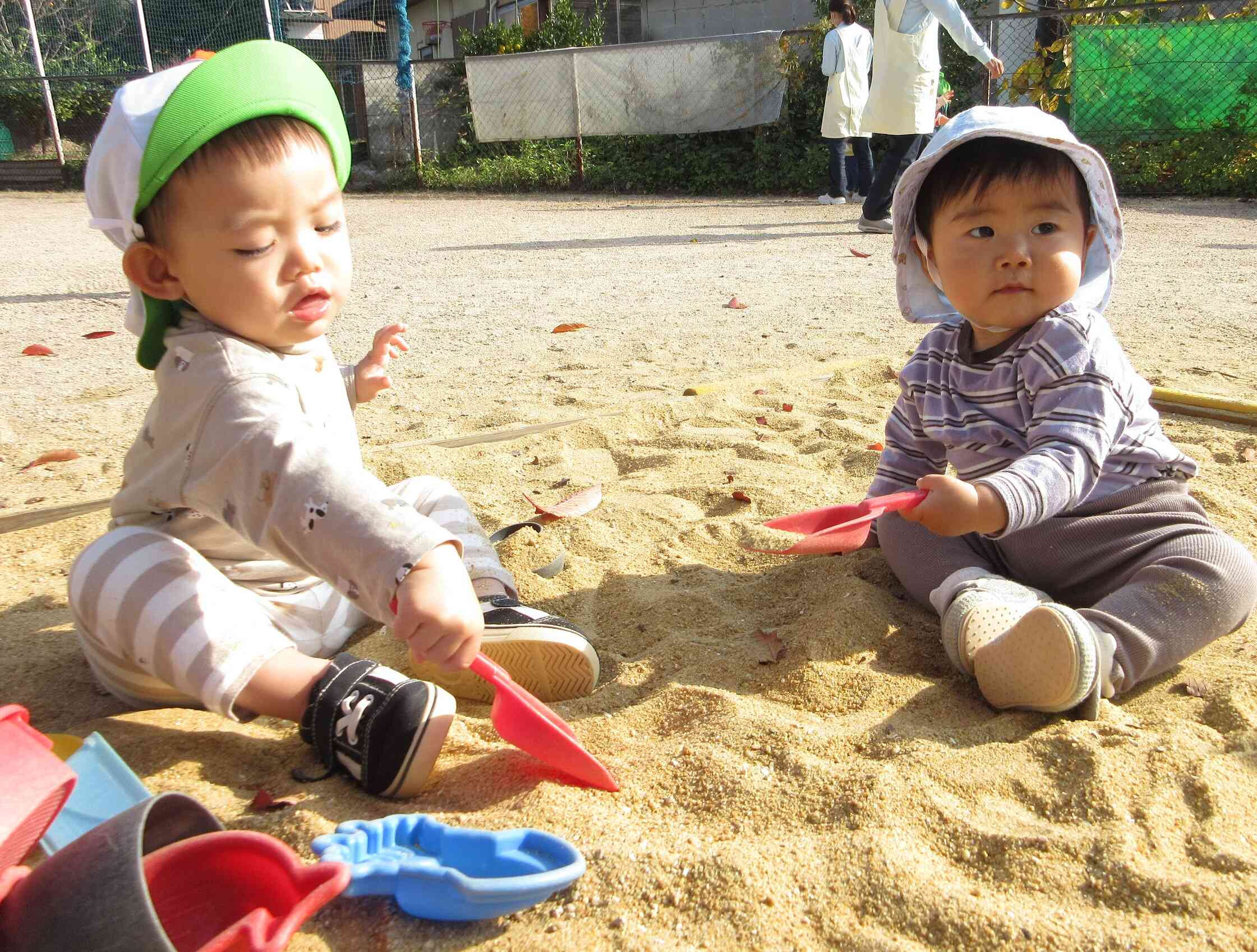 色づいた葉っぱを拾ってみたり、アリさんが歩いているのをじっと観察したり・・・