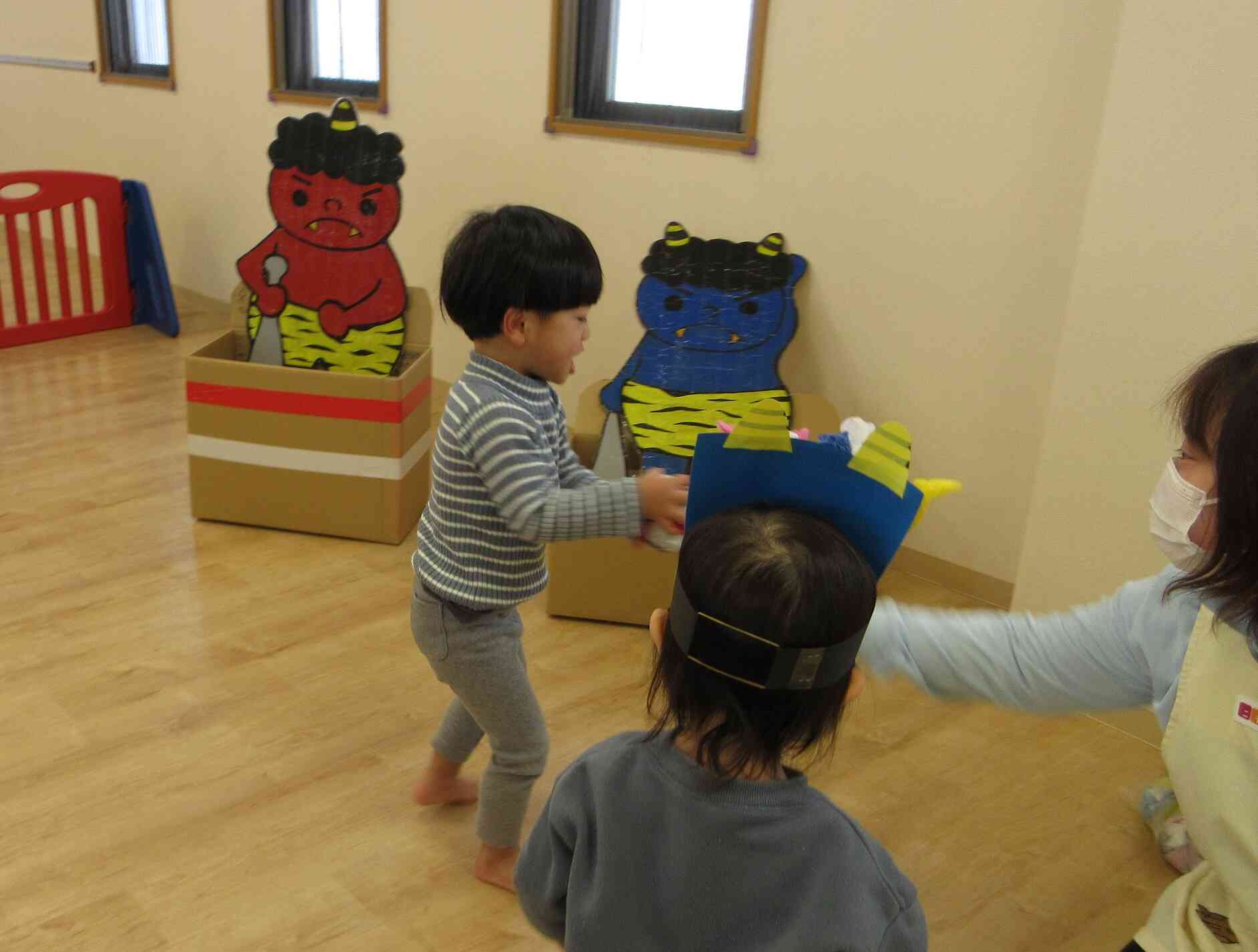 怖がるお友だちや、勇敢に鬼に立ち向かうお友だち、不思議そうに見ているお友だち・・・