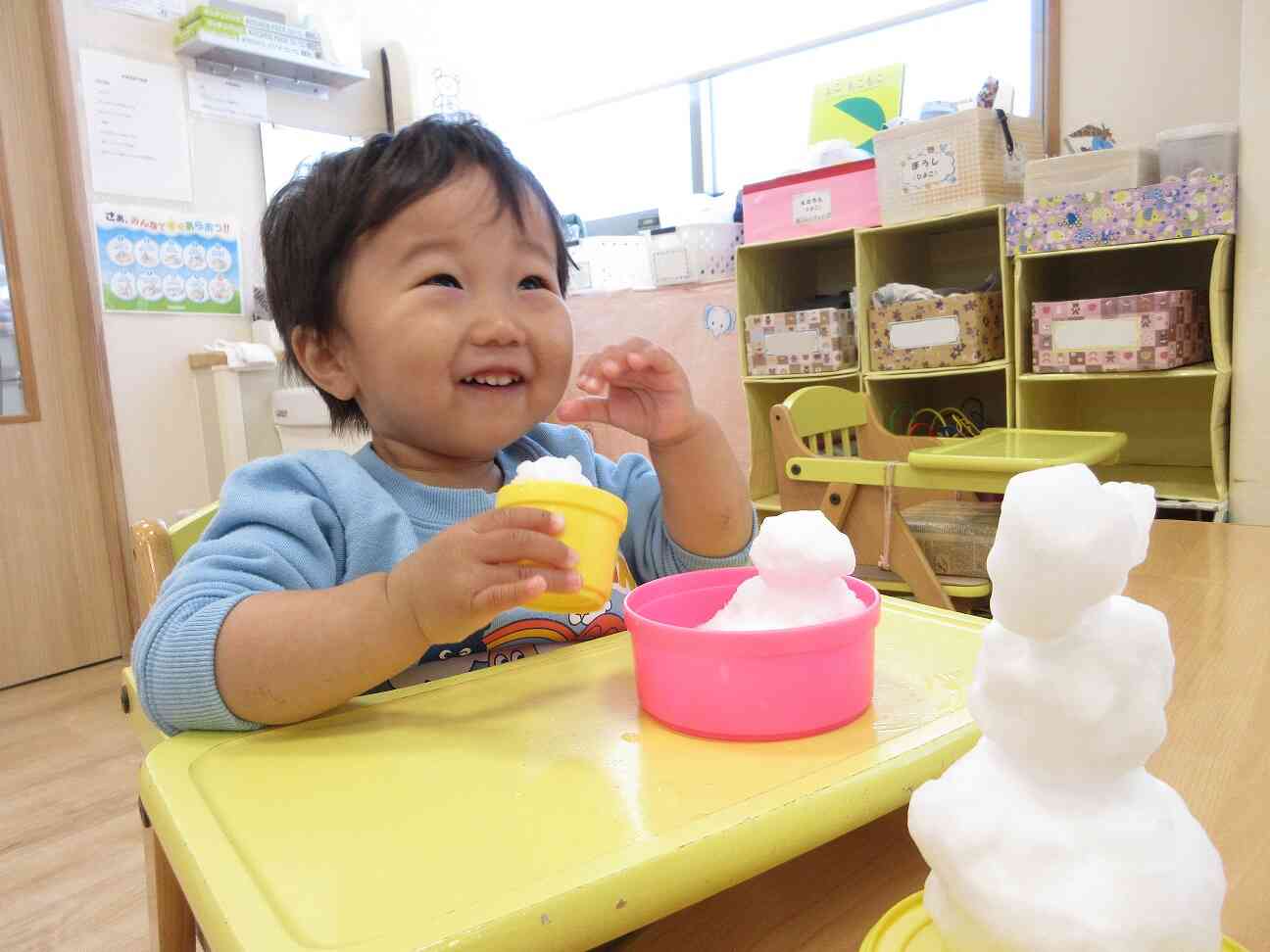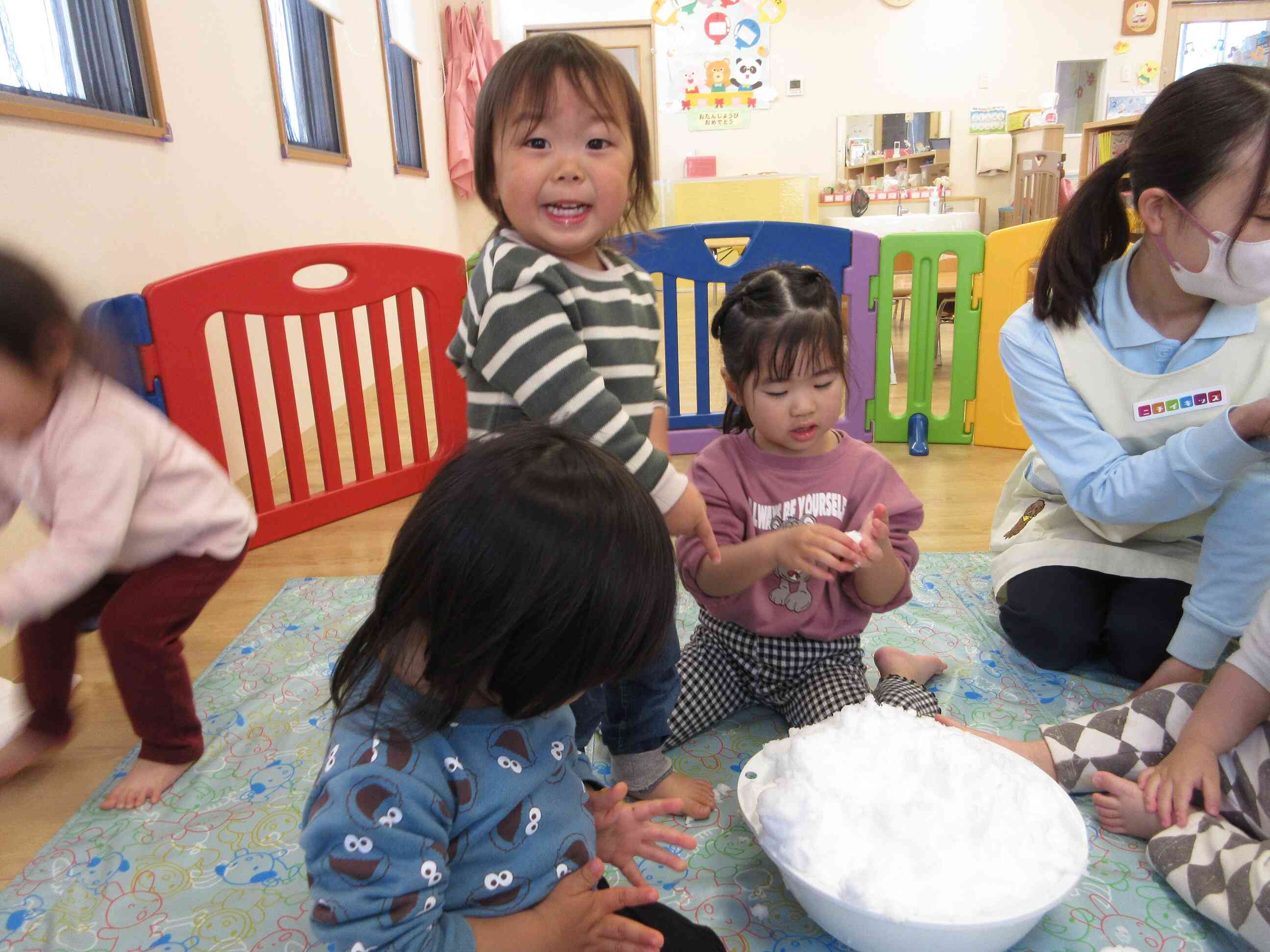 先生が作った雪だるまを嬉しそうに触ったり見たりしていました