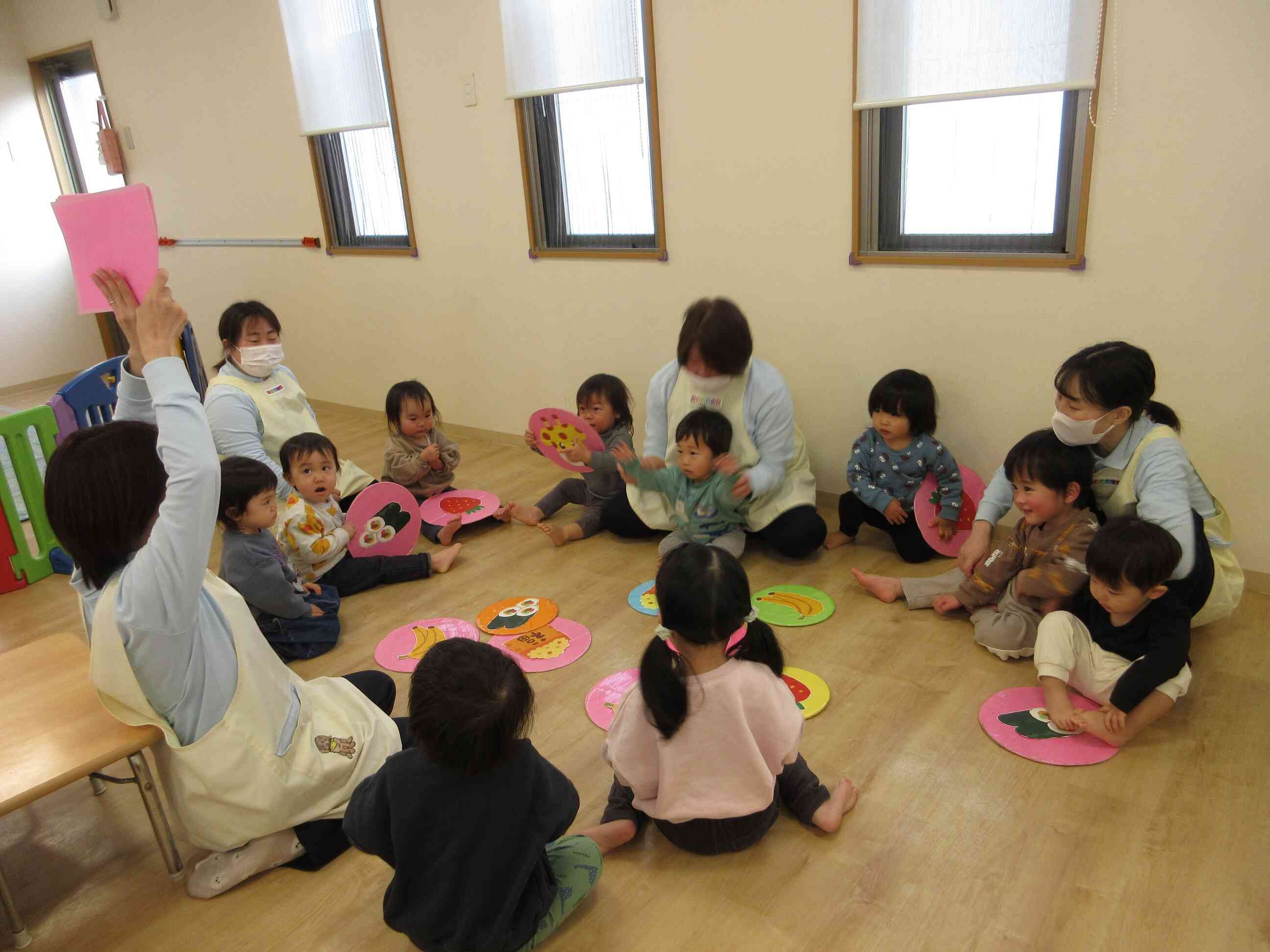 先生が「同じ食べものはどれかな~?」と悩んでいると子どもたちが「それは違うよ~」「合ってるよ!」など大きな声で教えてくれました。
