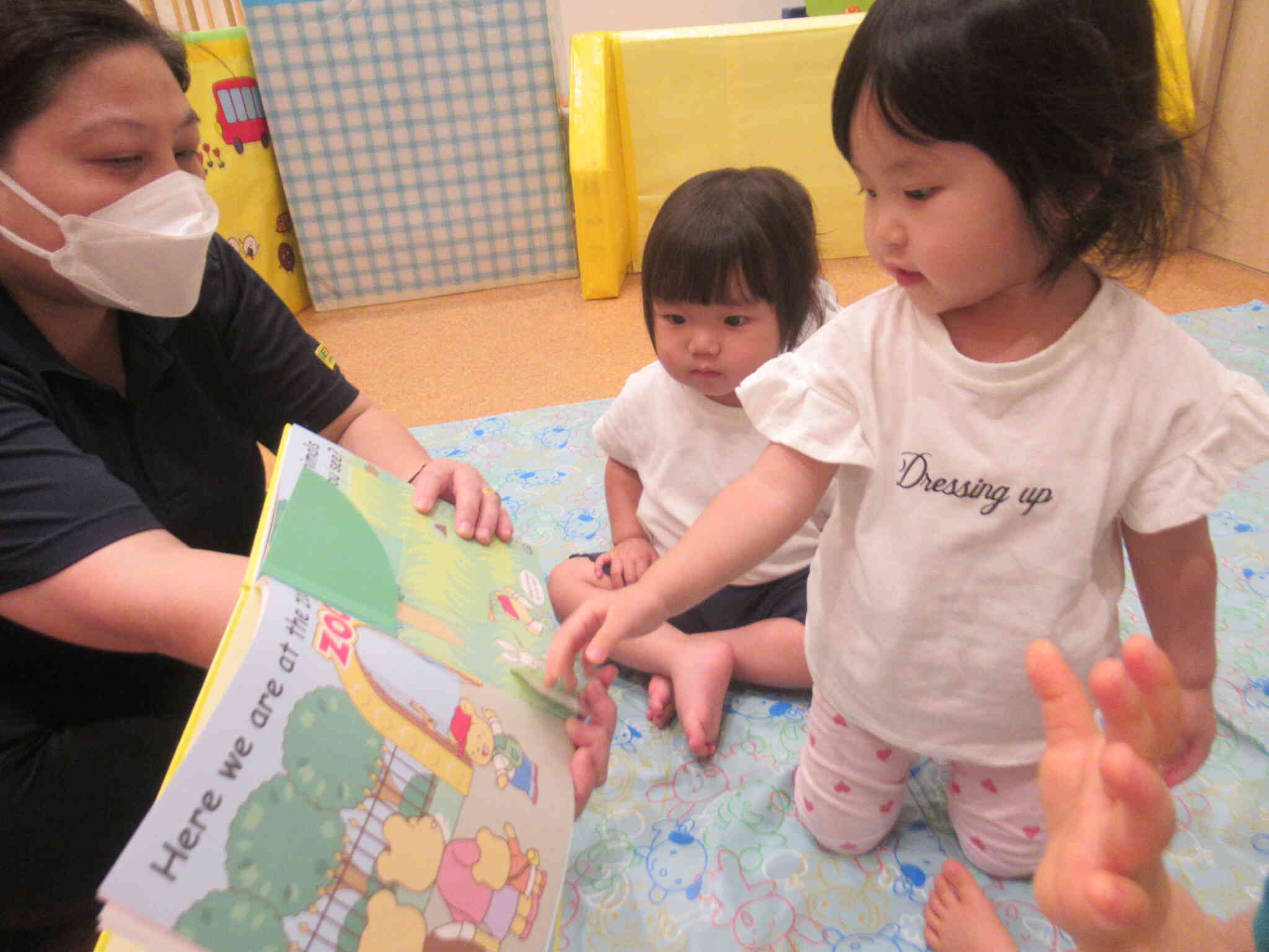 ぱんだ組のお友だちもカードに興味を示したり、絵本のページを先生と一緒にめくったり楽しそうでした♪