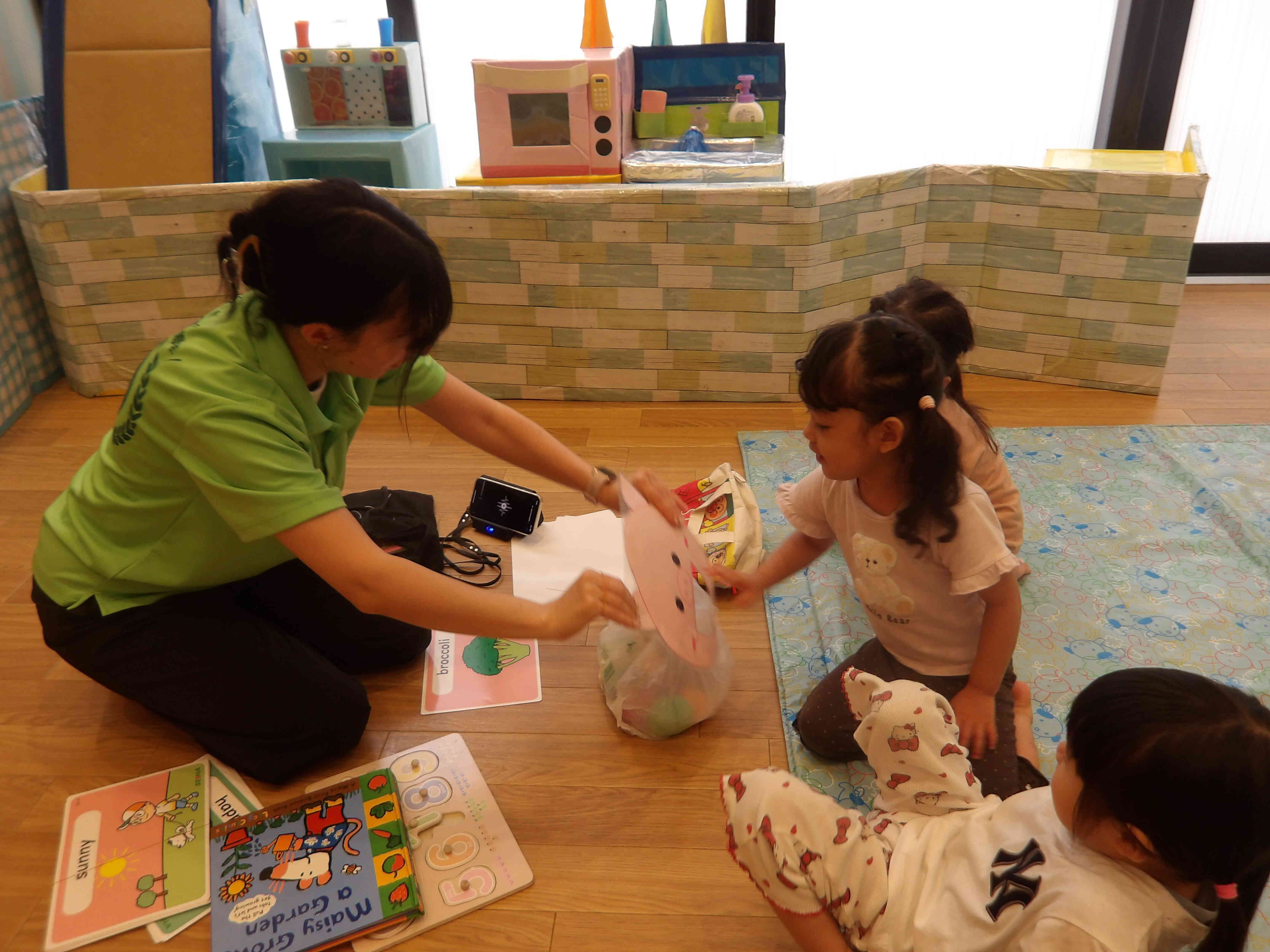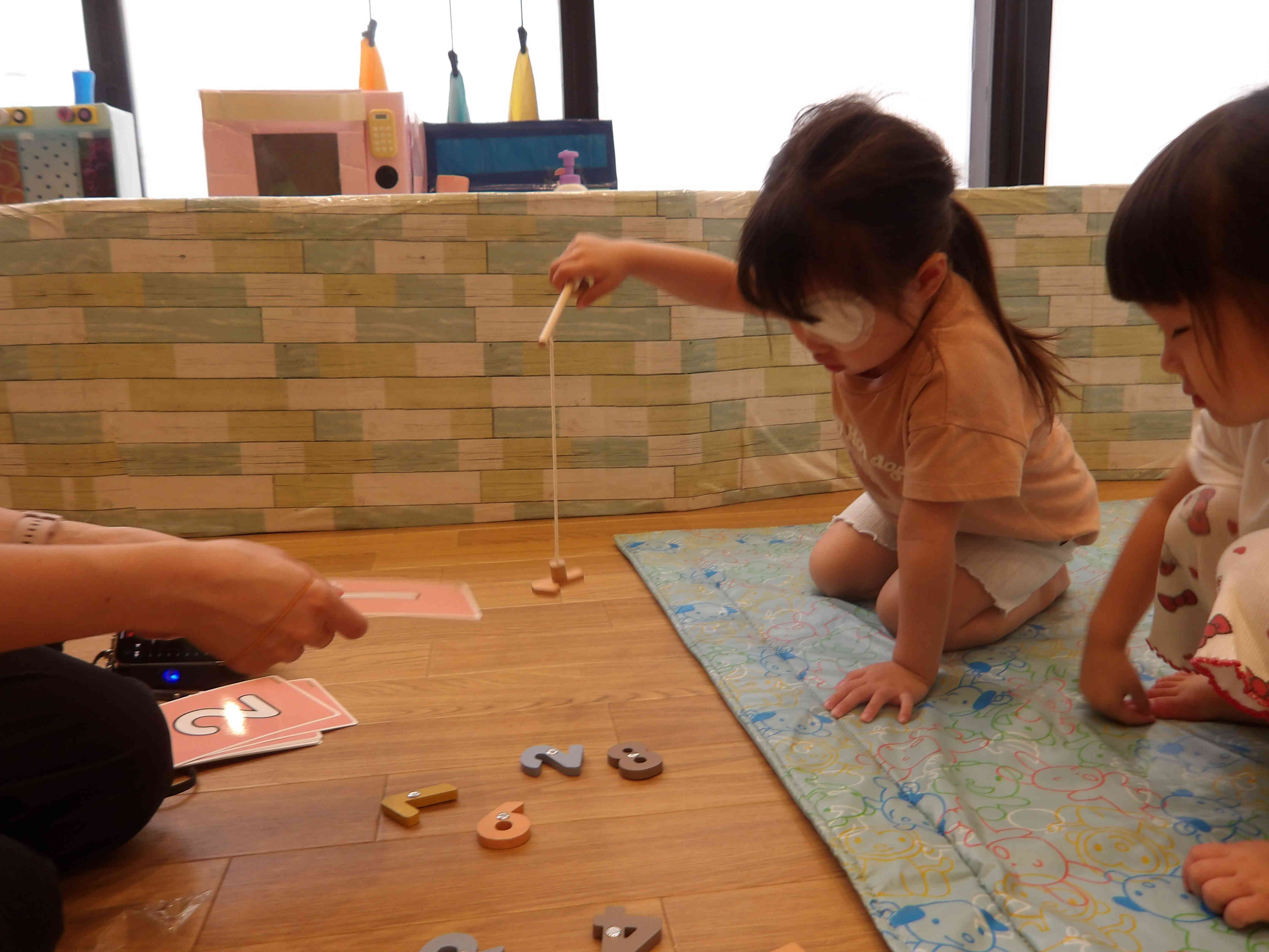ゆらゆら揺れる糸に「あー、そっちじゃないよぉ!」と一生懸命吊り上げようとしている姿がとてもかわいいきりん組さんでした