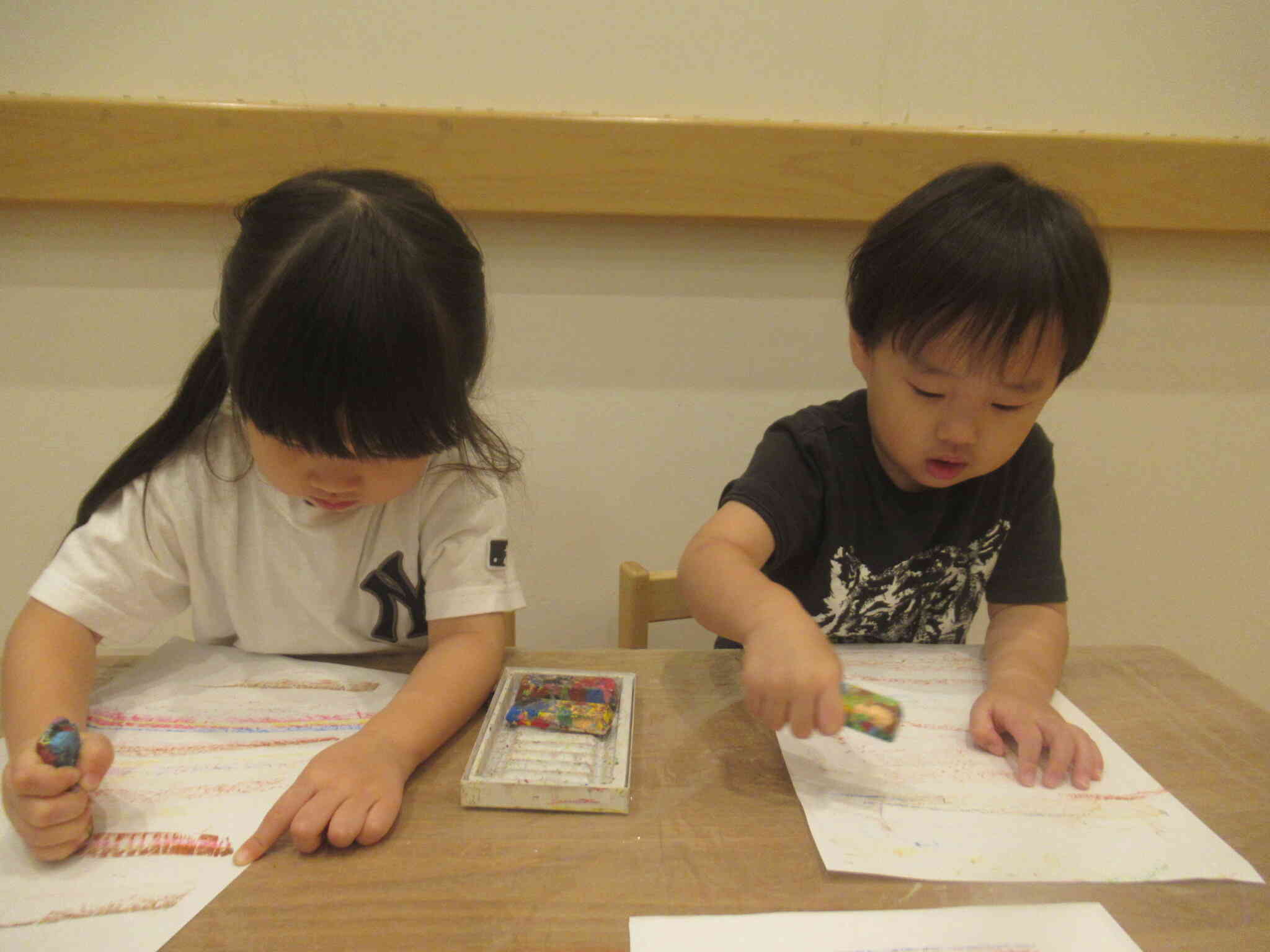 マーブルクレヨンで塗った画用紙で蜘蛛を作りました。
