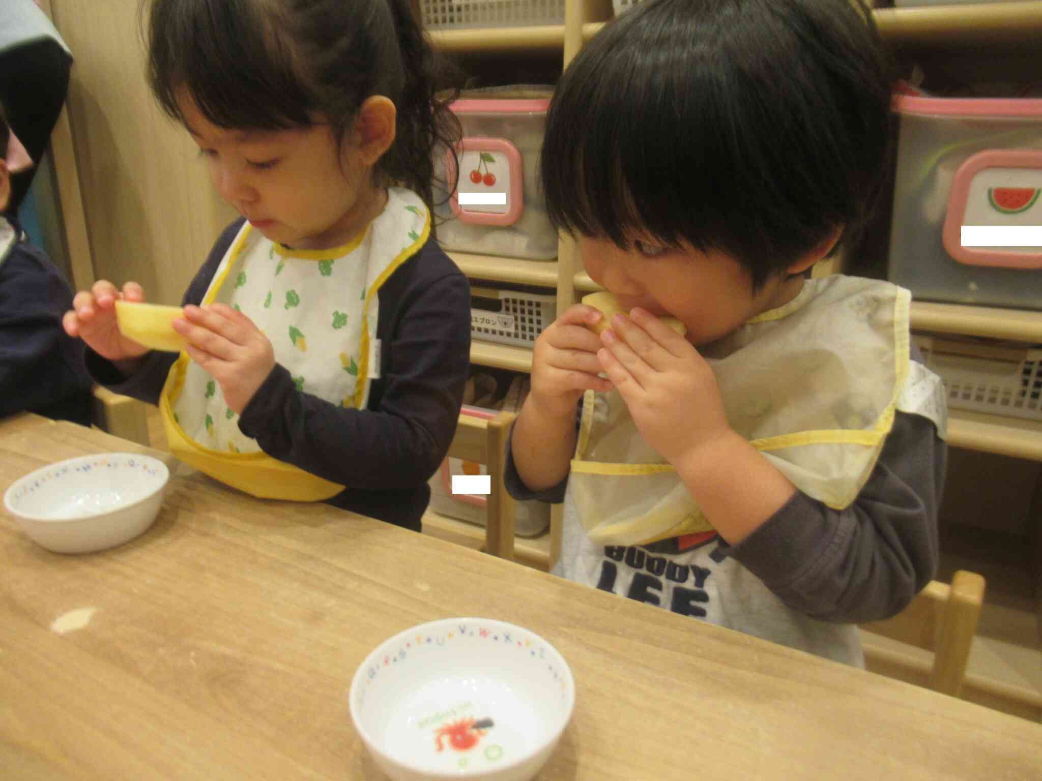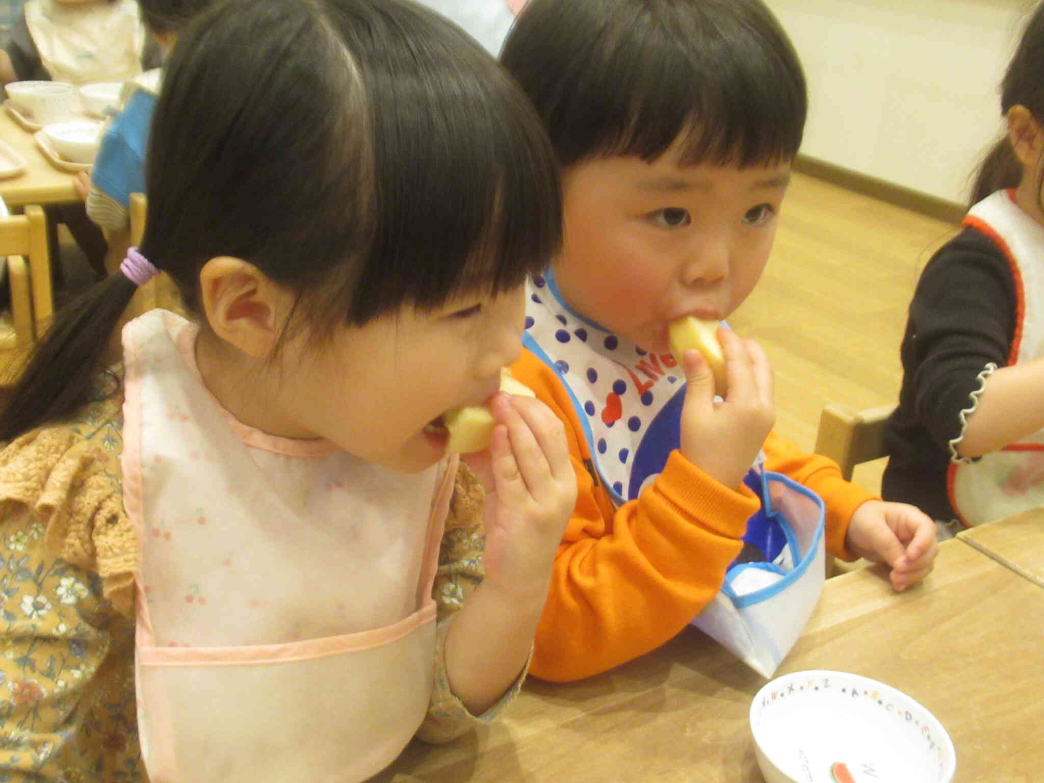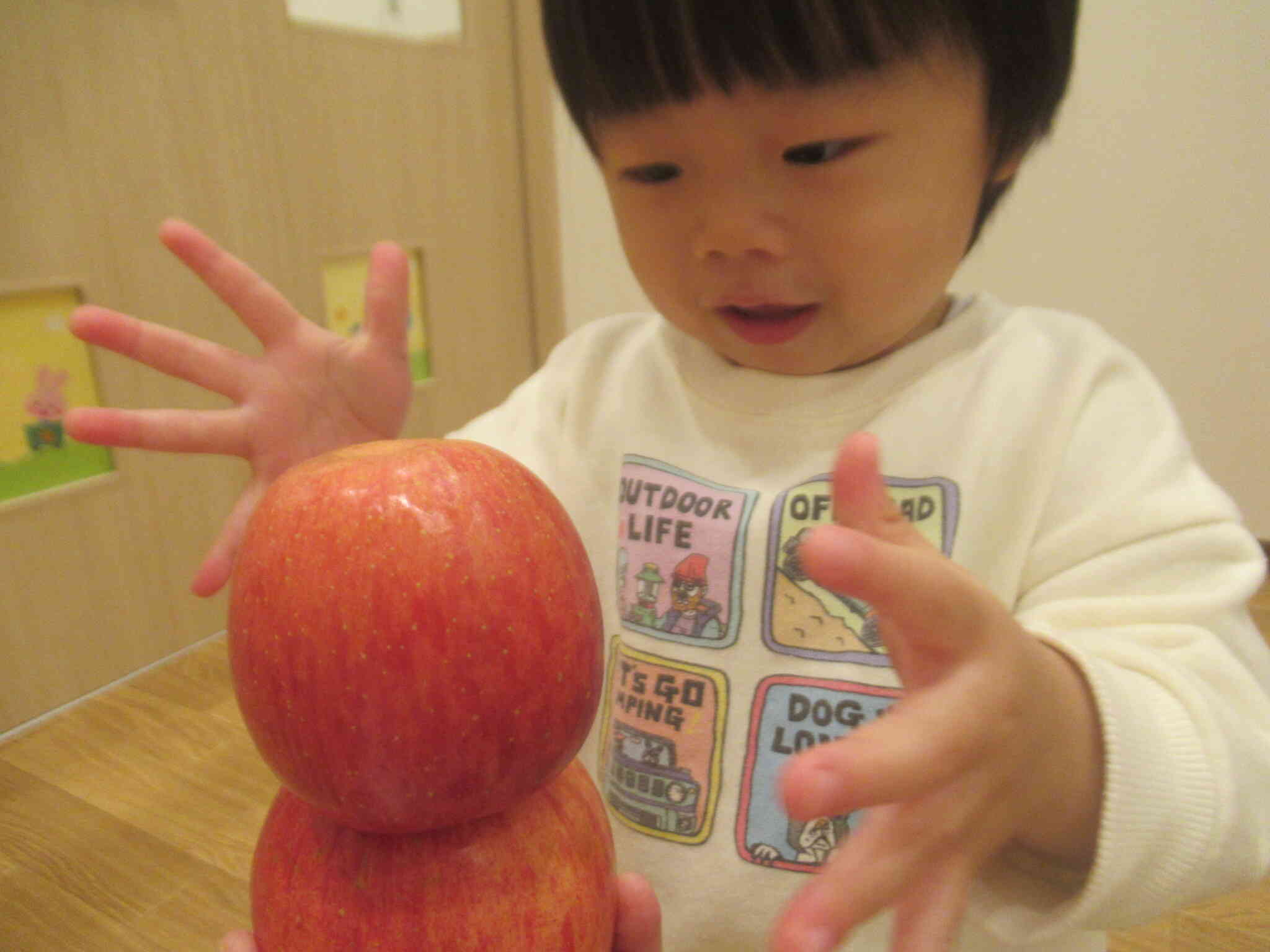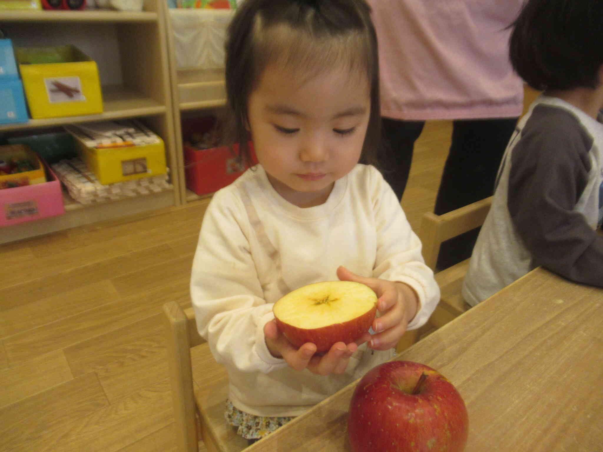 11月食育「りんごをさわろう、食べてみよう(きりん組)」