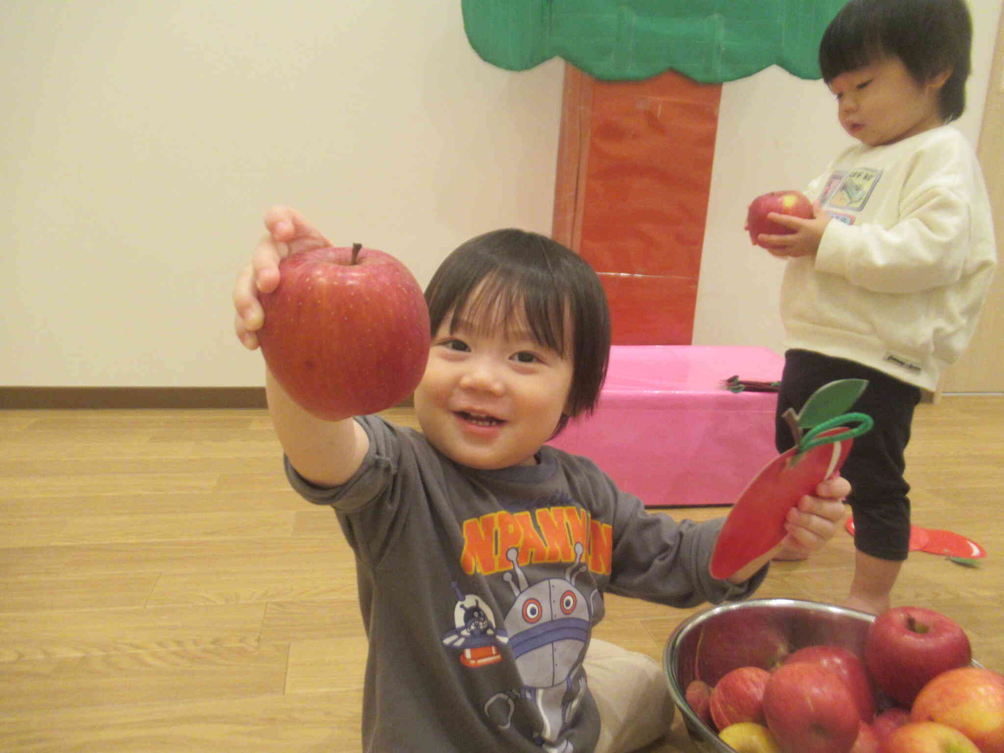 ぱんだ組さんも大きなりんごをもって楽しそうでした