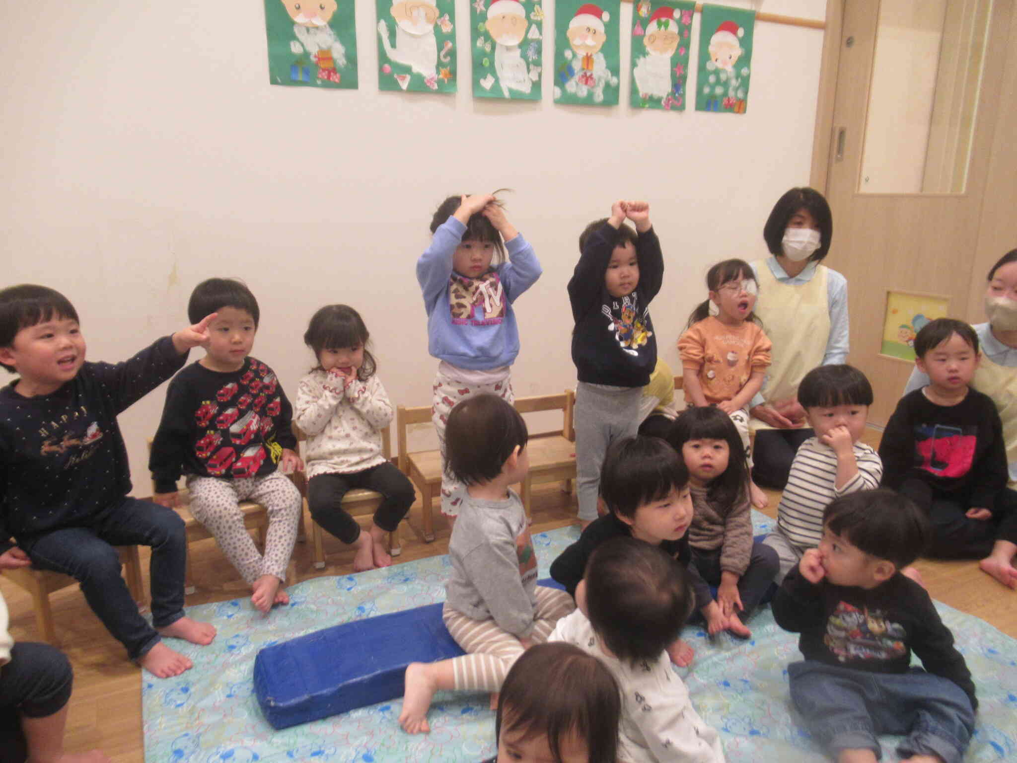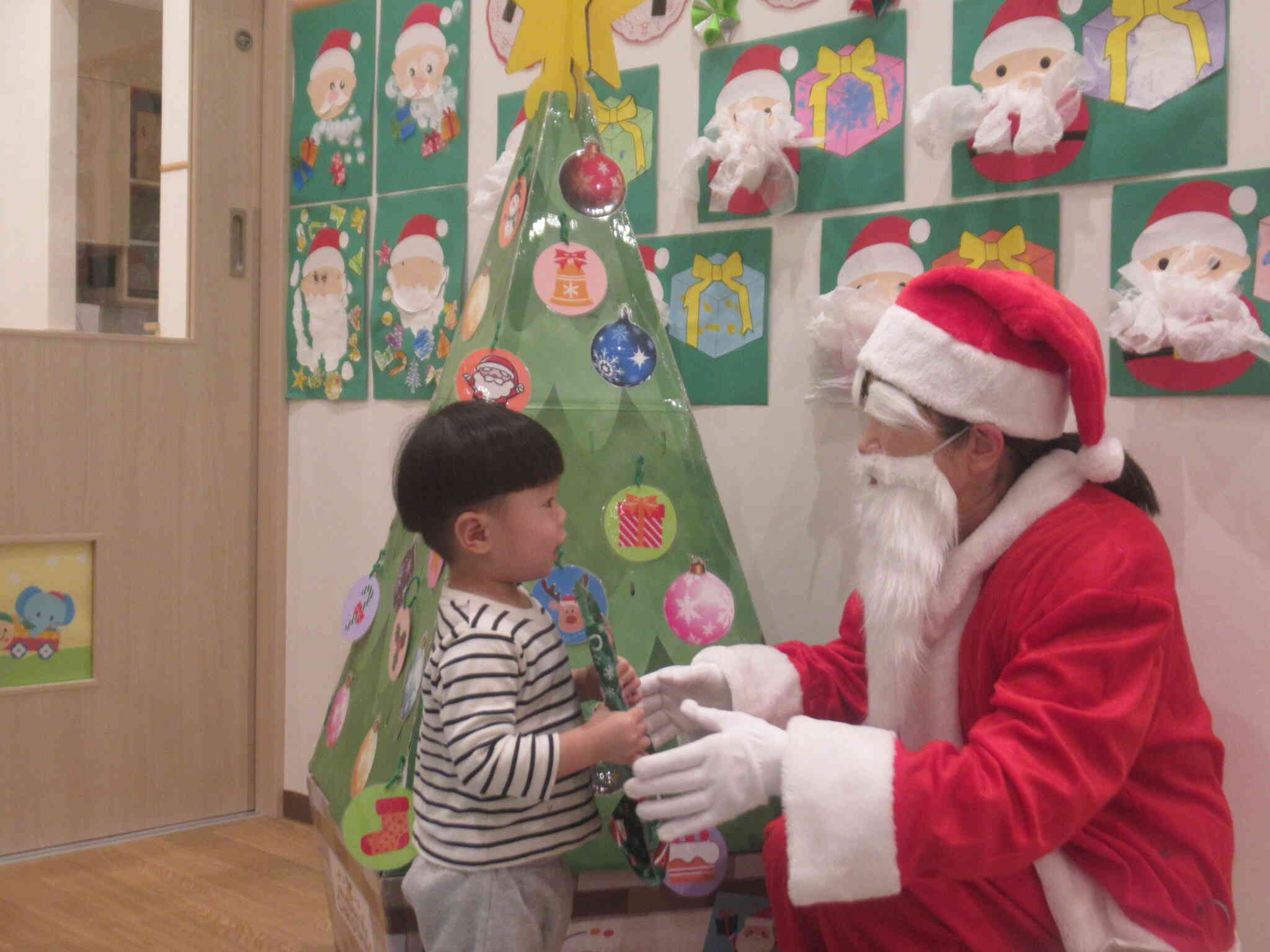 今日はクリスマス☆今年もサンタさんがみんなンプレゼントを持って保育園に来てくれました。