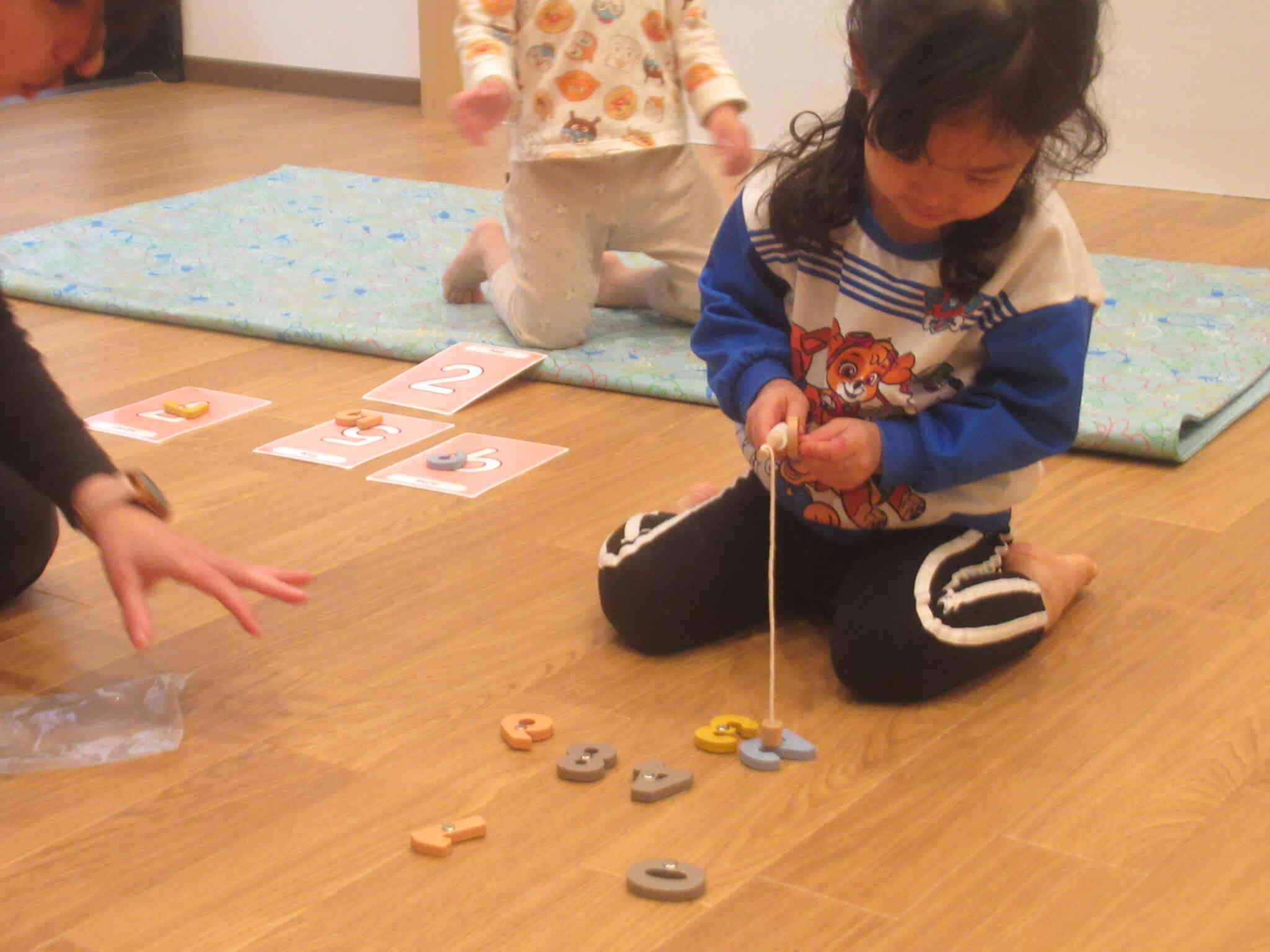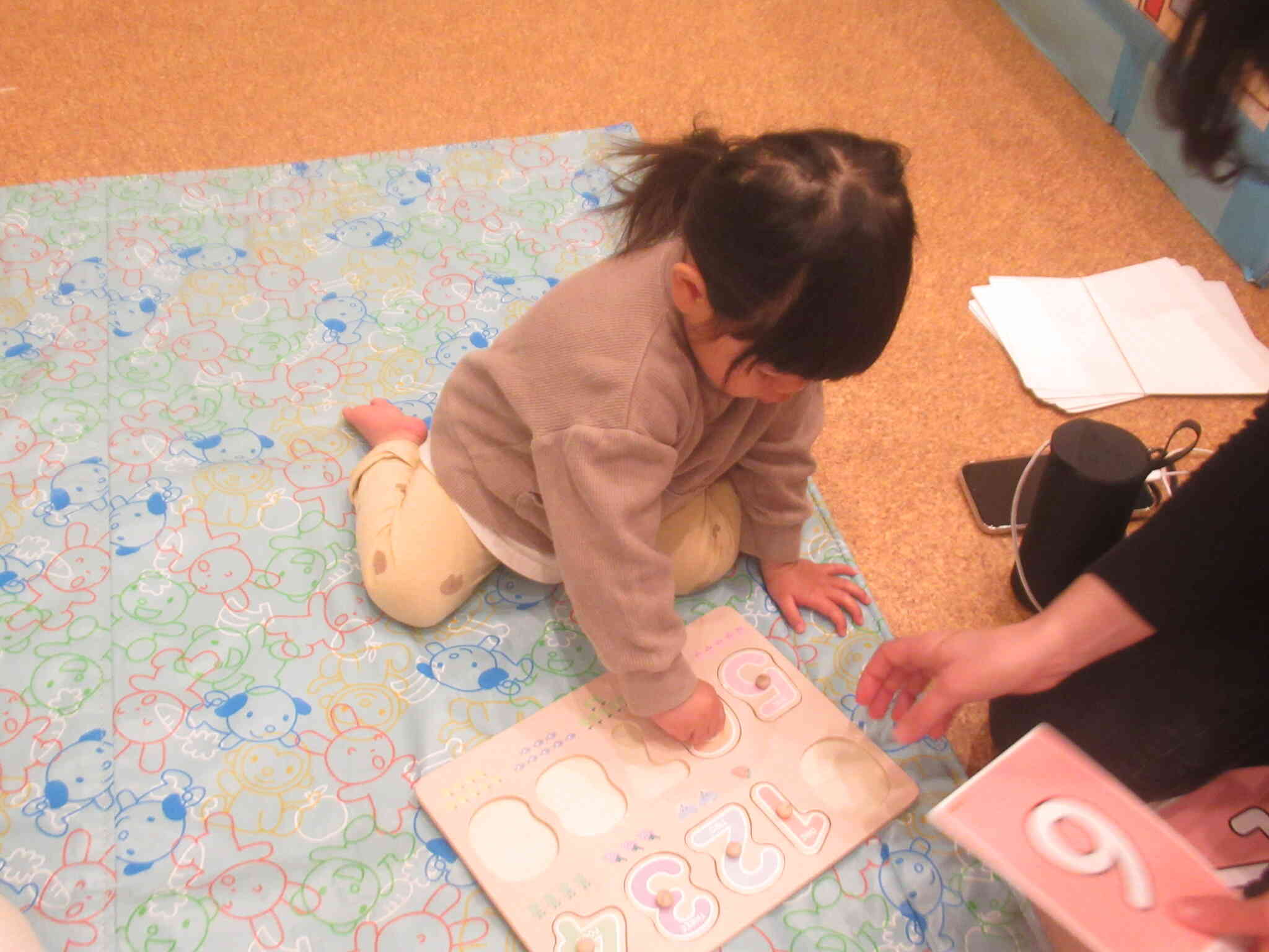 きりん組さんはカードを使った的あてのほかにパズルにも取り組みました。