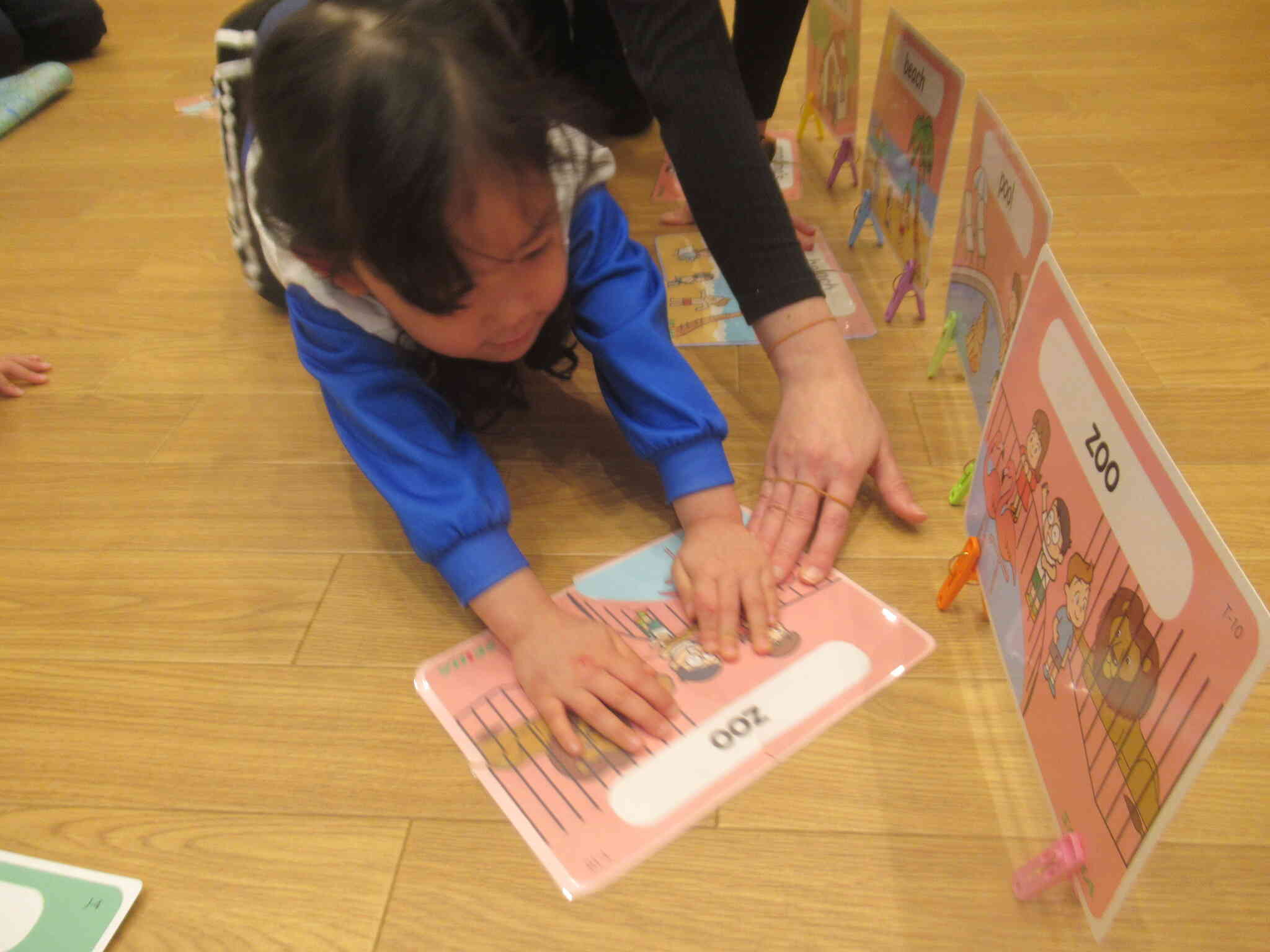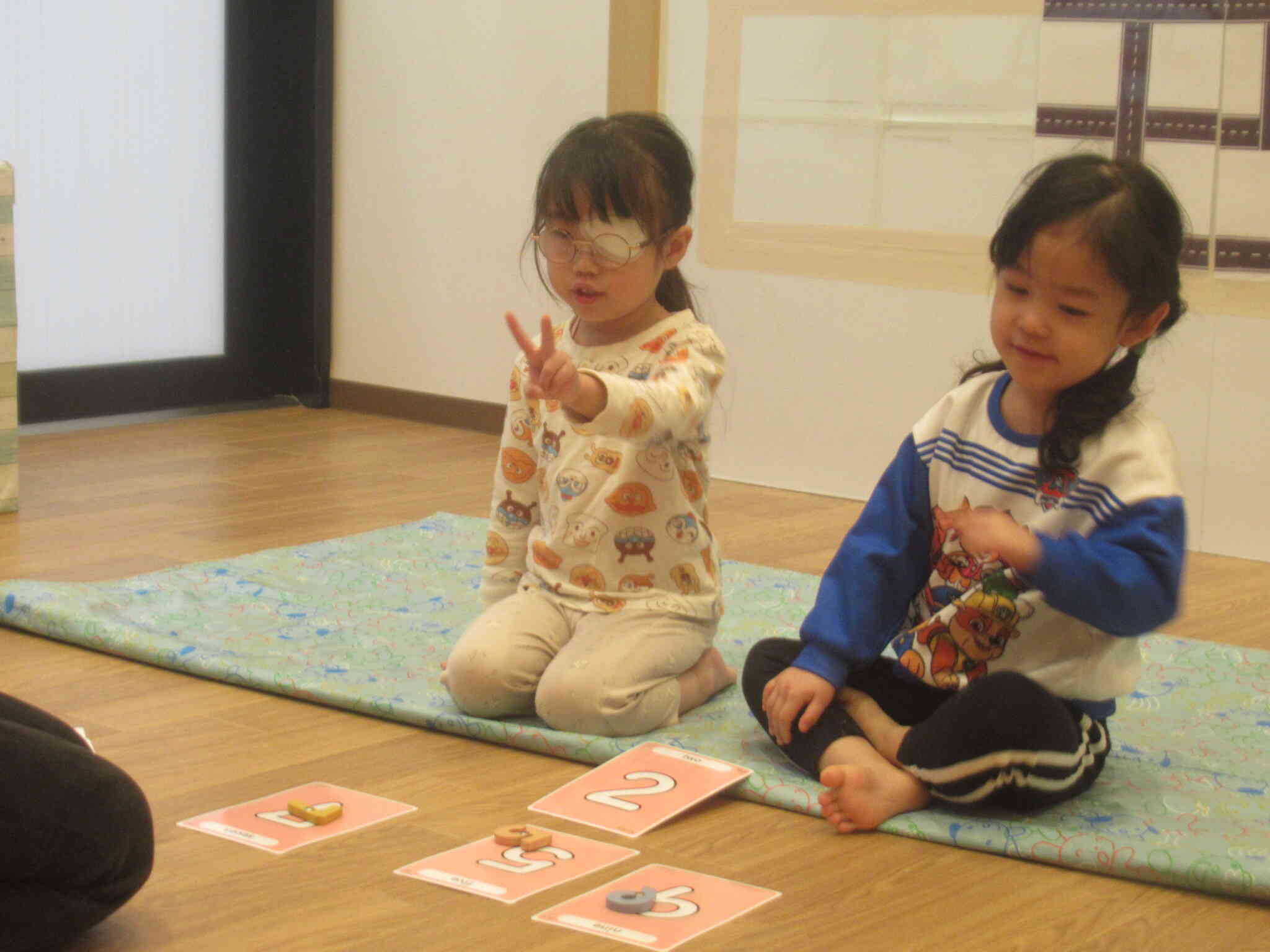 ぱんだ組・こあら組さんのクラスではカードを使って的あてをしたり、動物の絵本を読んだりしました。