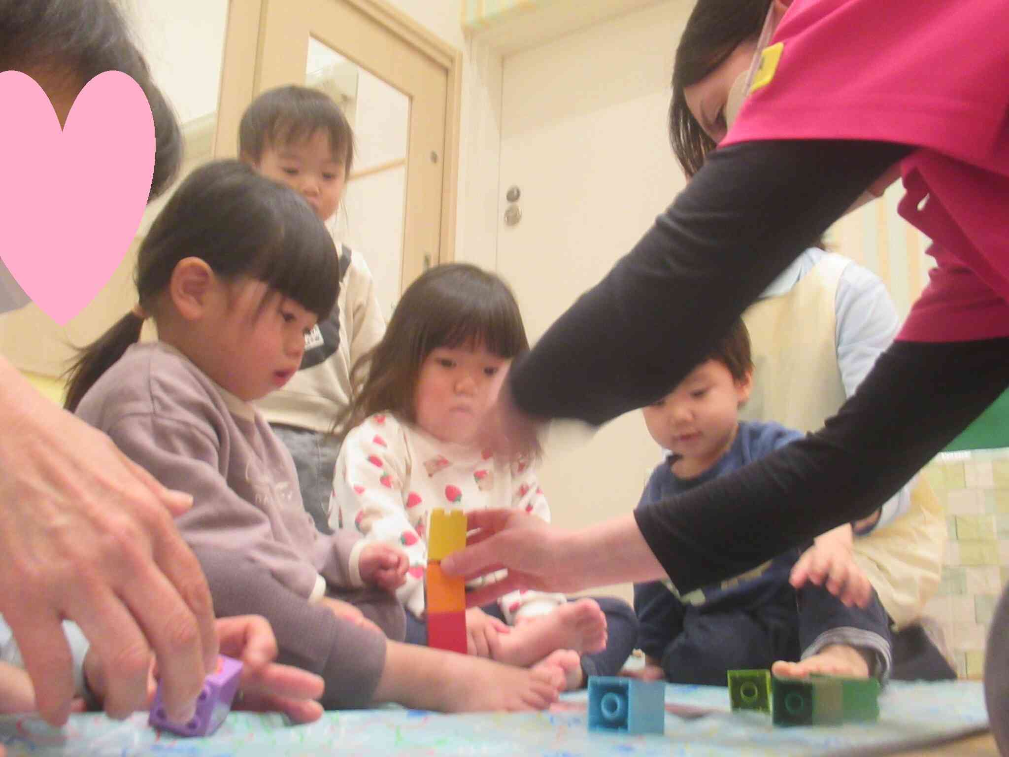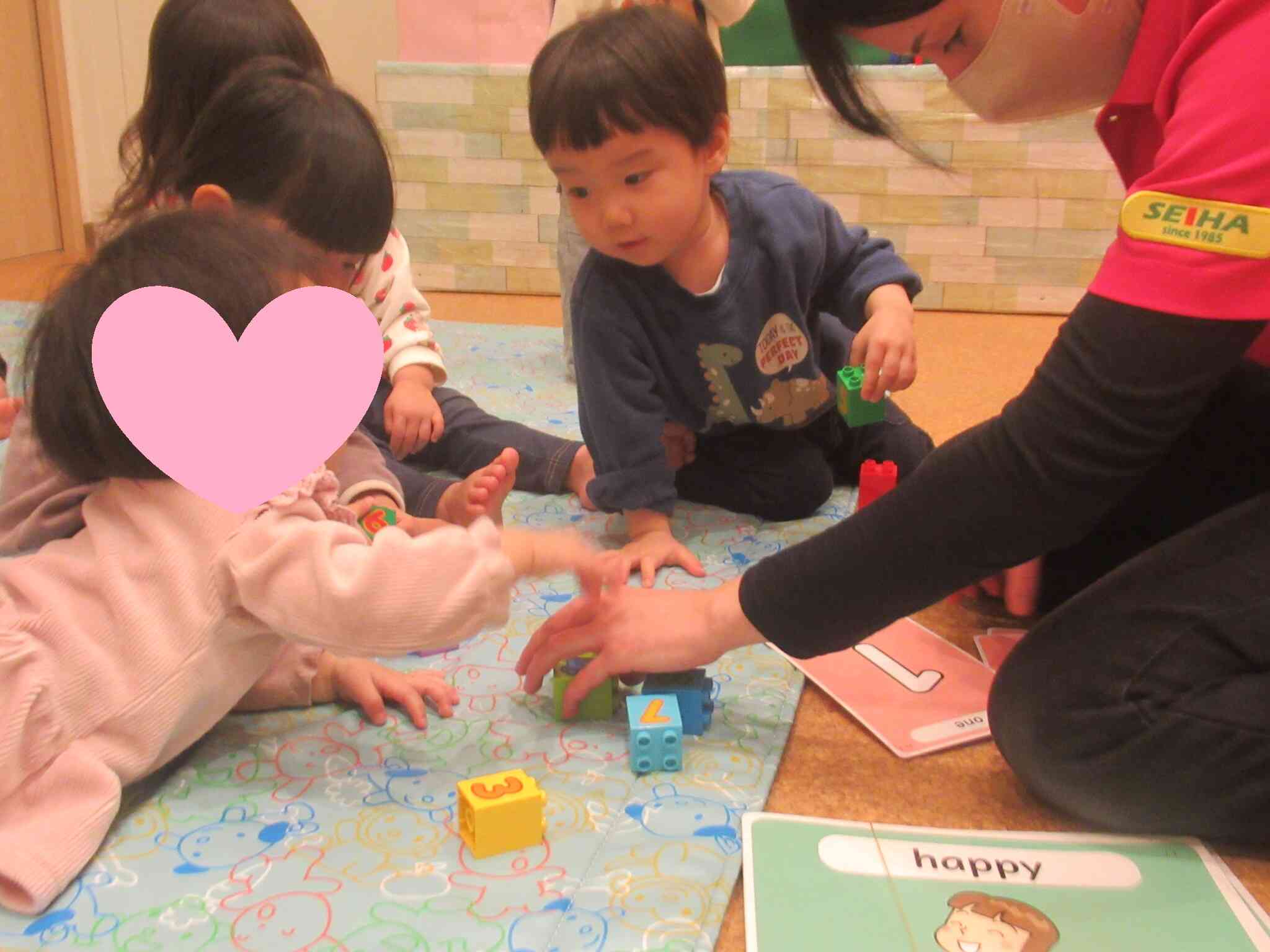 こあら組・ぱんだ組のえいごの様子です。今月は、数字カードとおなじブロックをつくってあそびました。