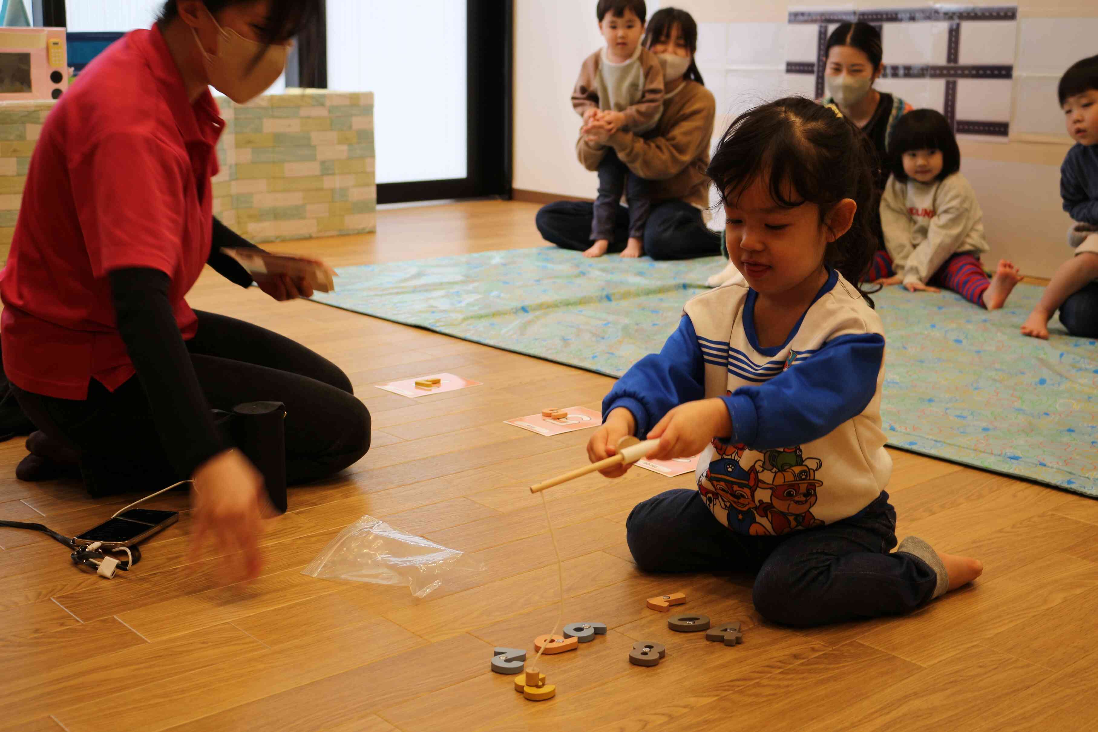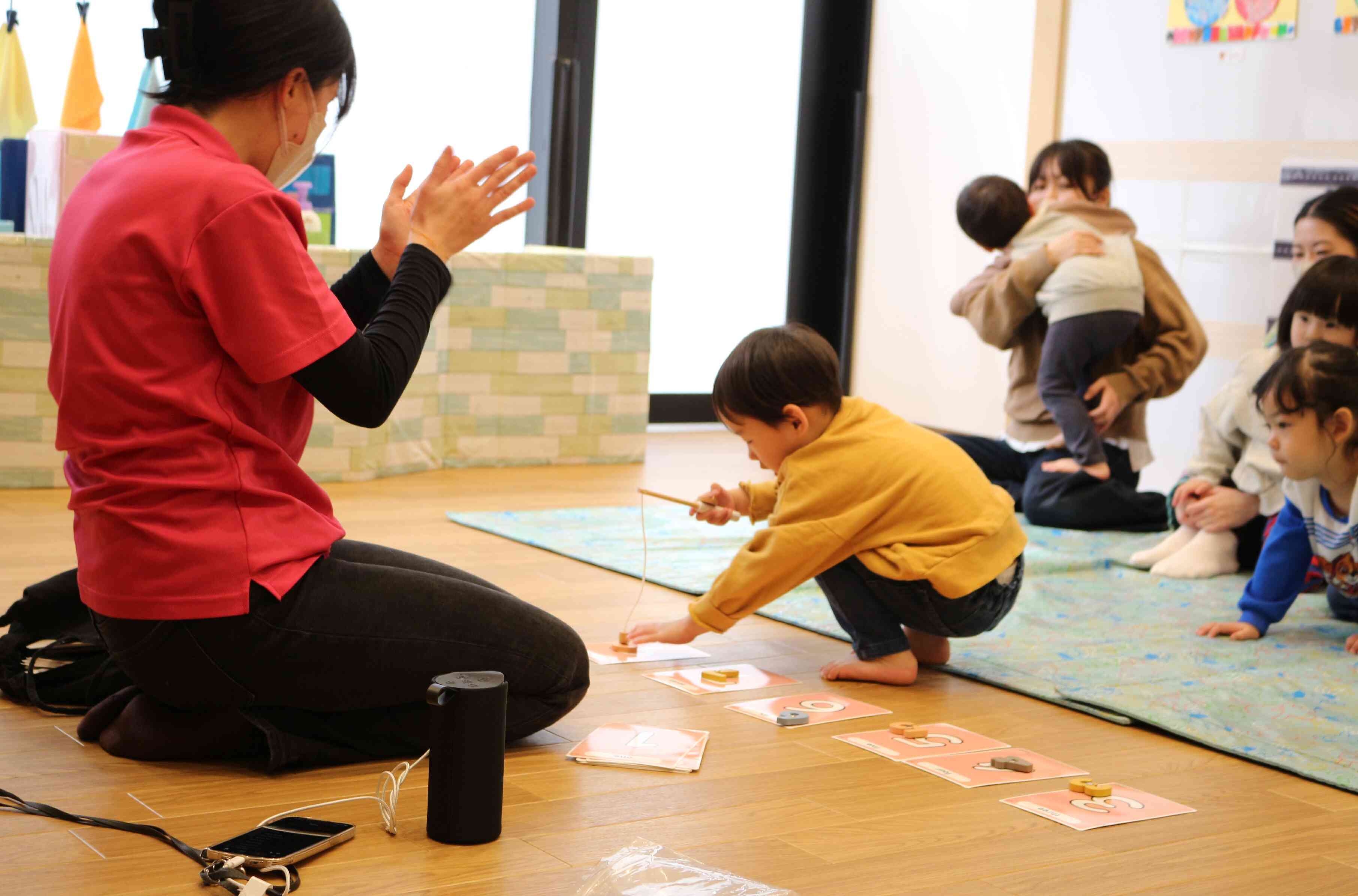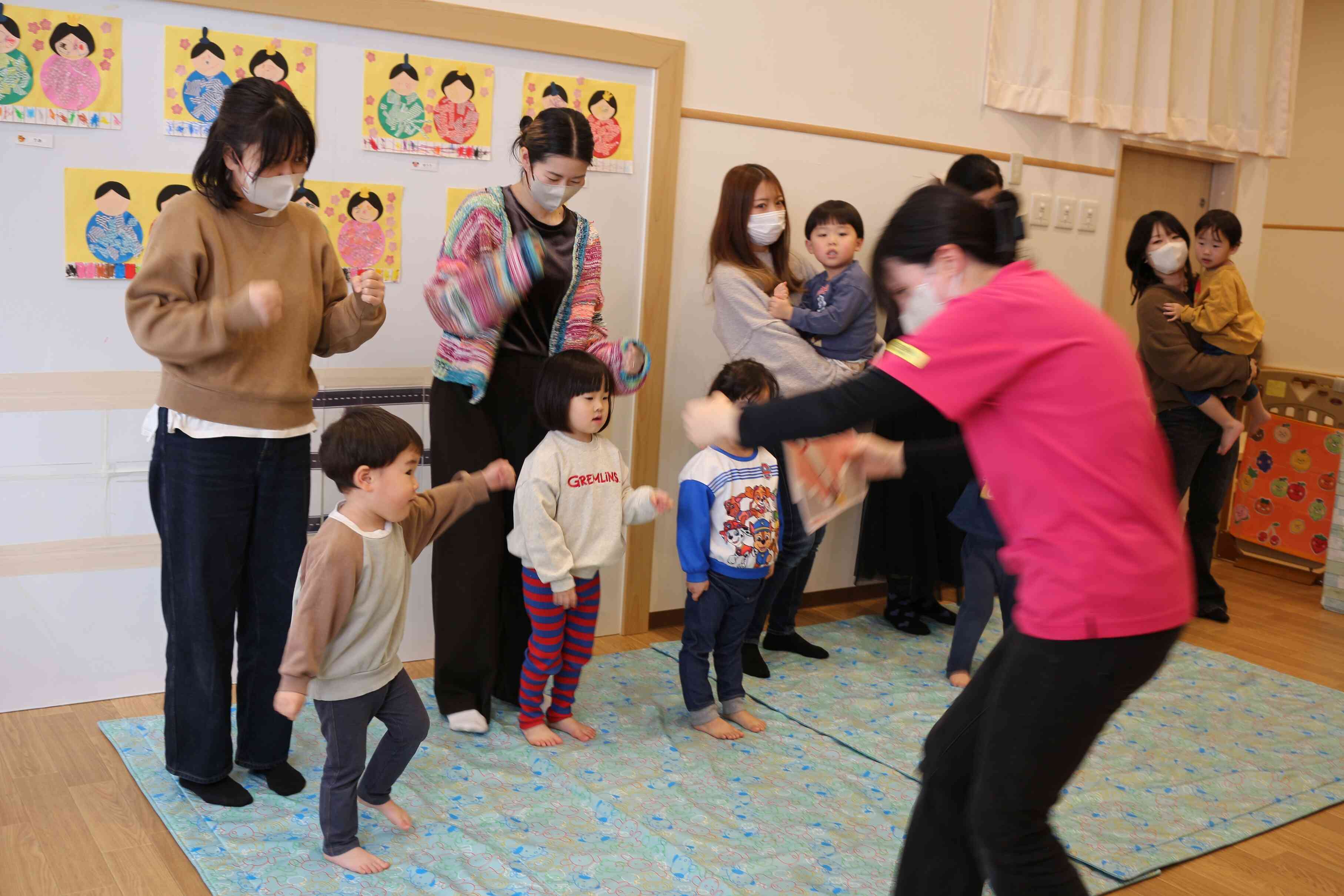 きりん組さんは保育参加に来たくださったお母さんと一緒にレッスンを受けました。