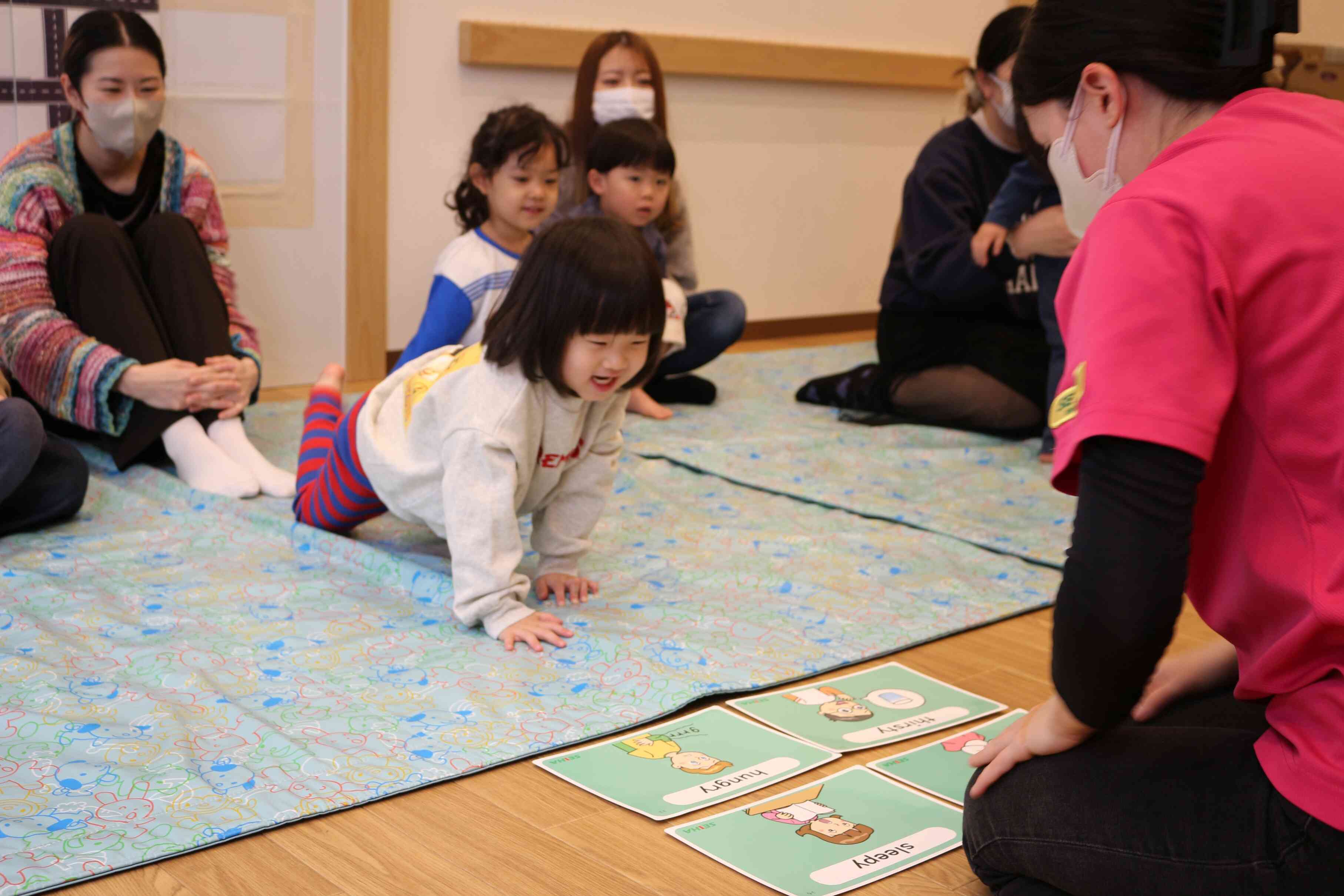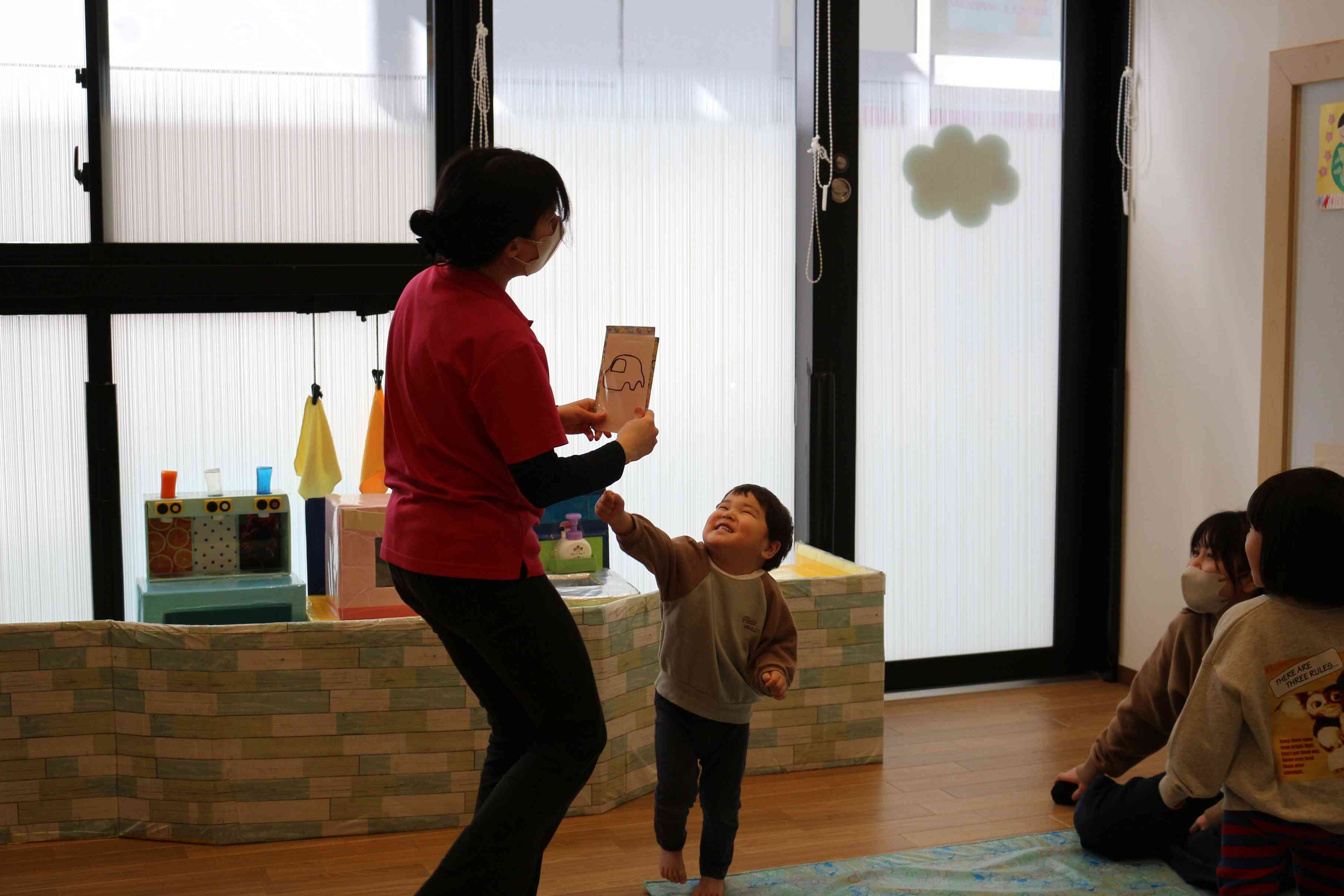 いつも以上に張り切って体操をしたり、先生に続いて単語を言ったりしていました。