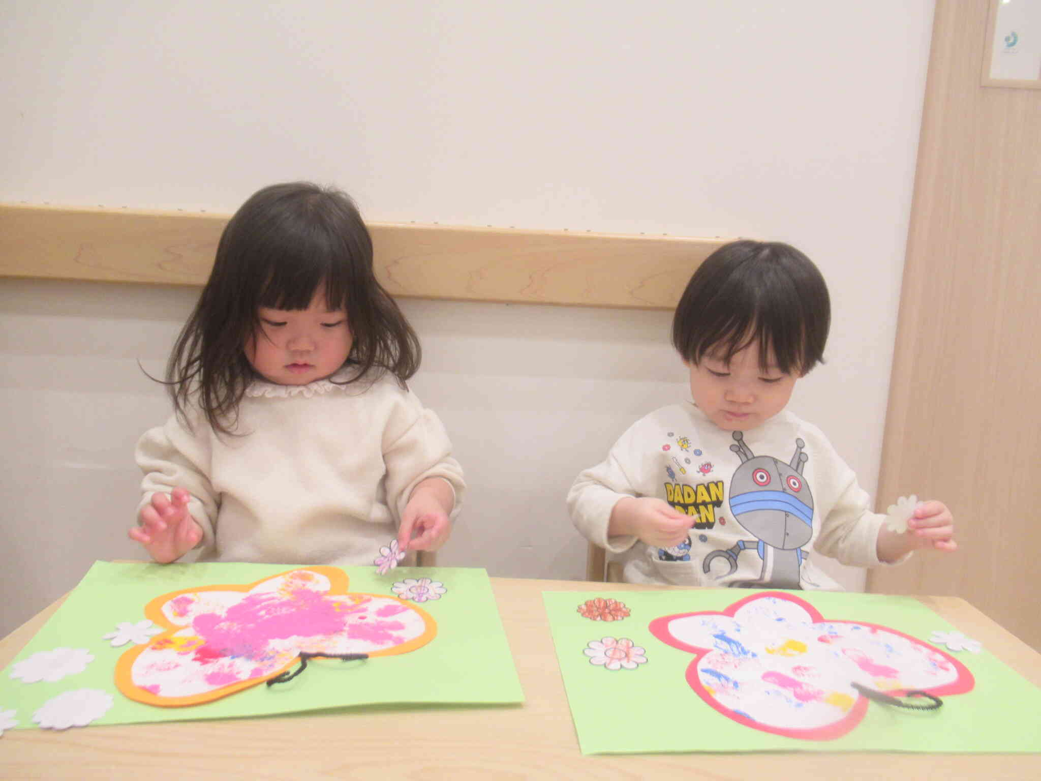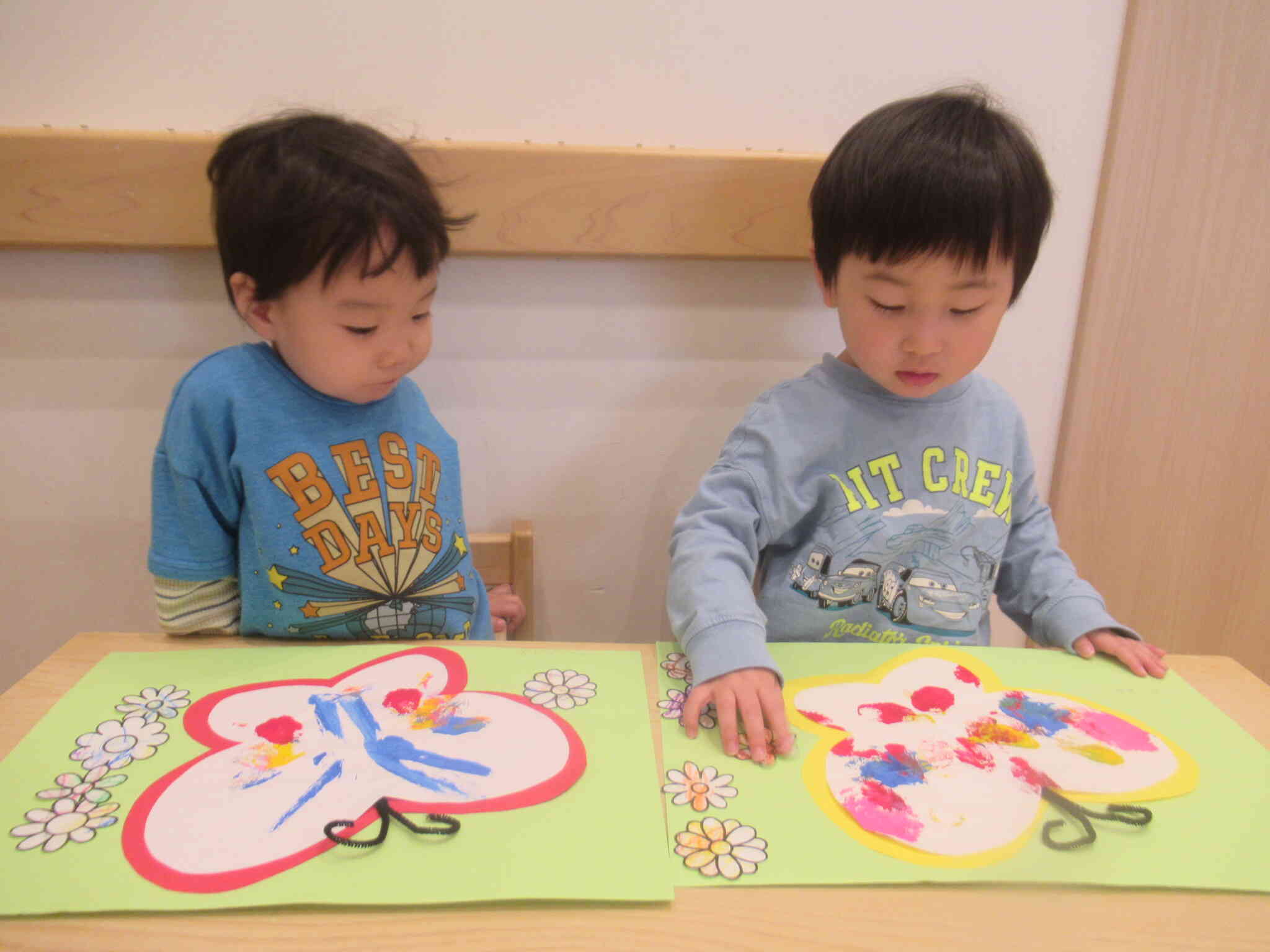 こあら組さんはデカルコマニーでちょうちょを作りました。