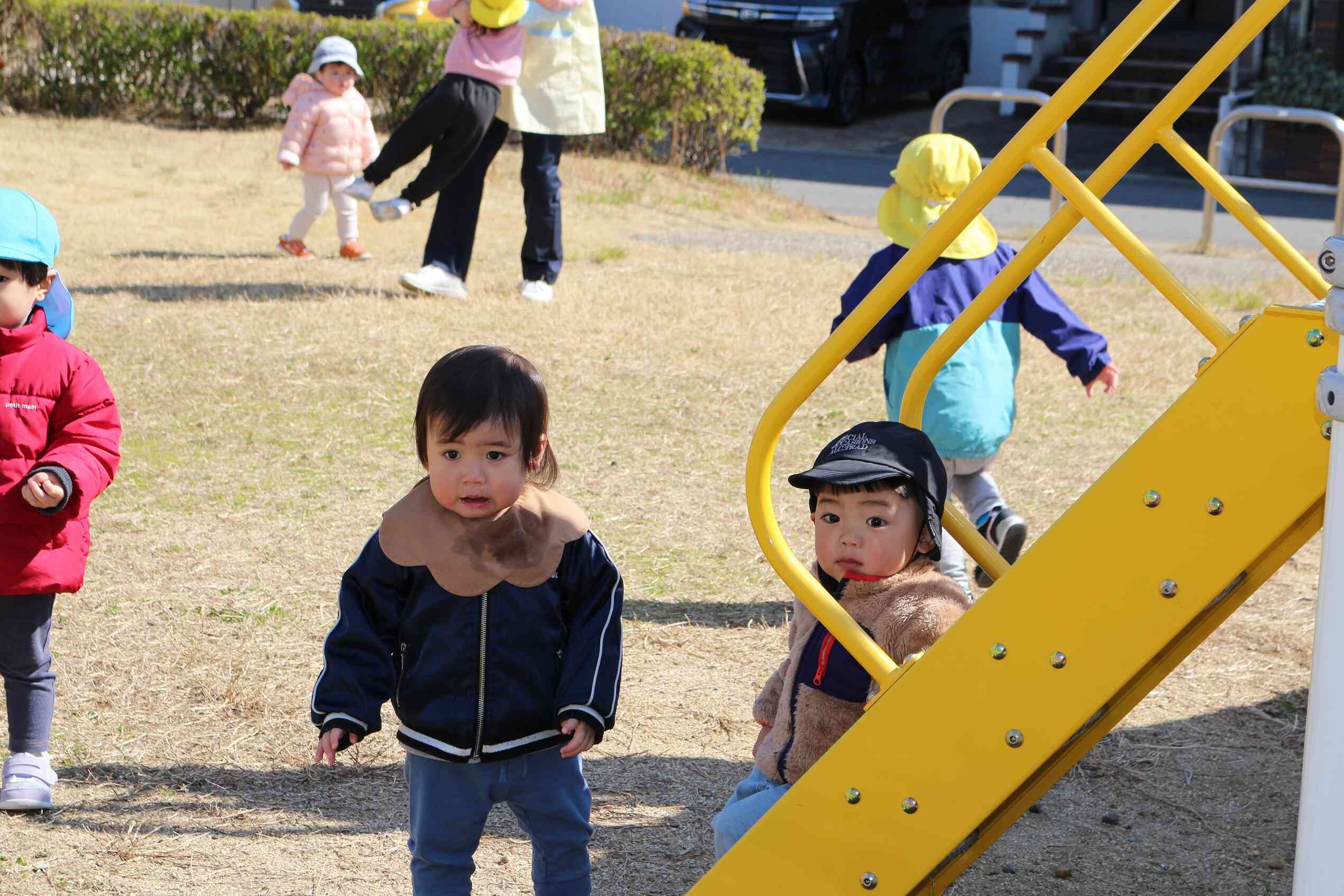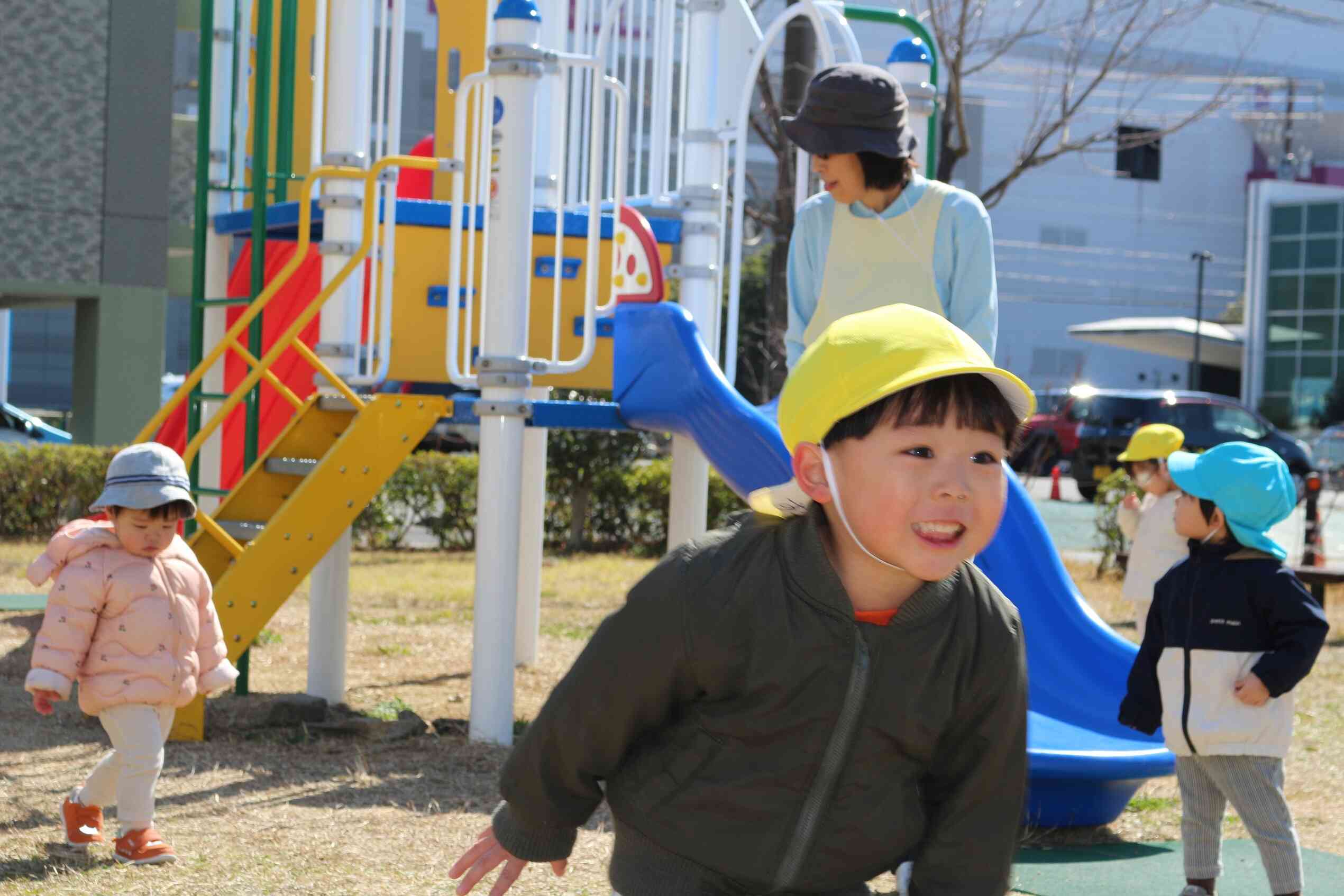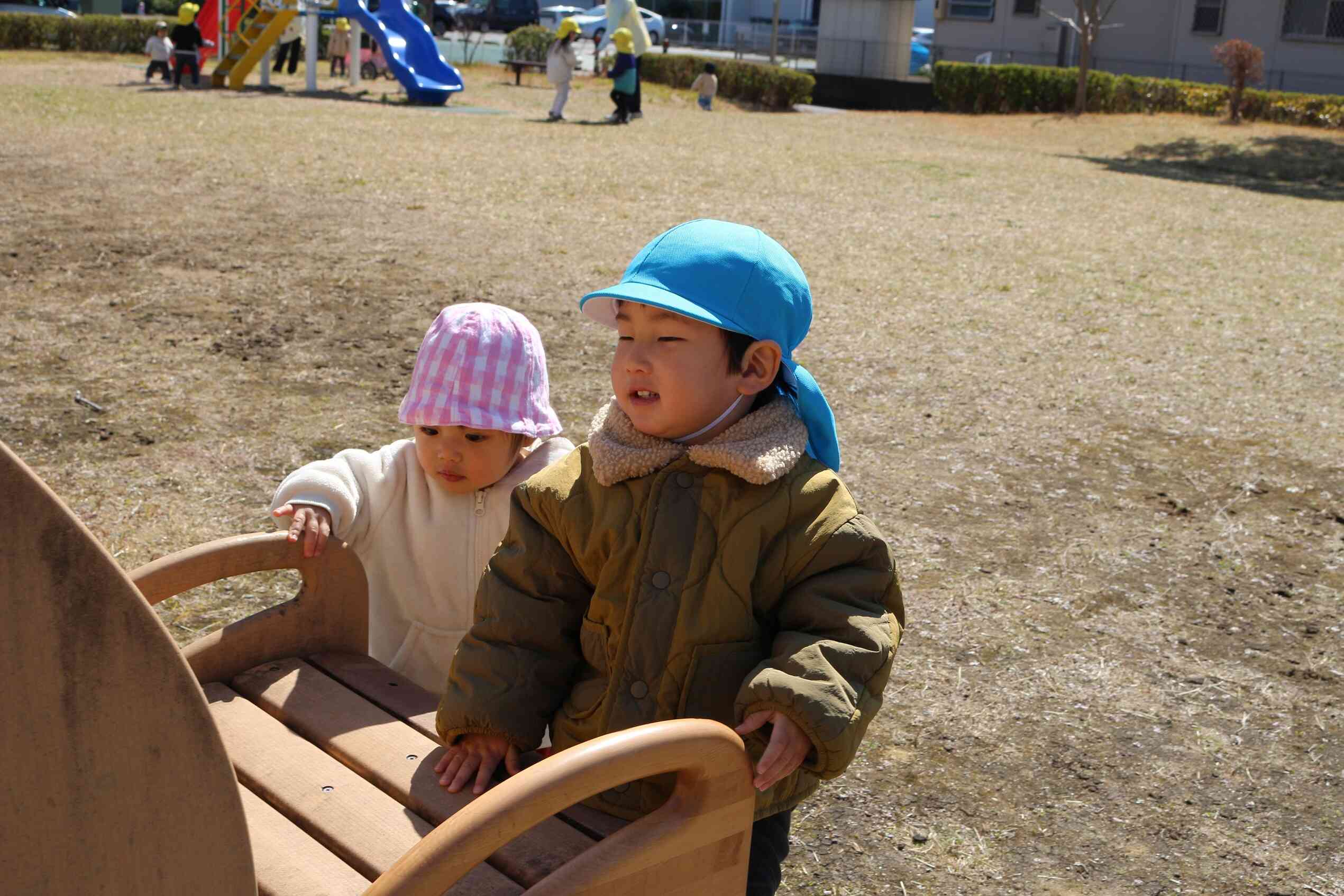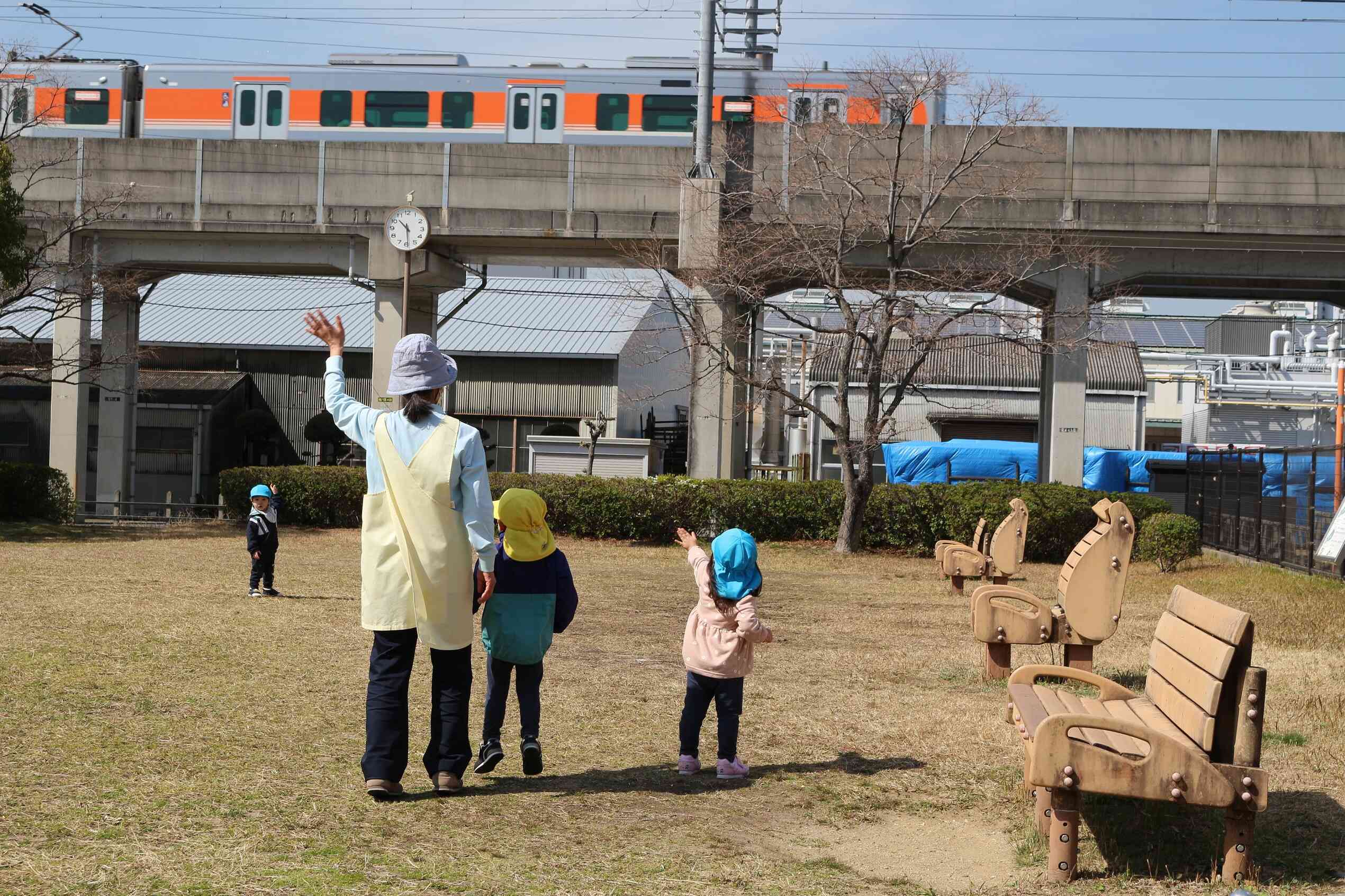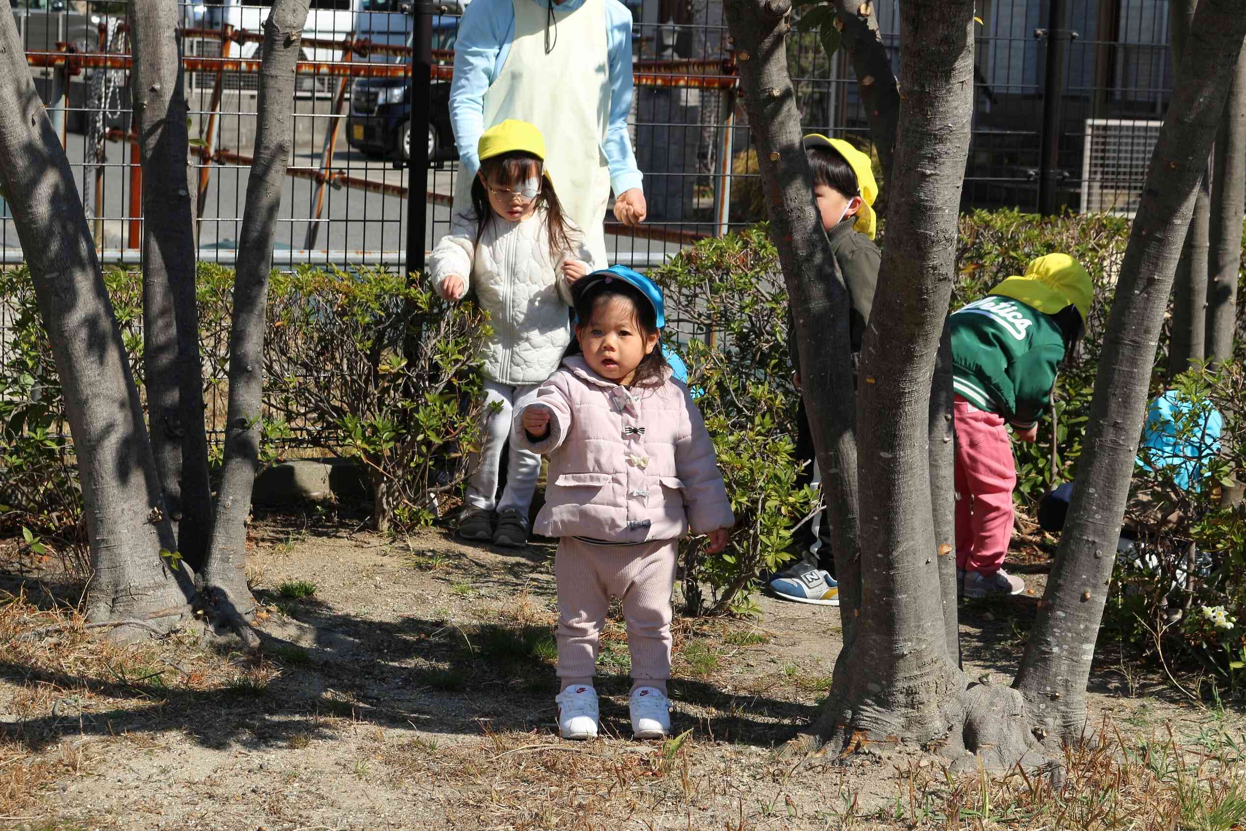 園から道を隔てた場所にある公園まできりん組さんはお友だちや先生としっかり手をつなぎ歩くことができました。