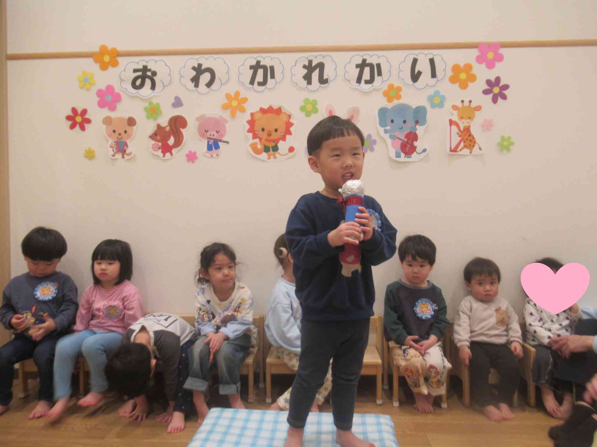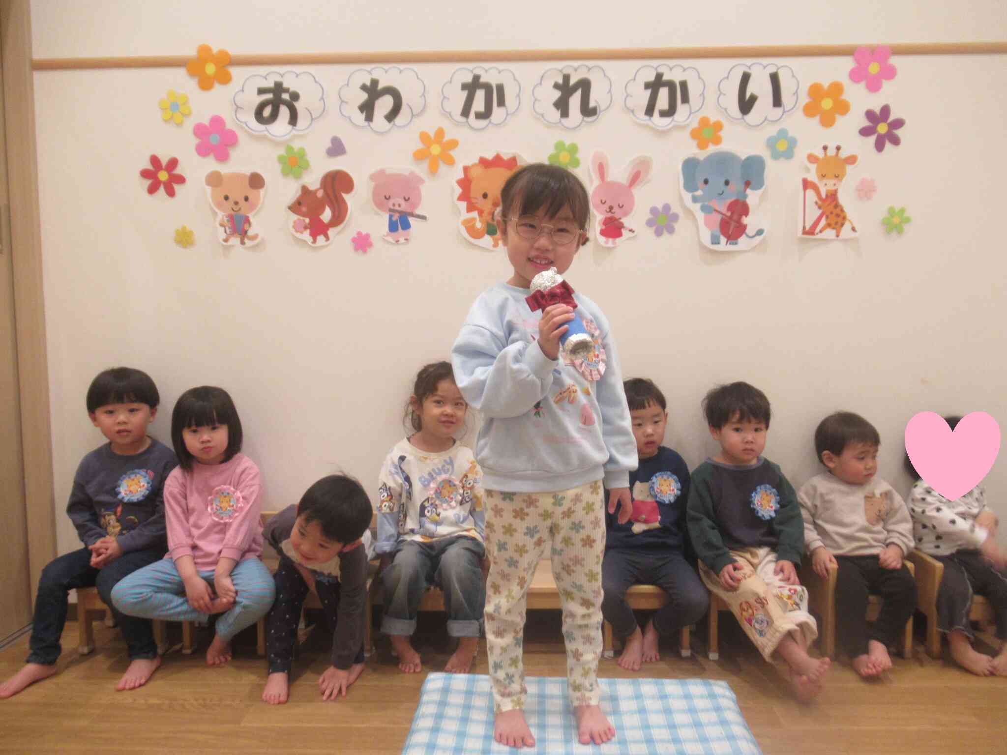 たくさんのことができるようになったきりん組のお友だち。入園当初ママと離れるのがさみしくて泣いていたぱんだ組のお友だち。