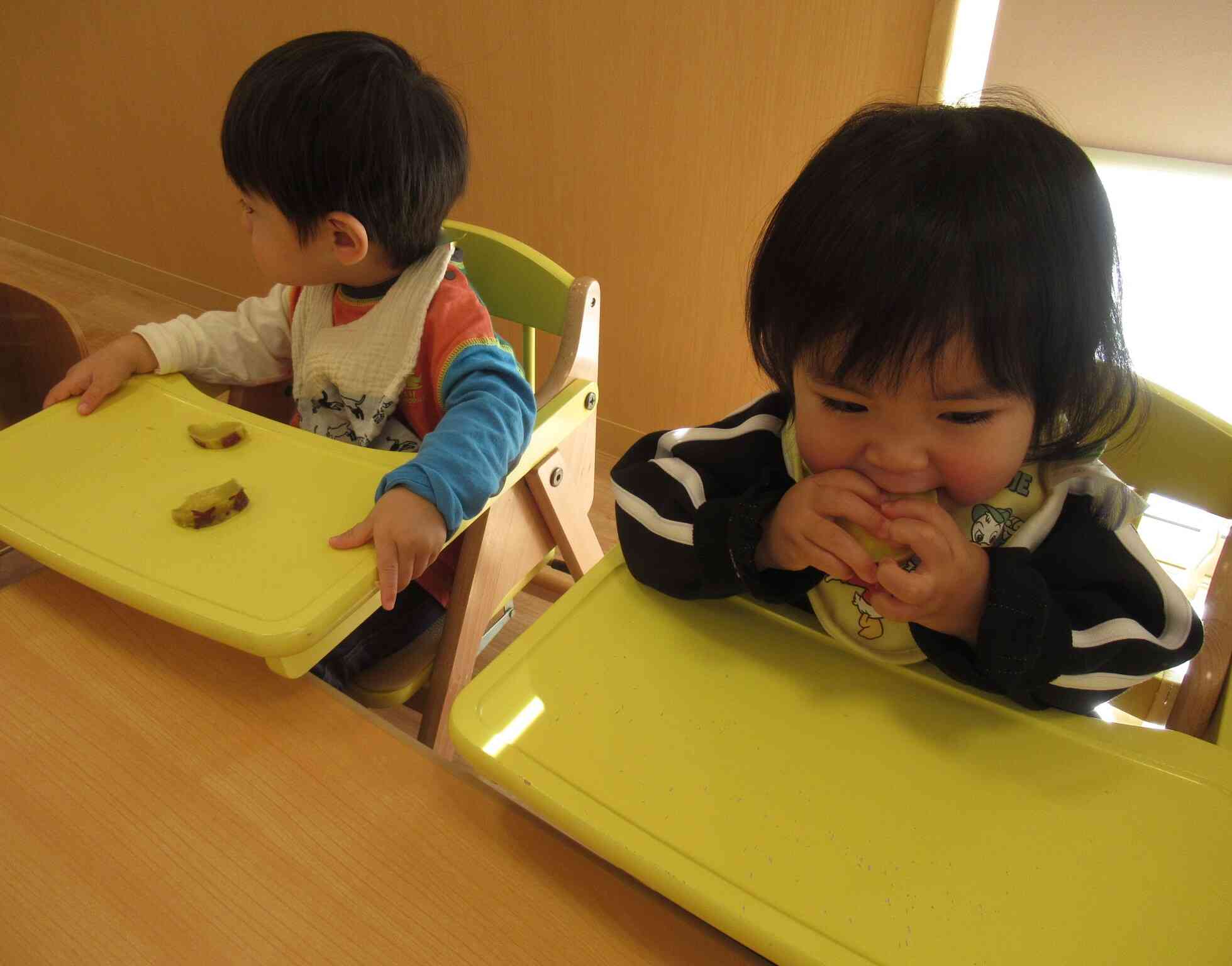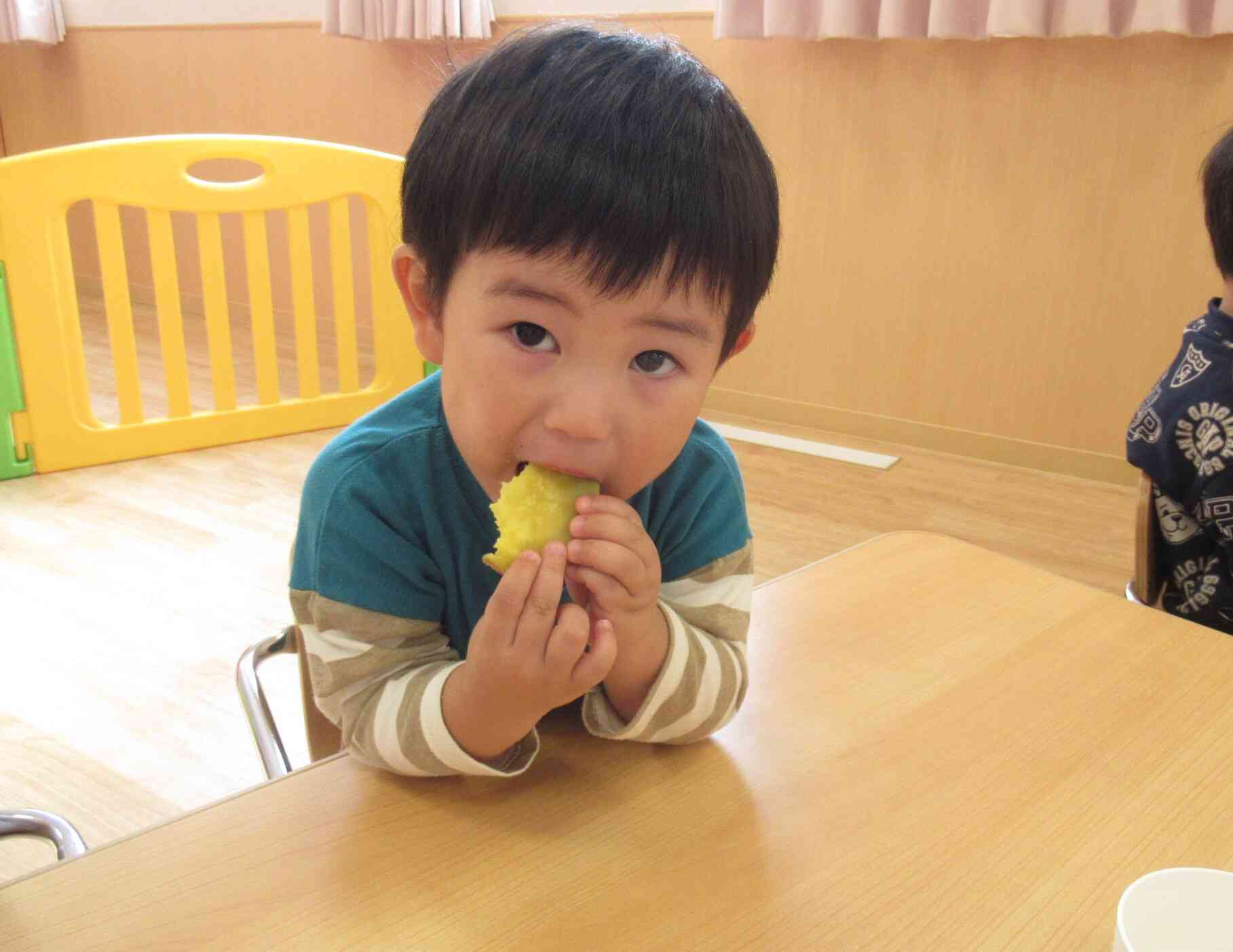 大きなお口で夢中でやきいもを食べる子どもたちを見て保育者もほっこりとした気持ちになりました。