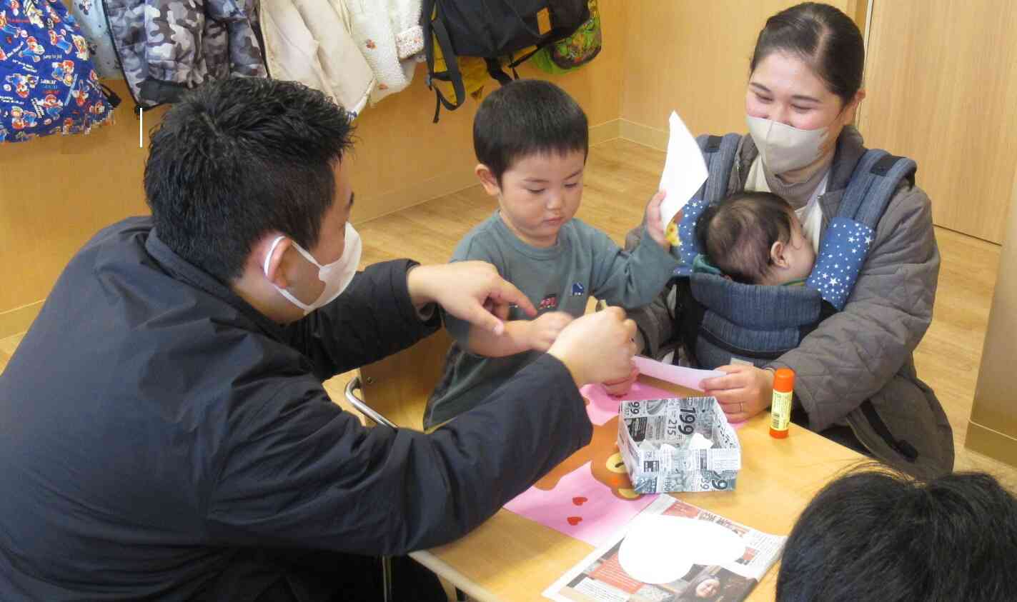 2月の制作で「バレンタイン」をお父さんお母さんと協力して作りました。
