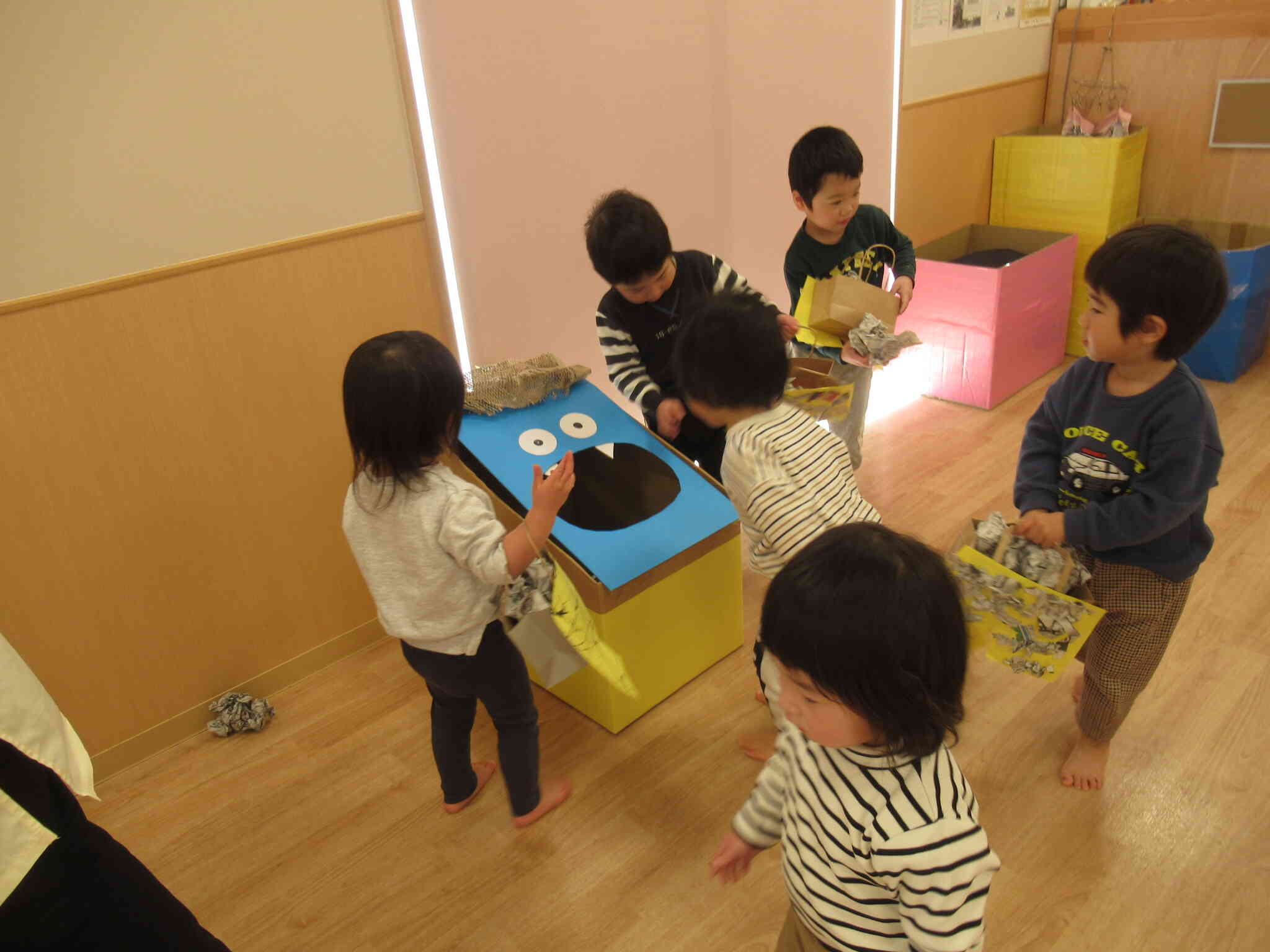 うさぎ組、あひる組のお友だちは上手に豆入れに豆をいれて、ひよこ組のお友だちも的あてを楽しみました!