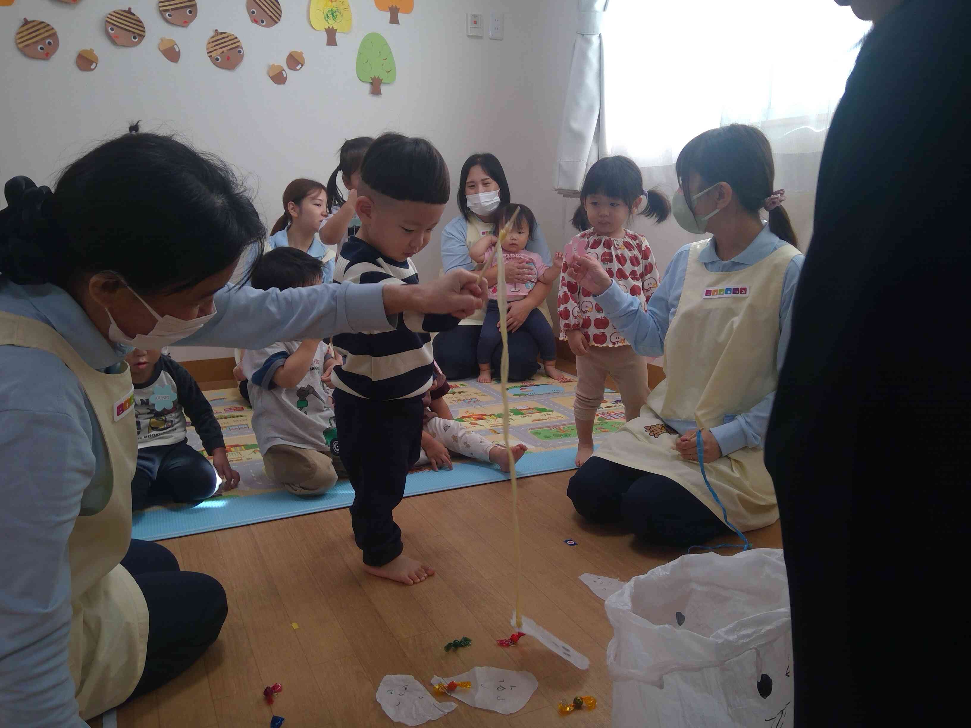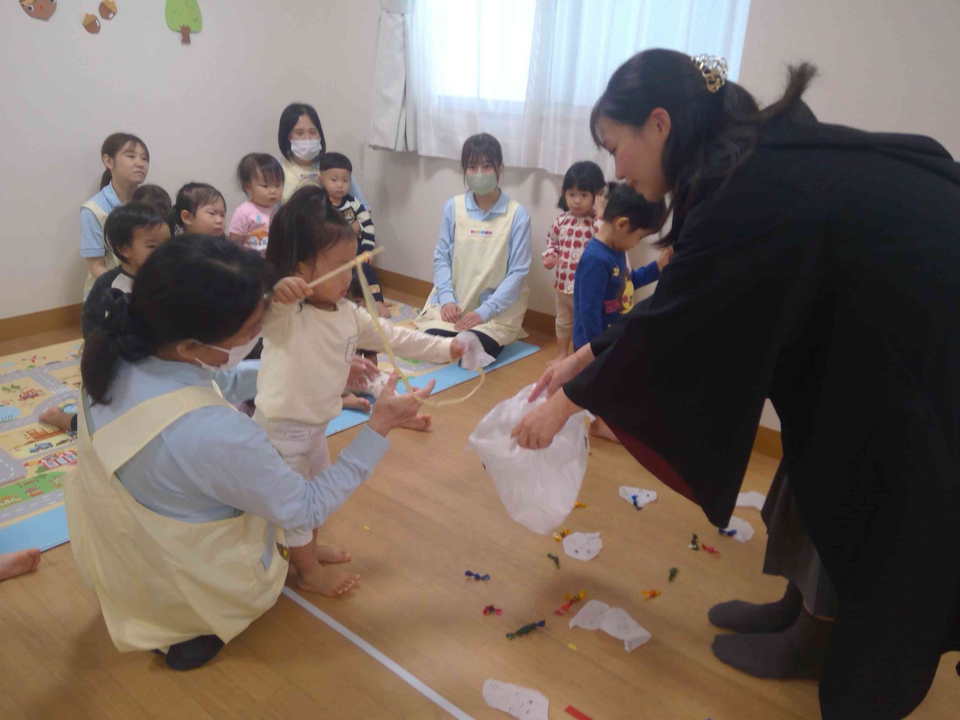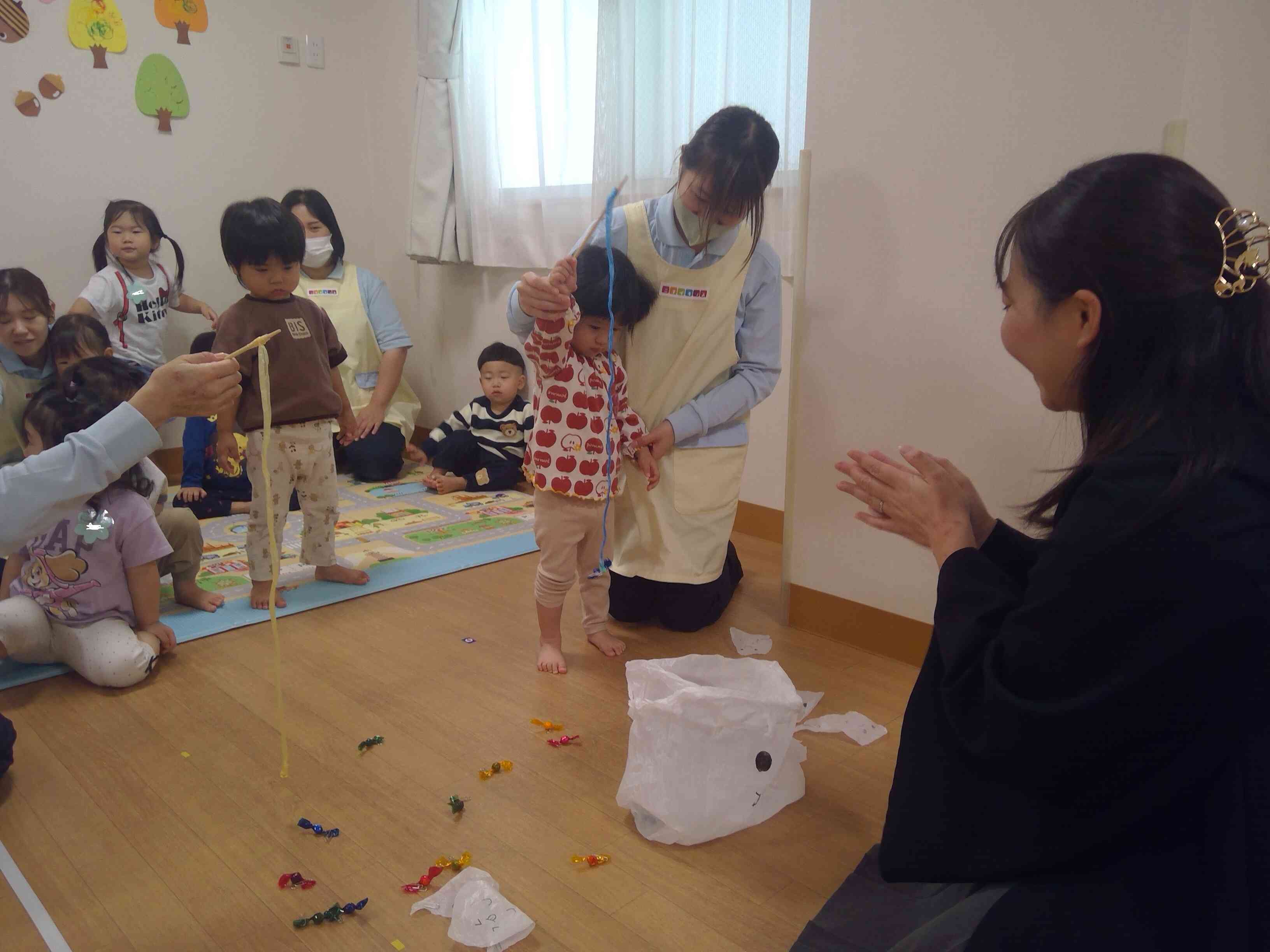 また、今回はレッスンの途中、ハロウィーンにちなんで、お化けやキャンディー釣りゲームをし、パーティーのように楽しそうに参加していた子どもたちです☆