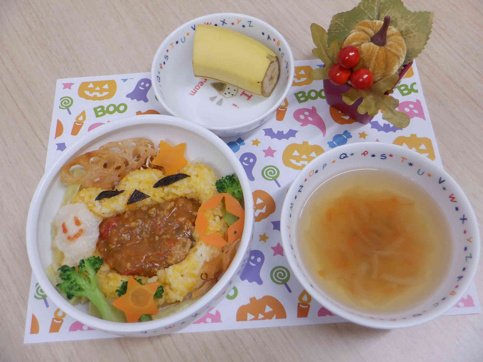 10月31日のハロウィンでは、給食とおやつも特別なメニューになっていました。