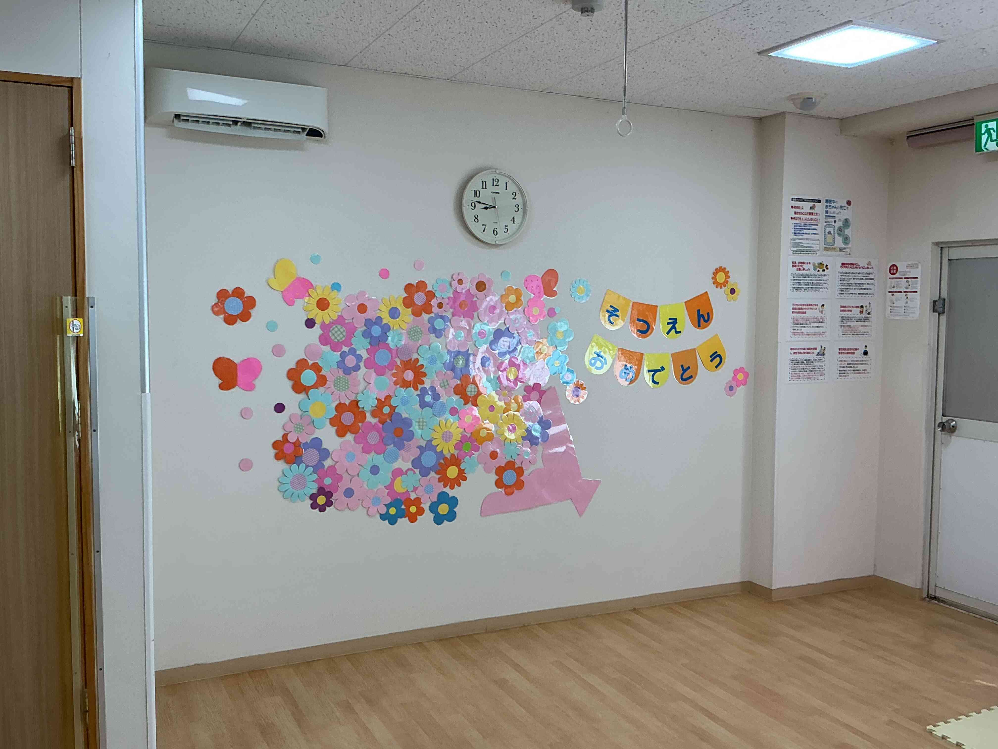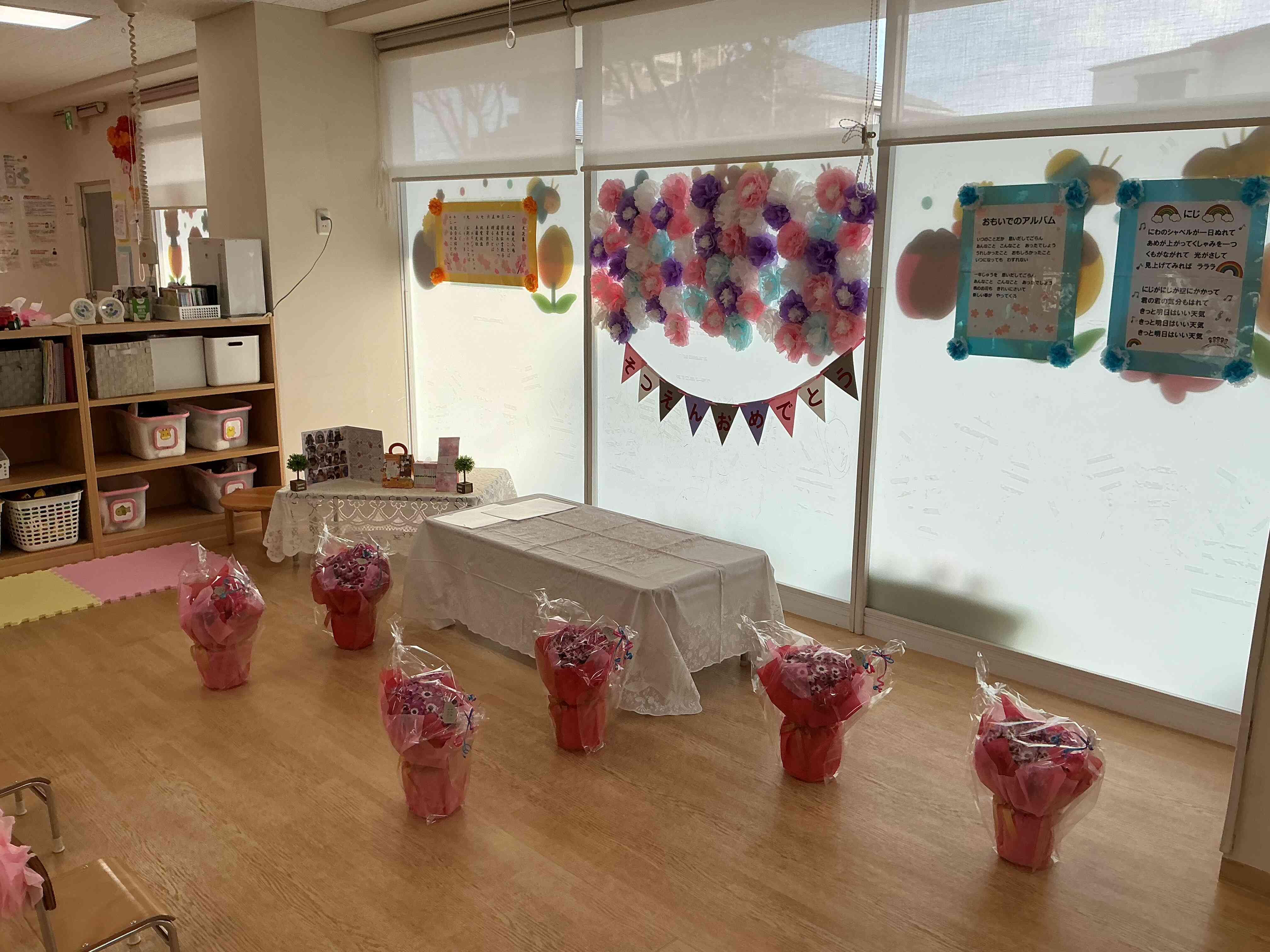 いつも過ごしている保育室が可愛くなっていて「かわいい!」「これで写真撮る!」と喜んでくれていました。