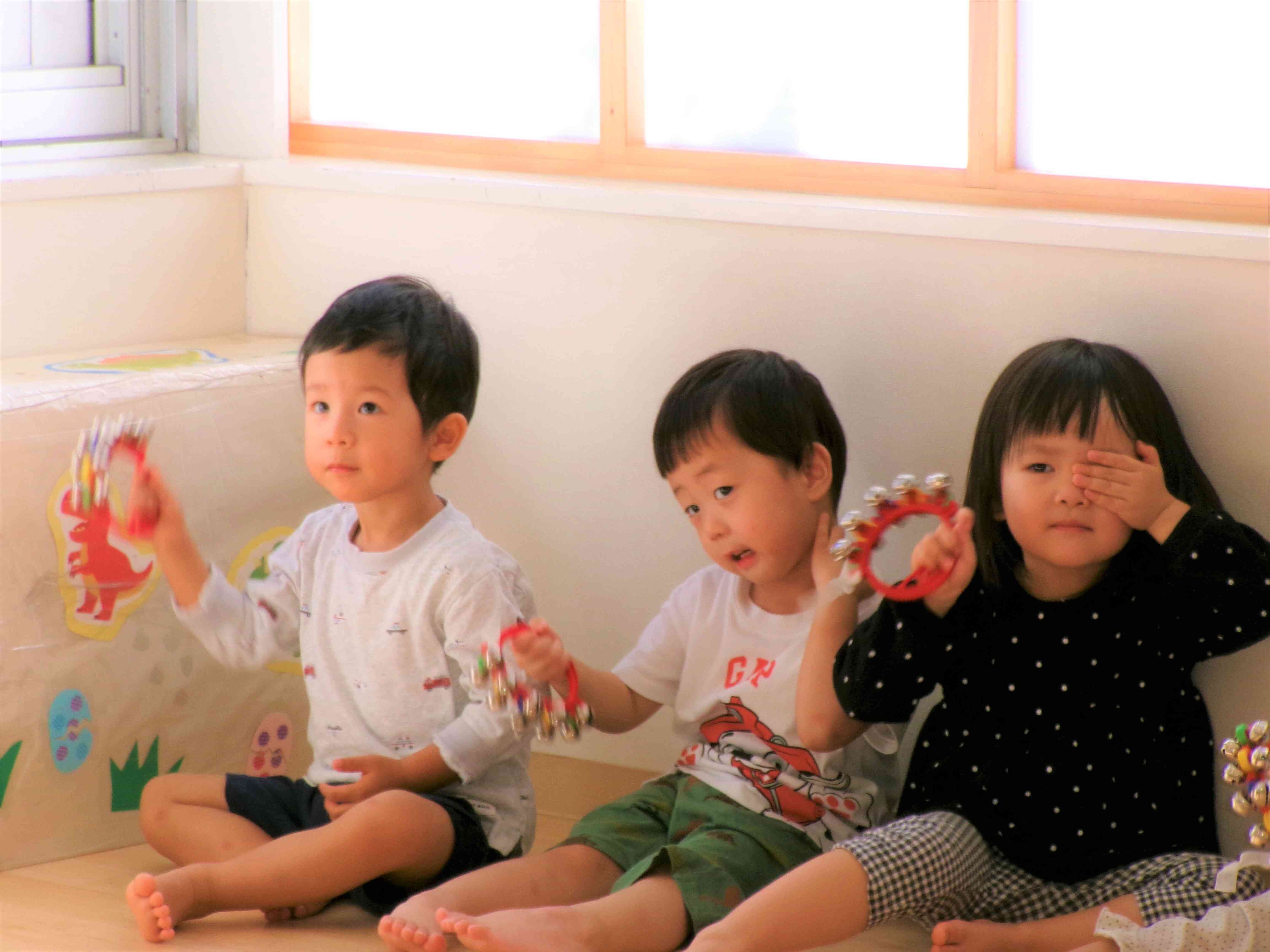 活動の時間で全クラス一緒に鈴やタンバリンを楽しみました。
