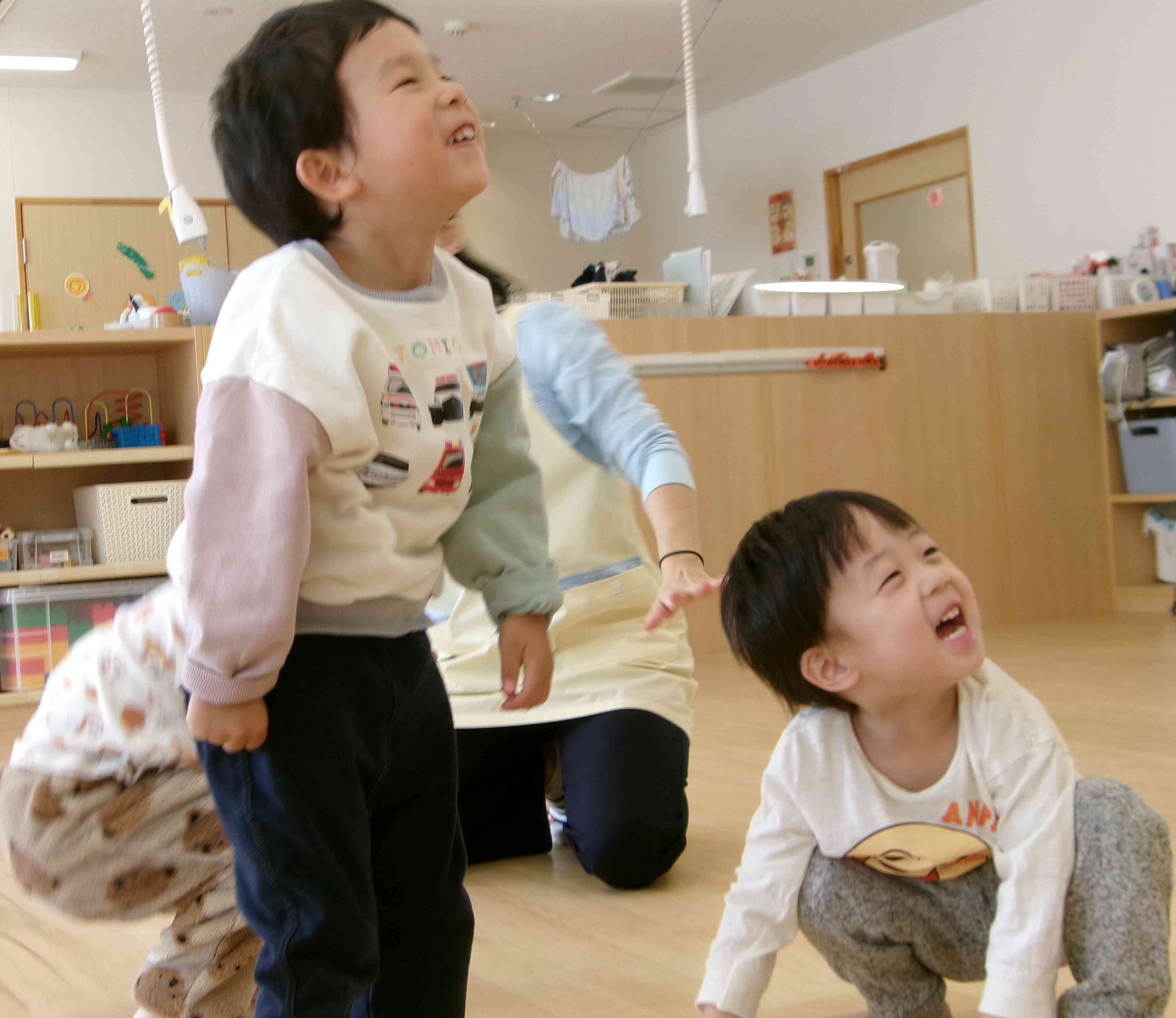うさぎ組(2歳児)のお友だちは連なってプレゼントを届けていました☆