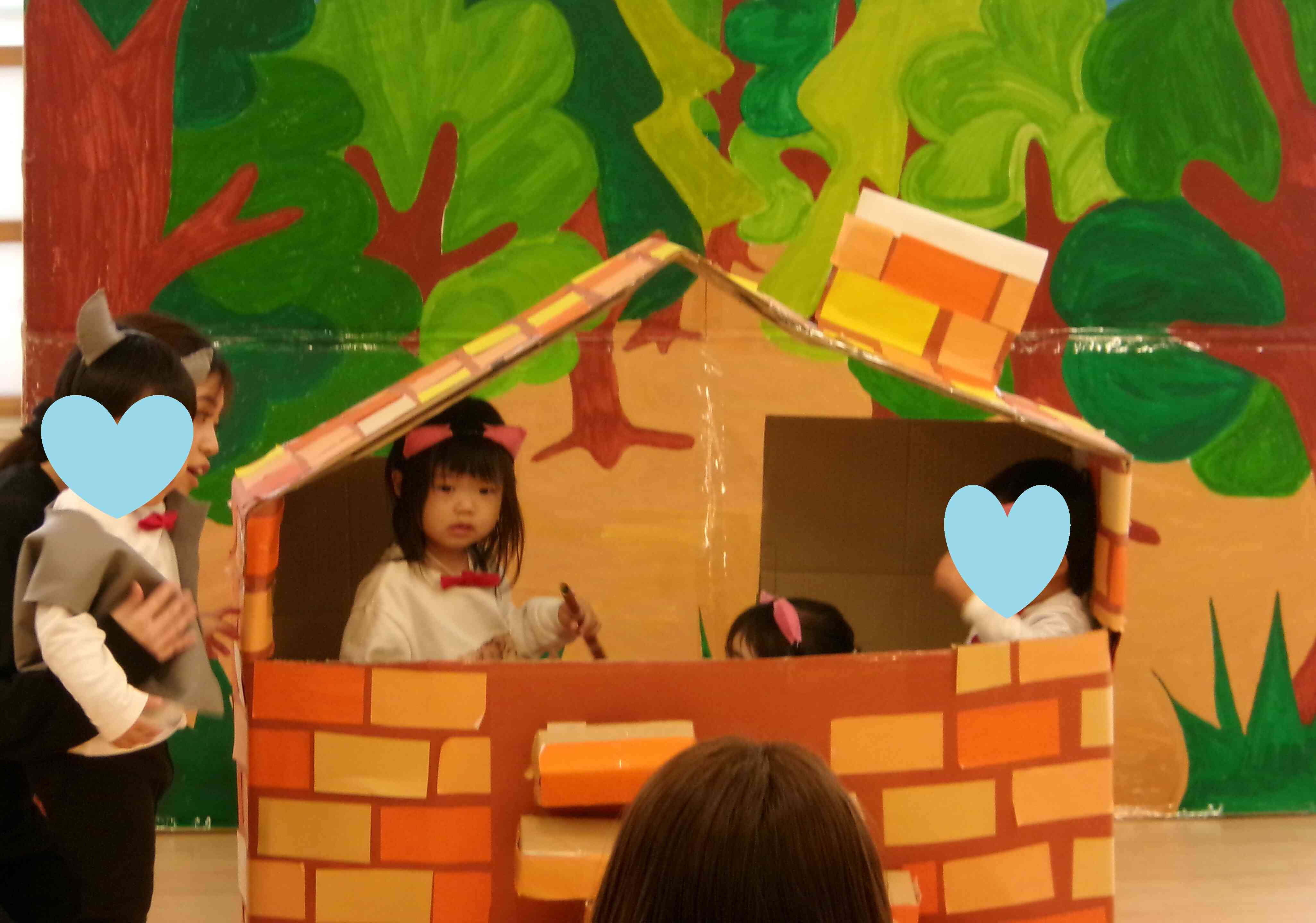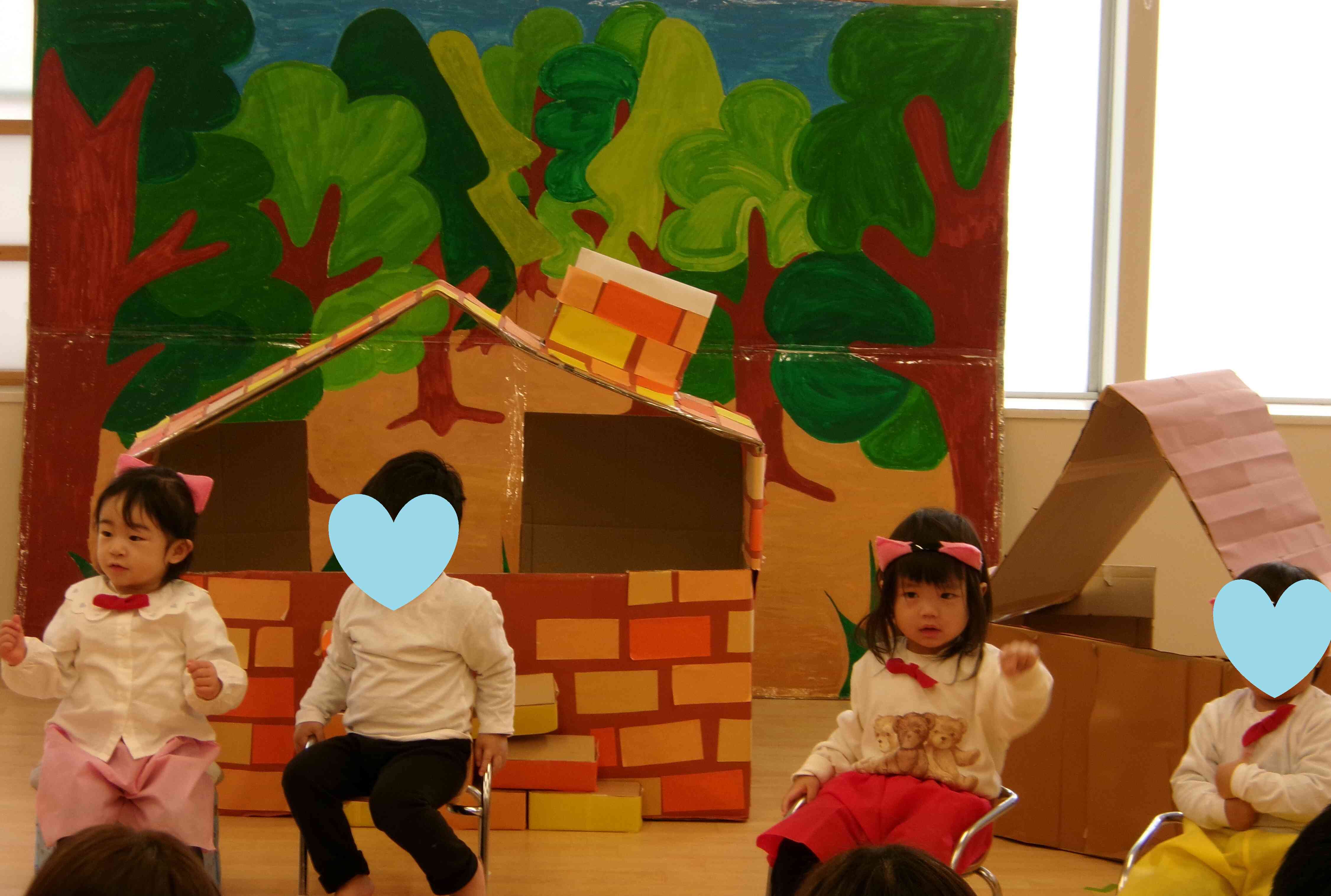 あひる組(1歳児)は3びきのこぶたをやりました。