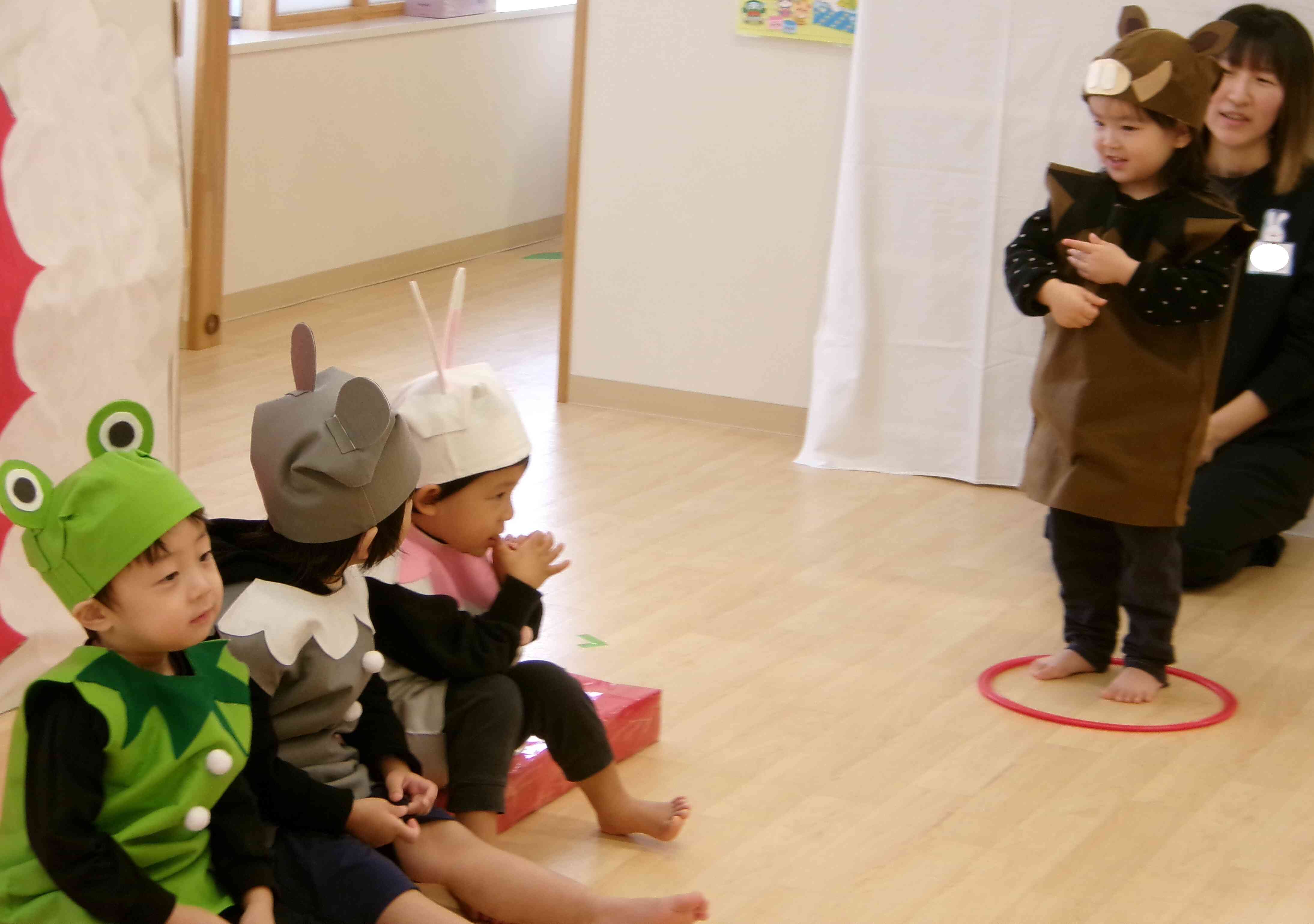 うさぎ組(2歳児)は「てぶくろ」をやりました。