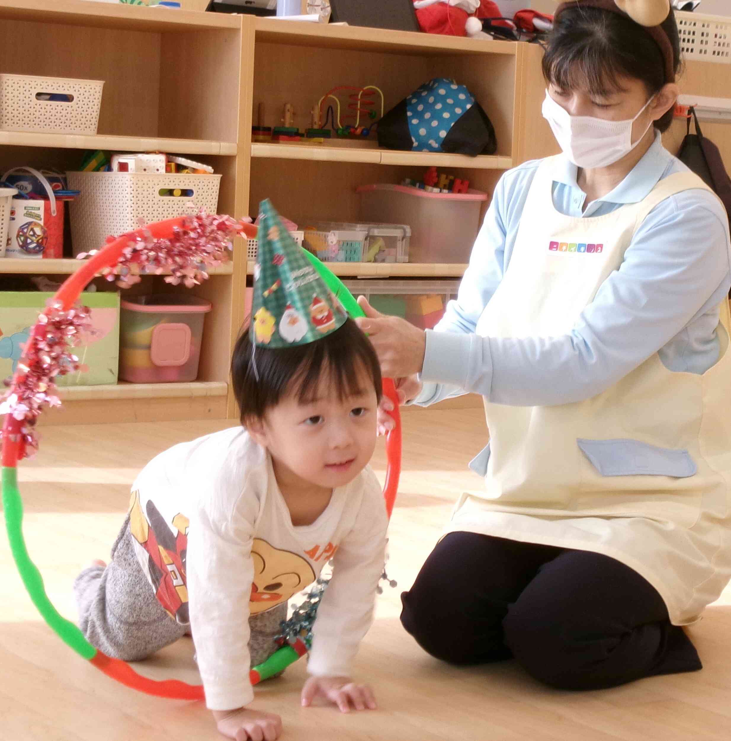 クリスマスの飾りの下をくぐったりと全身で楽しんでいたお友だち。