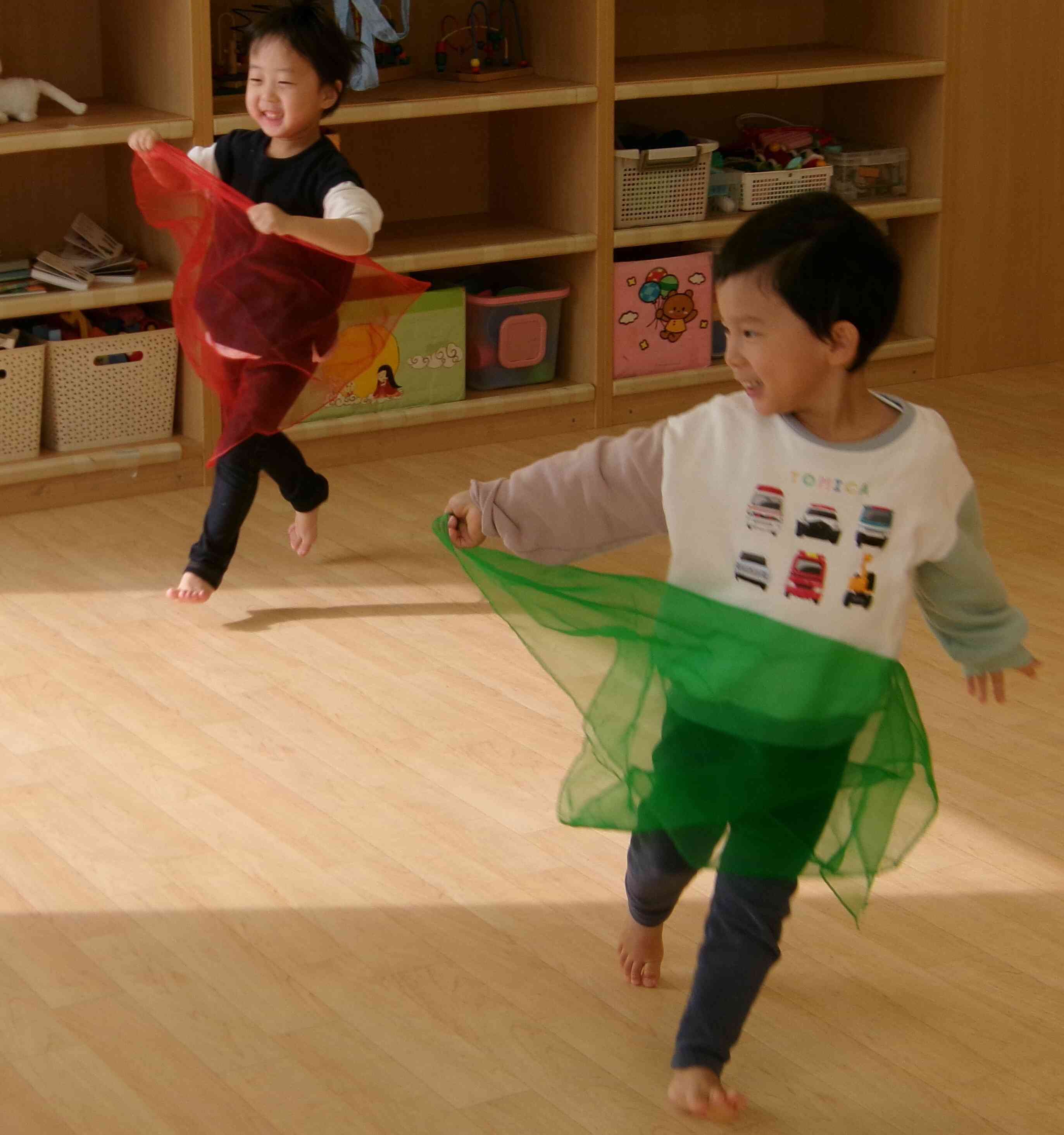 豆まきの後は全身を使ってこまになり、クルクル回りました!