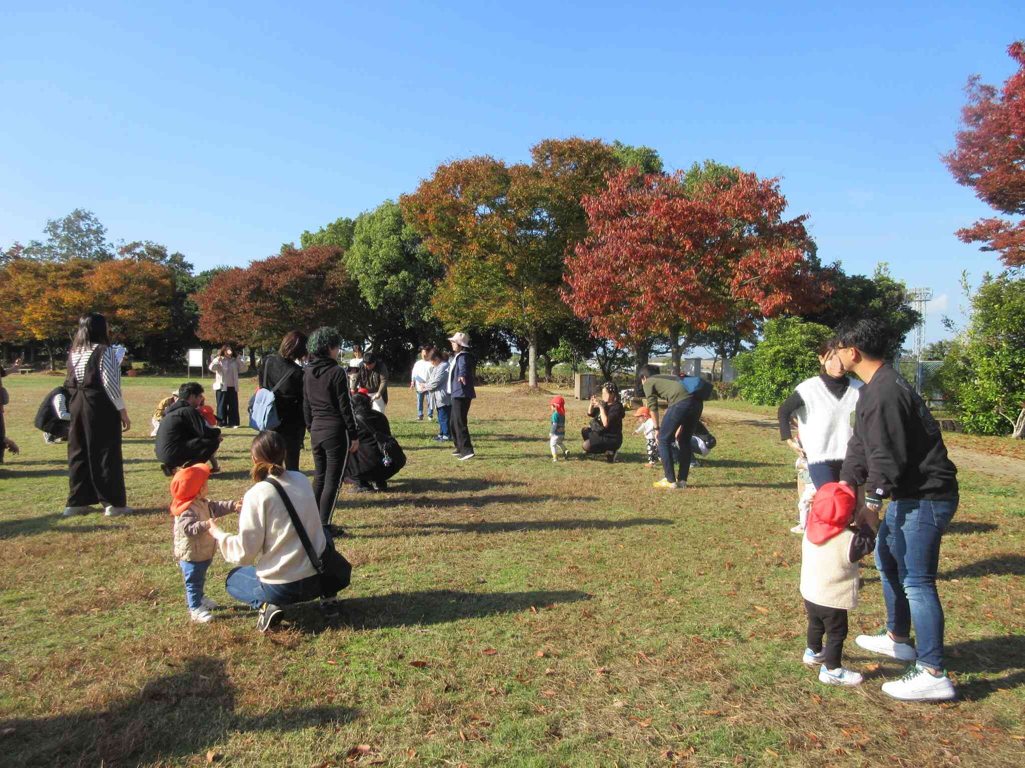 この日は、0・1・2歳児クラスの親子遠足を文化の森公園にて開催しました。