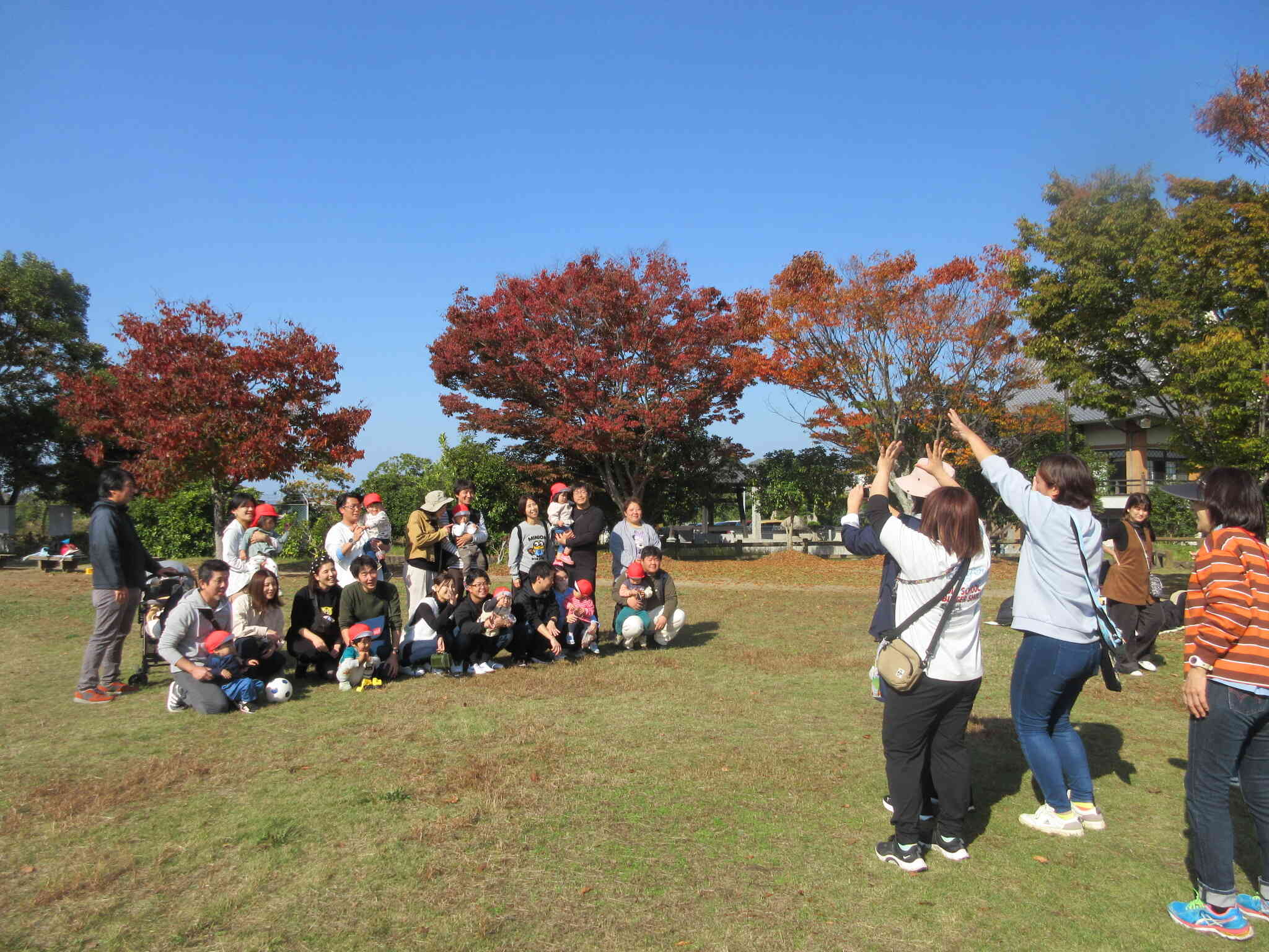 芝生の広場で親子で「ロケットペンギン」を踊ります。