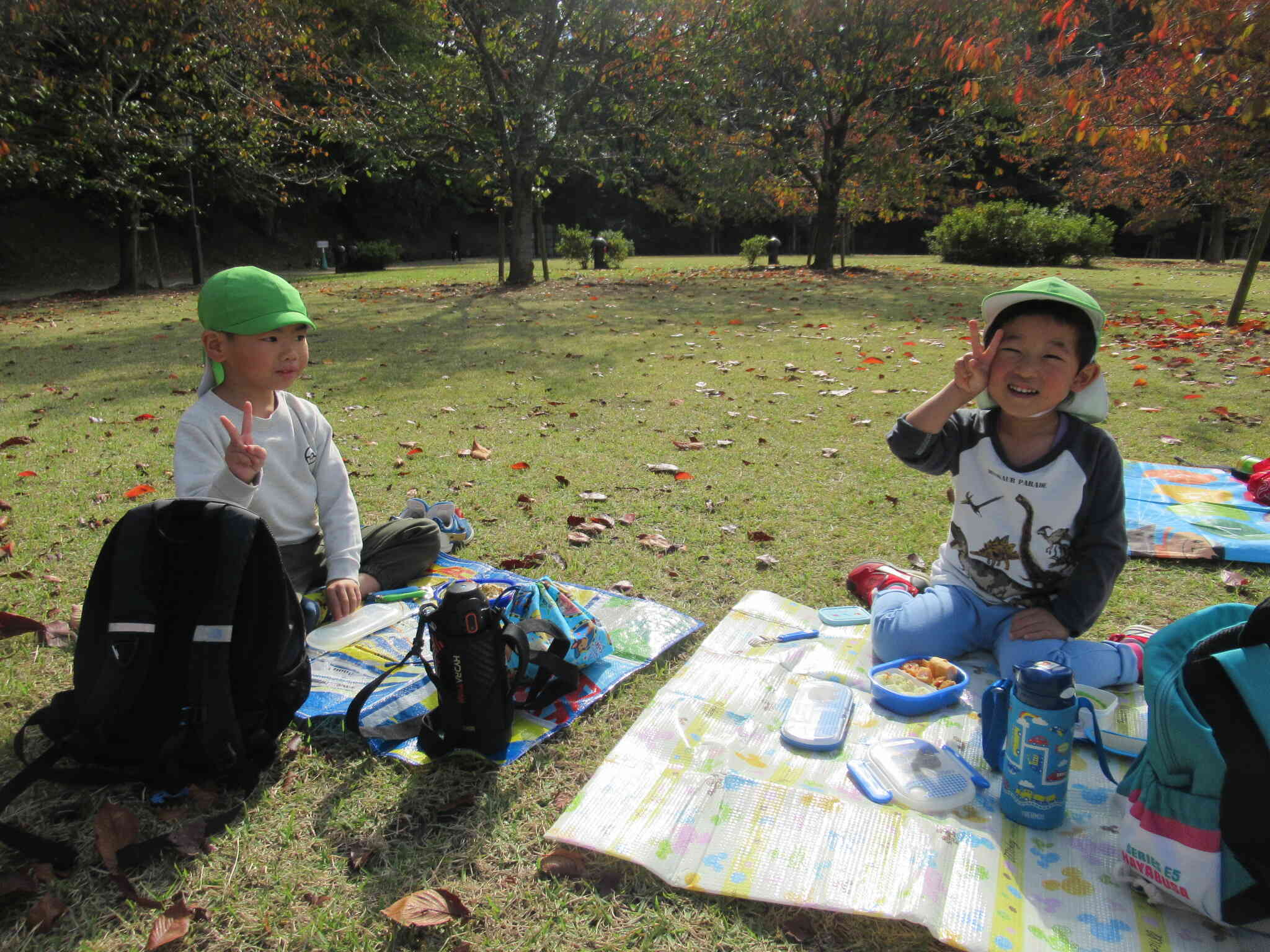 お弁当が終わると、広い芝生の公園をおもいっきり走り回って遊びました。