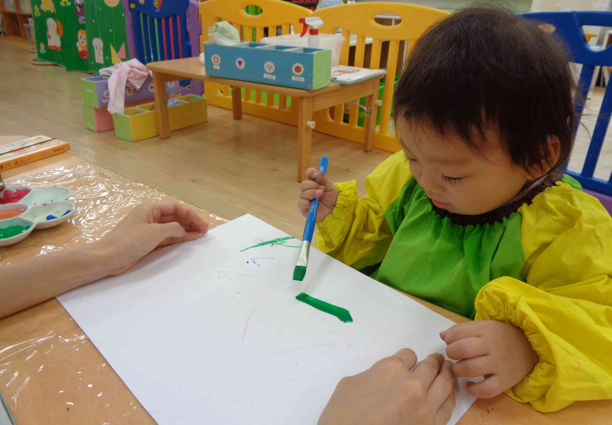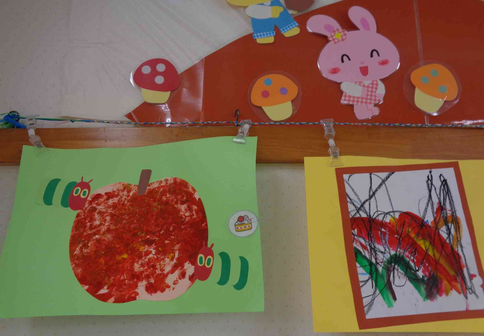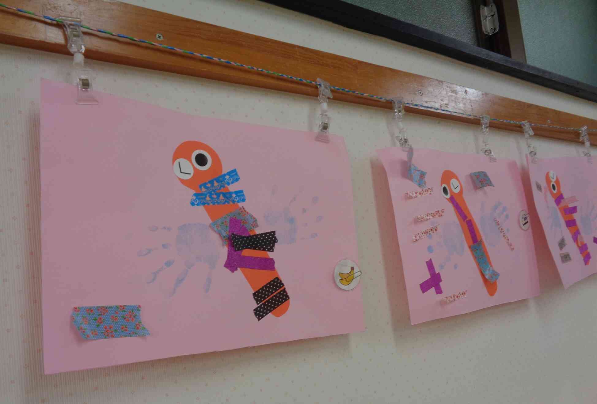 手形をしたりはじき絵、シールを貼ったりし年齢に合わせた製作をしました。