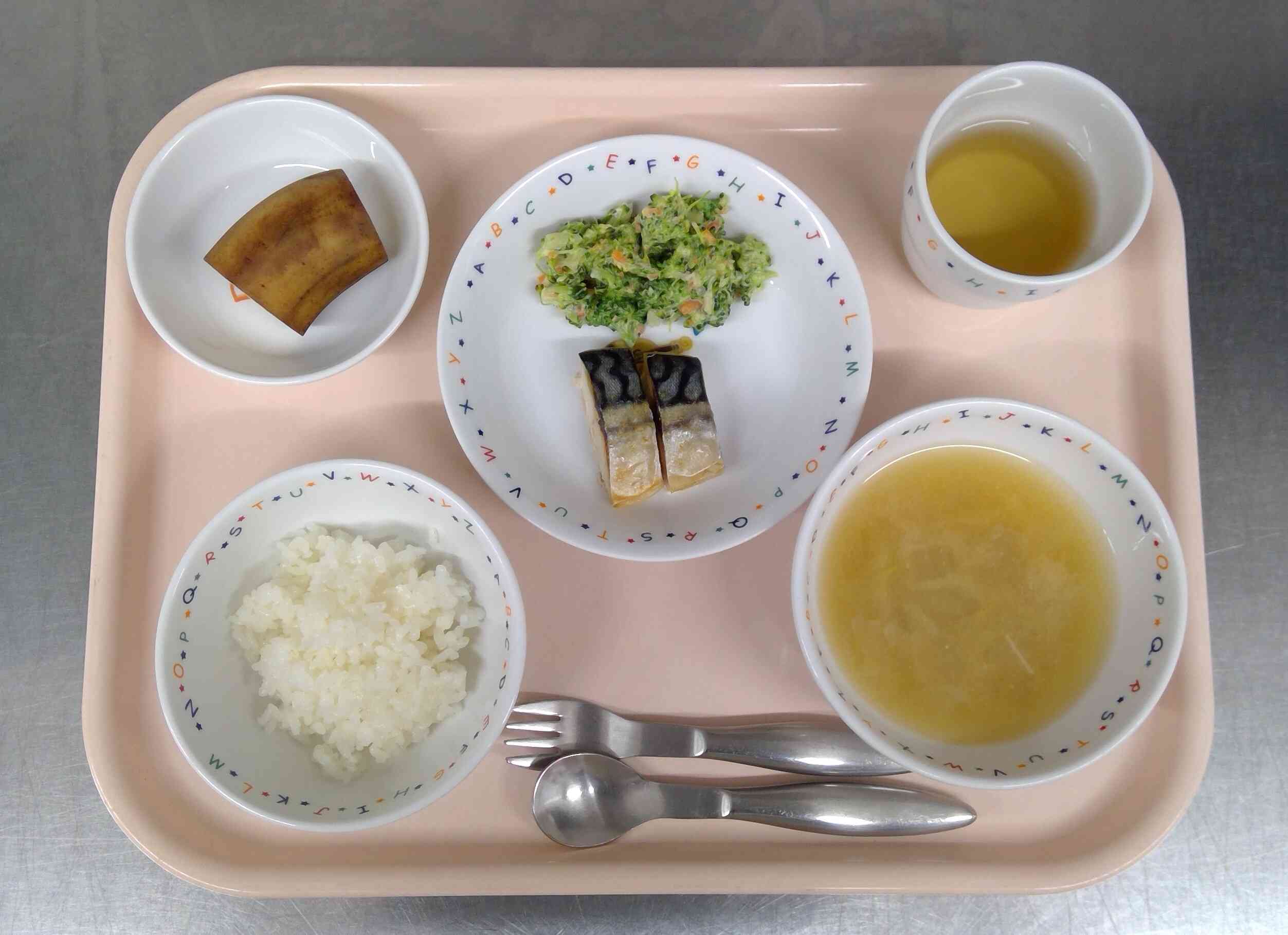 ご飯 キャベツのおみそ汁 ミートローフ しゃきしゃき炒め グレープフルーツ