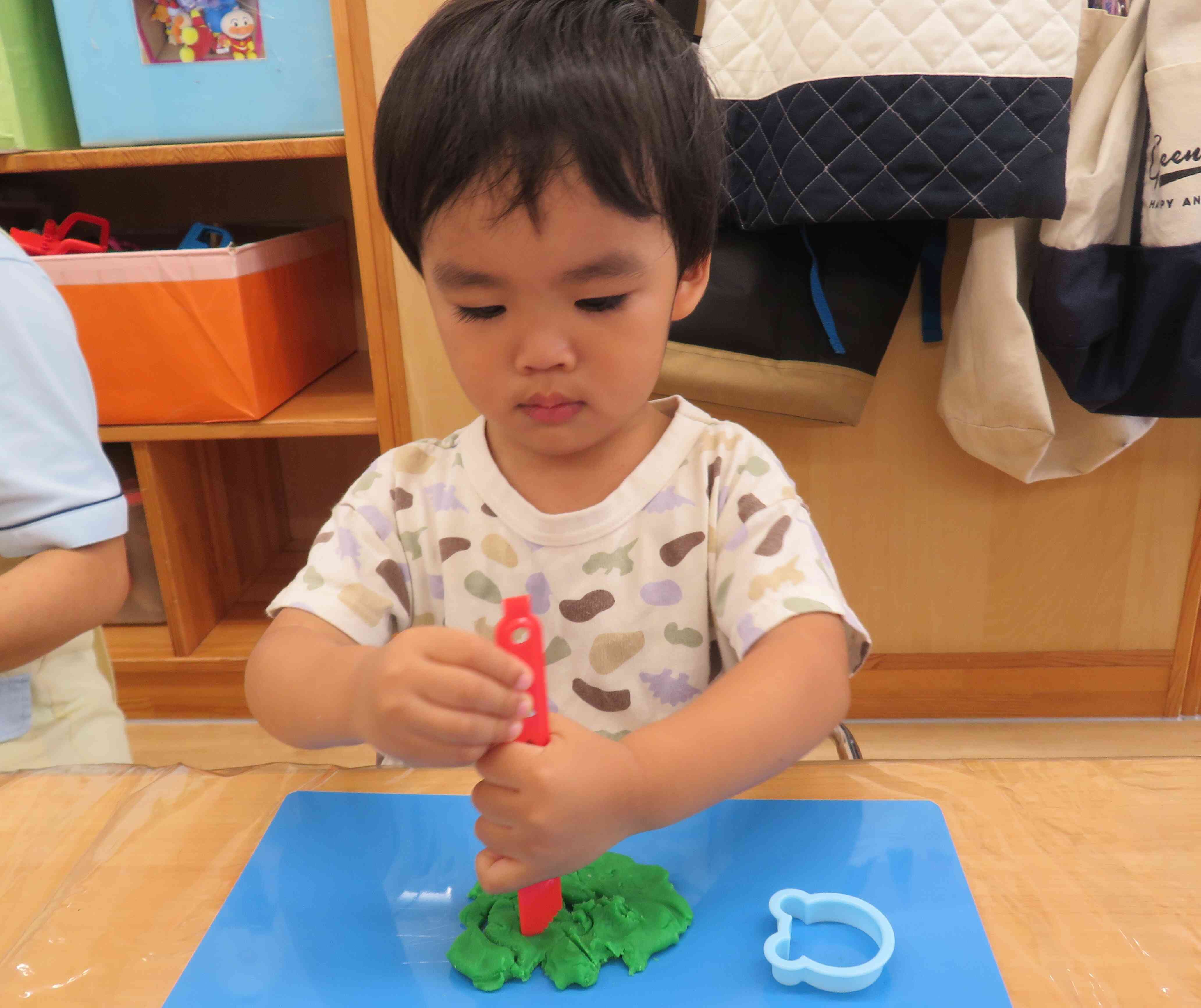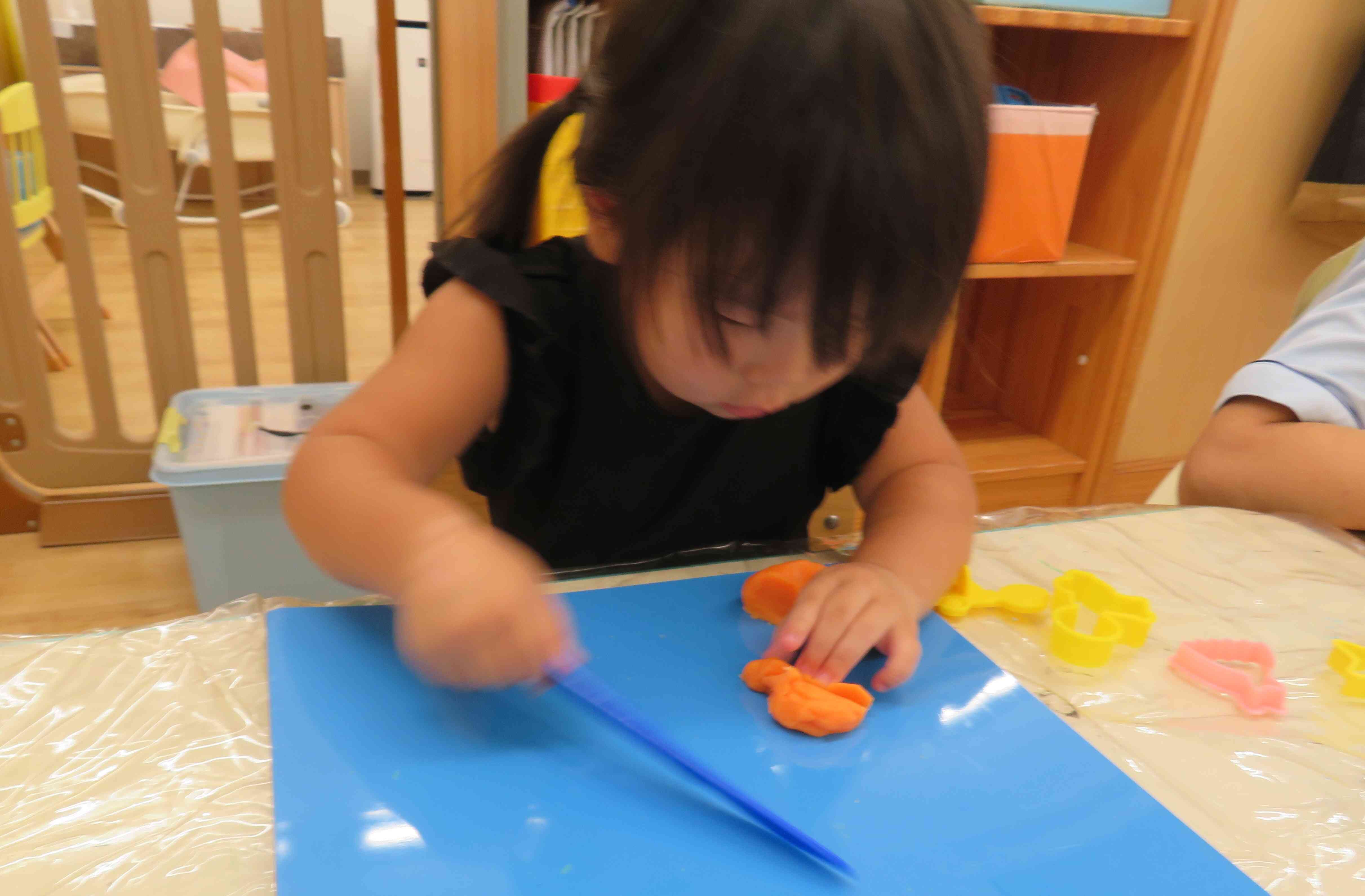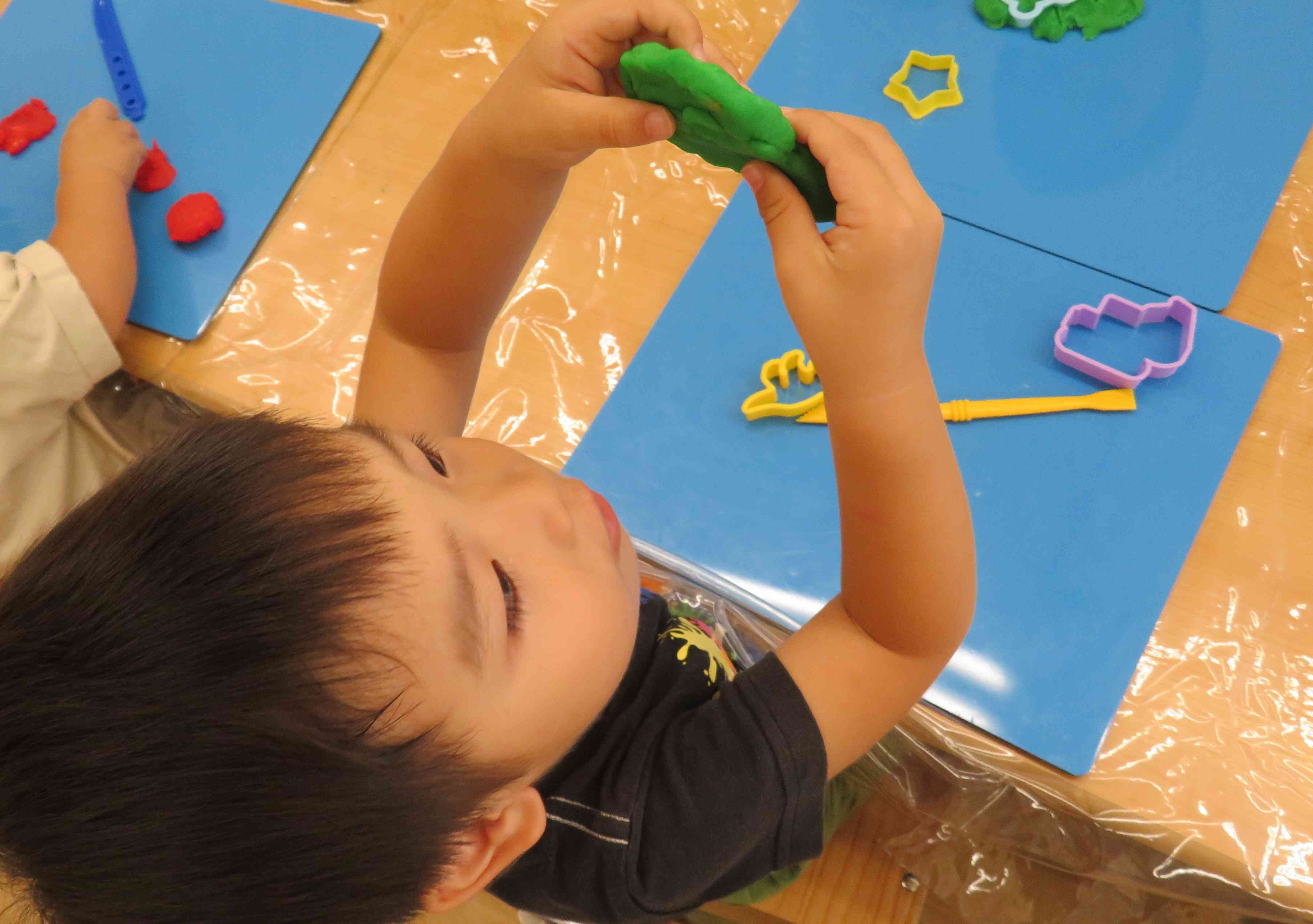 「おいしそう!」と笑いながら食べ物の形を作る子もいました。