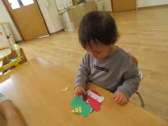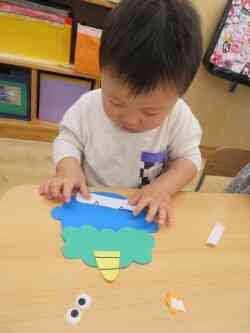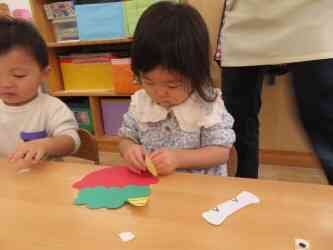 「目はここかな?」「お口はどこにしよう?」と、目、鼻、口の